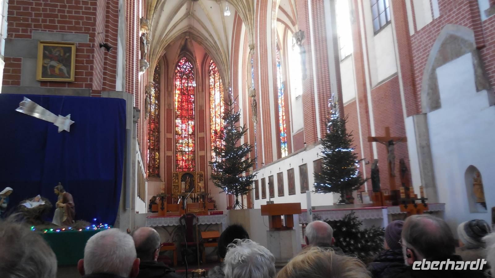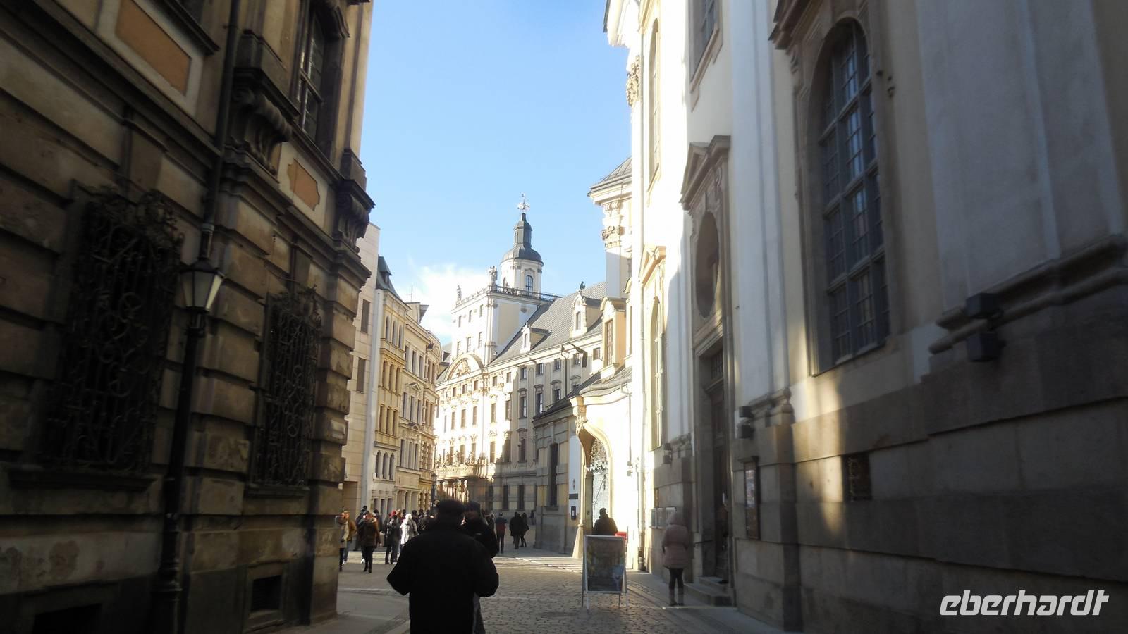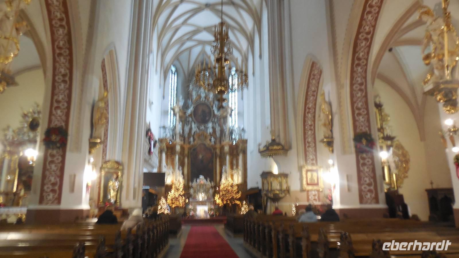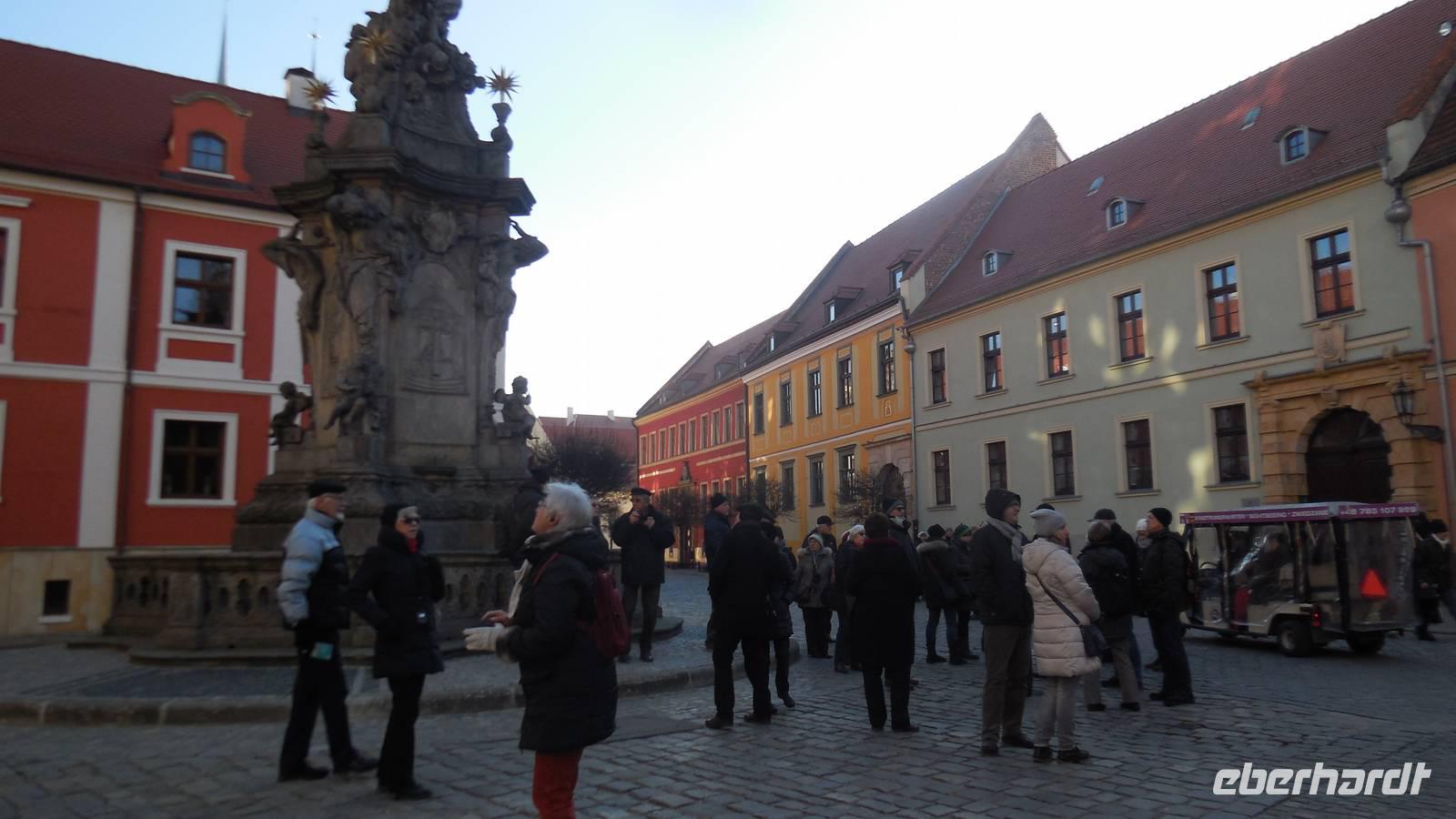 Auf der Dominsel steigen wir aus und es geht zu Fuß weiter zum Platz mit der Nepomuksäule. Wir statten dem beeindruckenden Dom, der dem heiligen Johannes dem Täufer geweiht ist, einen Besuch ab. Aber es wartet ja noch eine kleine Überraschung auf uns. Krystians Bekannte hat zum Konzert in die Kirche Maria zu den Sanden geladen. Wir lauschen bei unserem ganz persönlichen Orgelkonzert und stimmen uns auf die Silvesternacht ein.