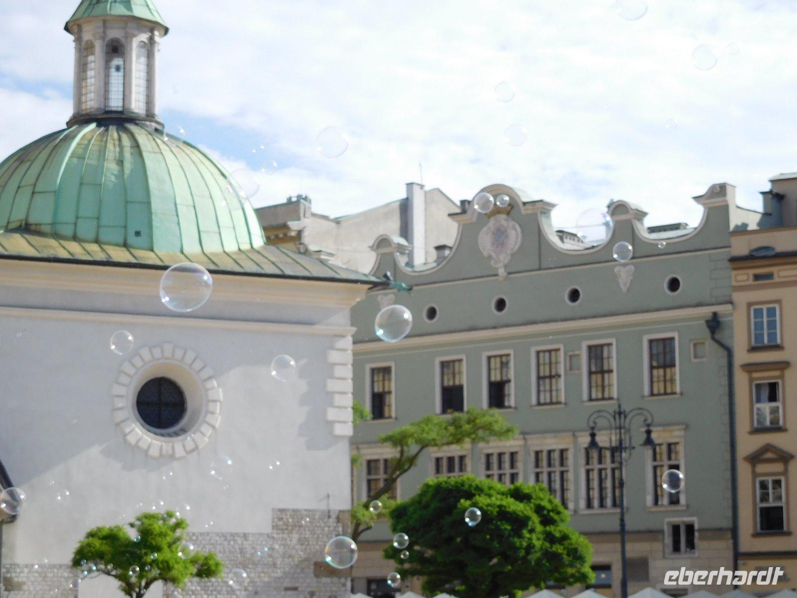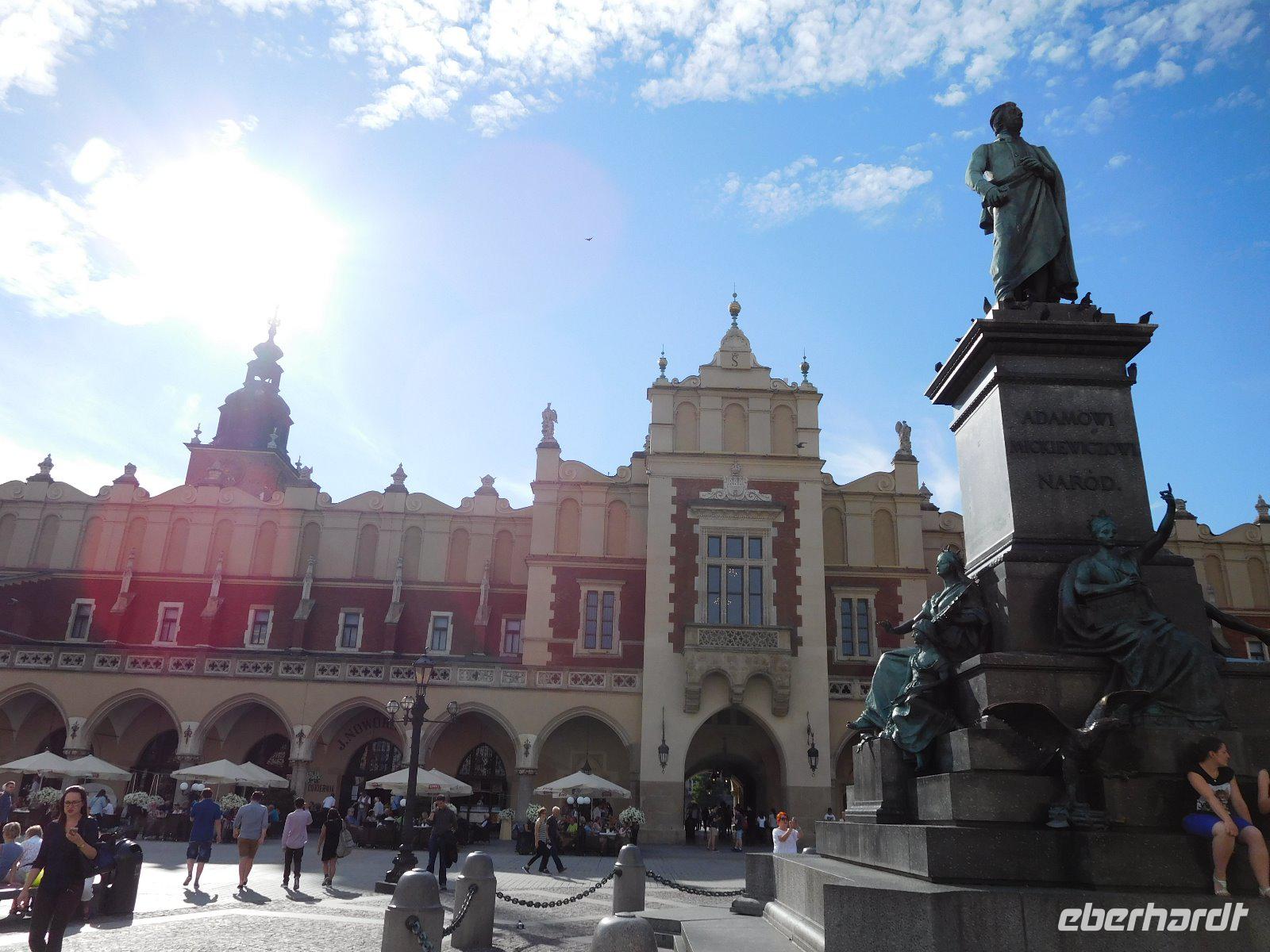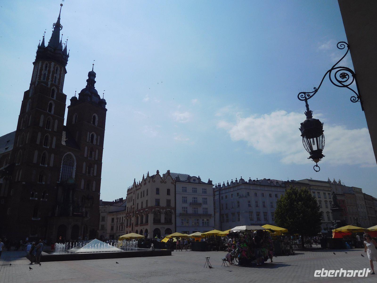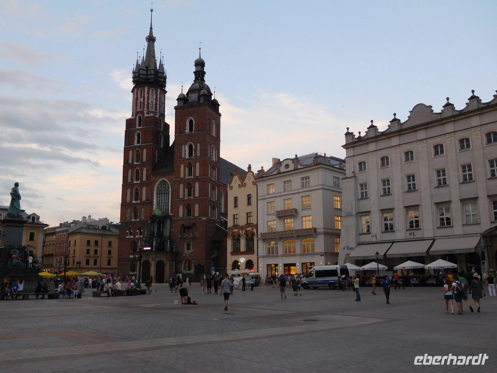 Wer wollte, der konnte noch am Abend einen kleinen Spaziergang zum Rynek, dem Krakauer Marktplatz, unternehmen. Dort gab es bei herrlich warmen Temperaturen schon viel zu sehen: Vielerlei Gaukler und Kutschen standen bereit, um der schönen Kulisse des Marktplatzes mehr Leben zu verleihen. Die Cafés und Restaurants luden ein für einen Umtrunk oder man konnte einfach nur durch die Gassen schlendern und die schon fast südländische Betriebsamkeit des Abends genießen. Auch in den Straßen konnte man viele glückliche Fußball-Fans sehen, denn immerhin hatte sich auch Polen an diesem Abend für das Achtelfinale qualifiziert.