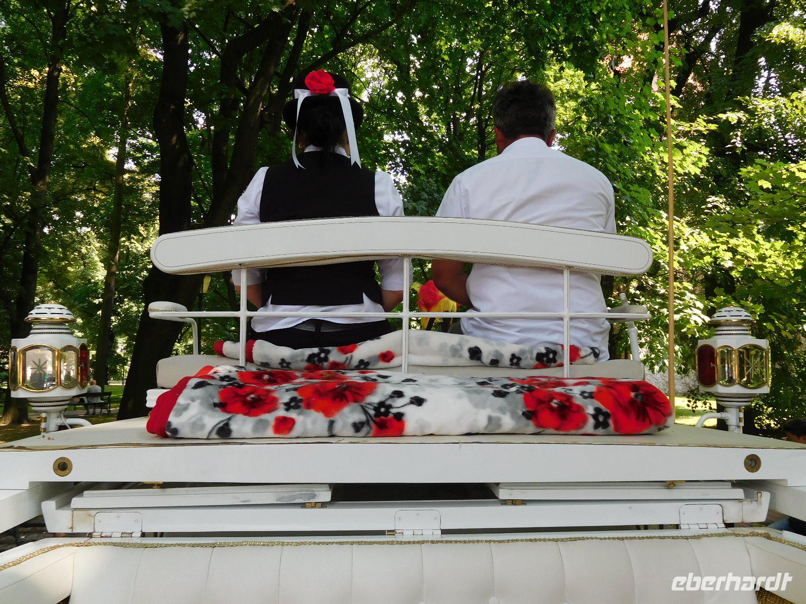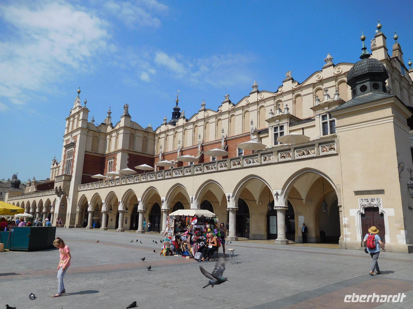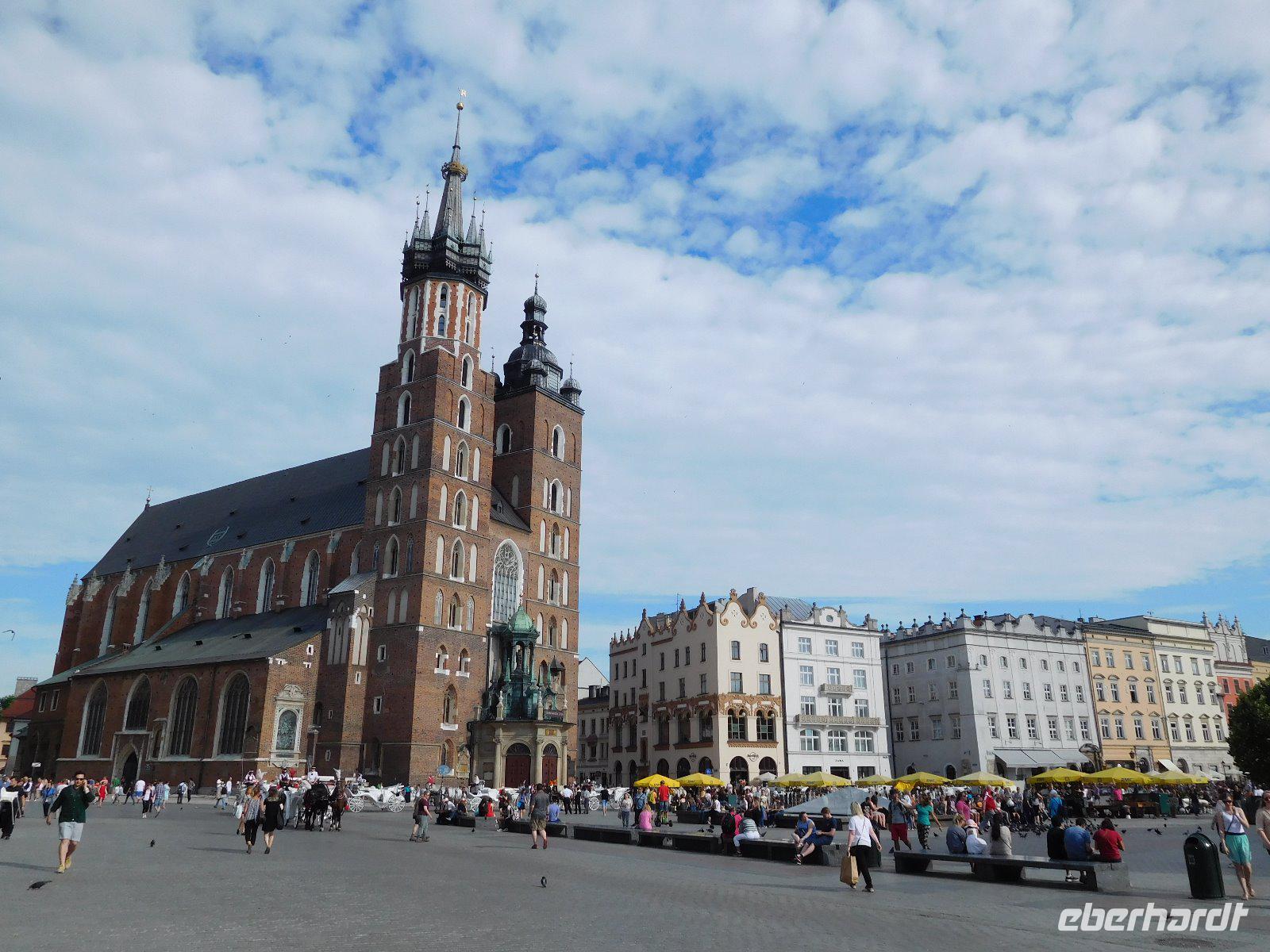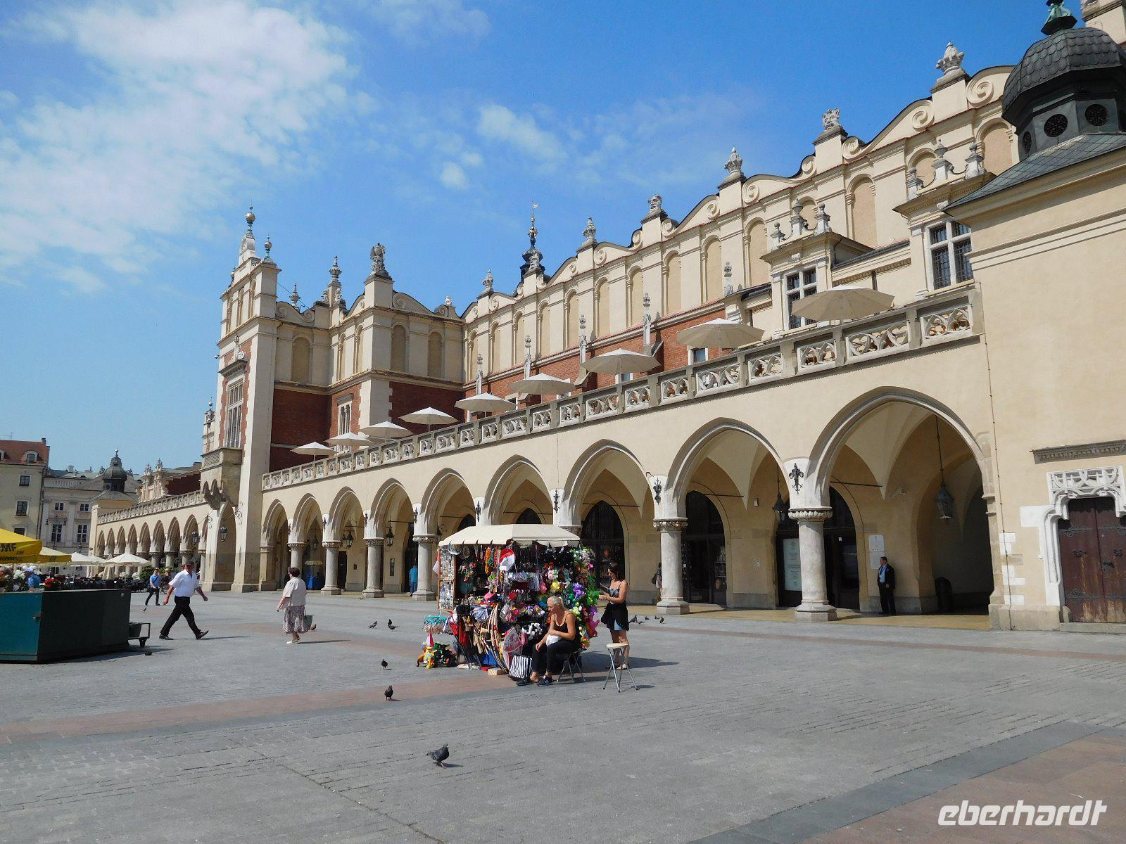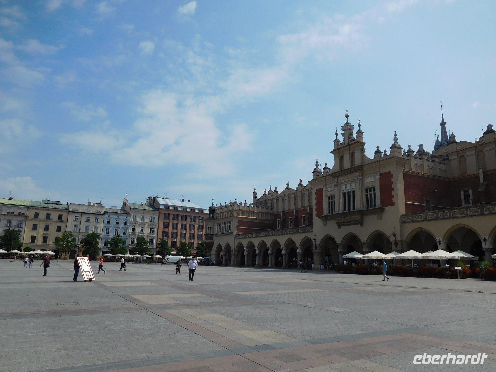 Wer wollte, der konnte noch am Abend einen kleinen Spaziergang zum Rynek, dem Krakauer Marktplatz, unternehmen. Dort gab es bei herrlich warmen Temperaturen schon viel zu sehen: Vielerlei Gaukler und Kutschen standen bereit, um der schönen Kulisse des Marktplatzes mehr Leben zu verleihen. Die Cafés und Restaurants luden ein für einen Umtrunk oder man konnte einfach nur durch die Gassen schlendern und die schon fast südländische Betriebsamkeit des Abends genießen. Auch in den Straßen konnte man viele glückliche Fußball-Fans sehen, denn immerhin hatte sich auch Polen an diesem Abend für das Achtelfinale qualifiziert.