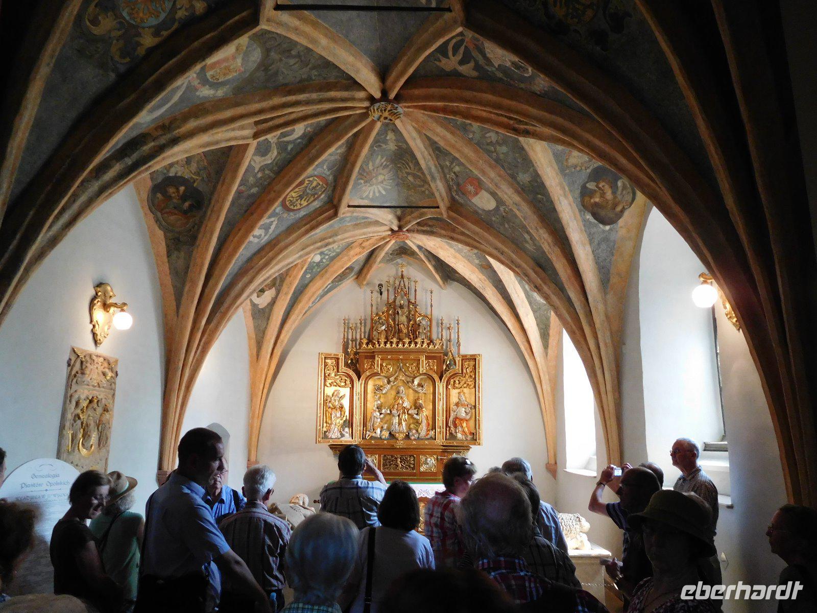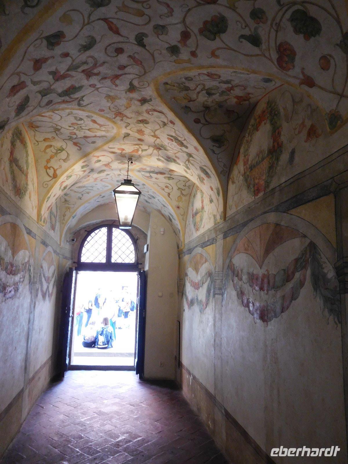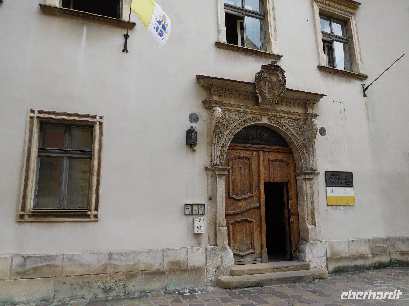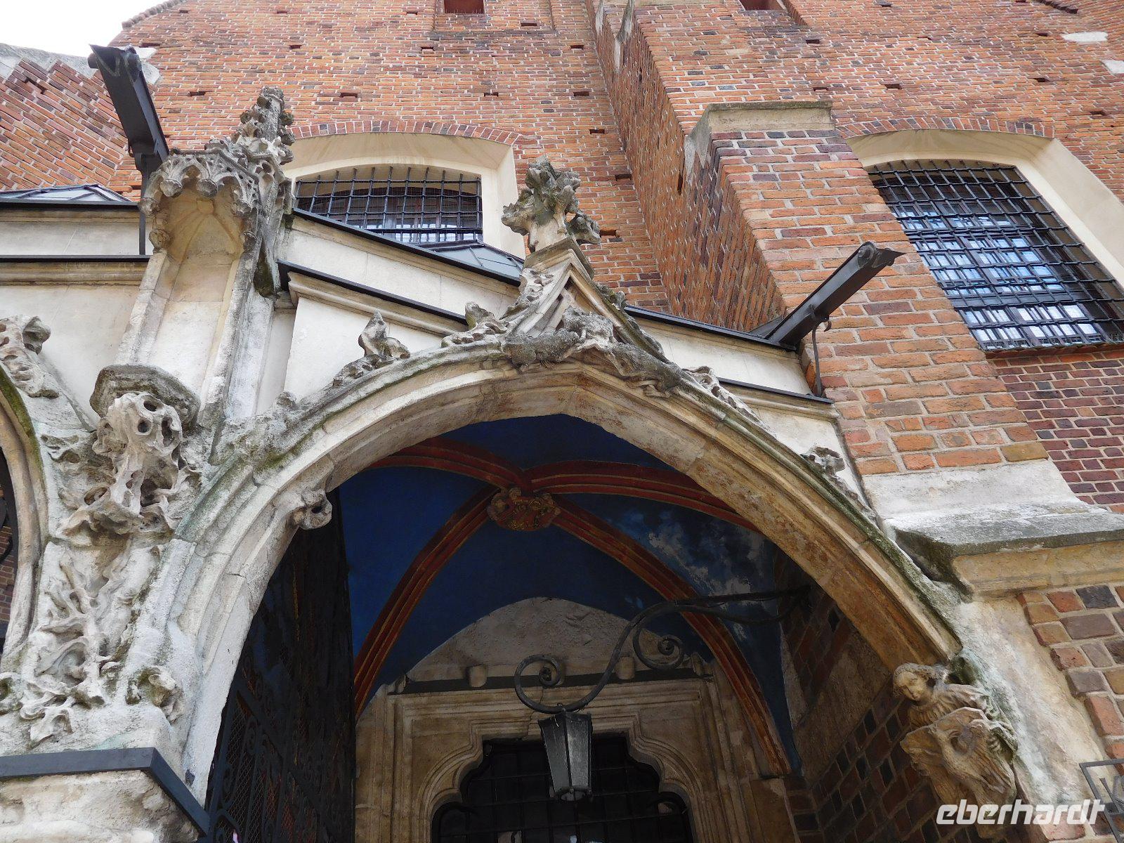 Nun spazierten wir weiter zur Universität zu Krakau, genauer dem Collegium Maius, wo wir das Spiel des Uhrwerkes mit beweglichen Figuren beobachten konnten. Der Weg führte uns weiter zum Papstfenster und Franziskanerkloster zurück bis zur Marienkirche, wo wir der Öffnung des kostbaren Veit Stoß Altares beiwohnten.