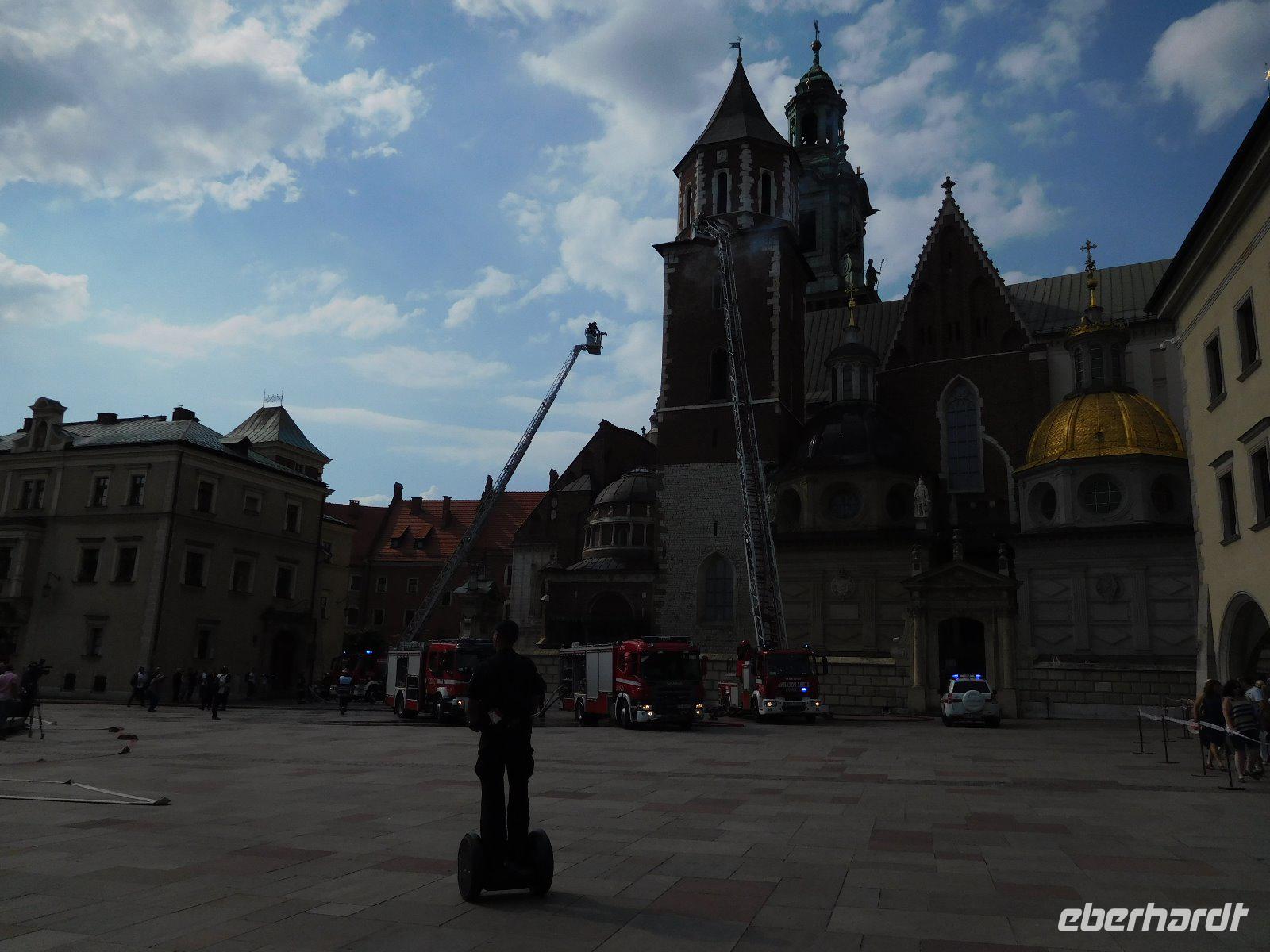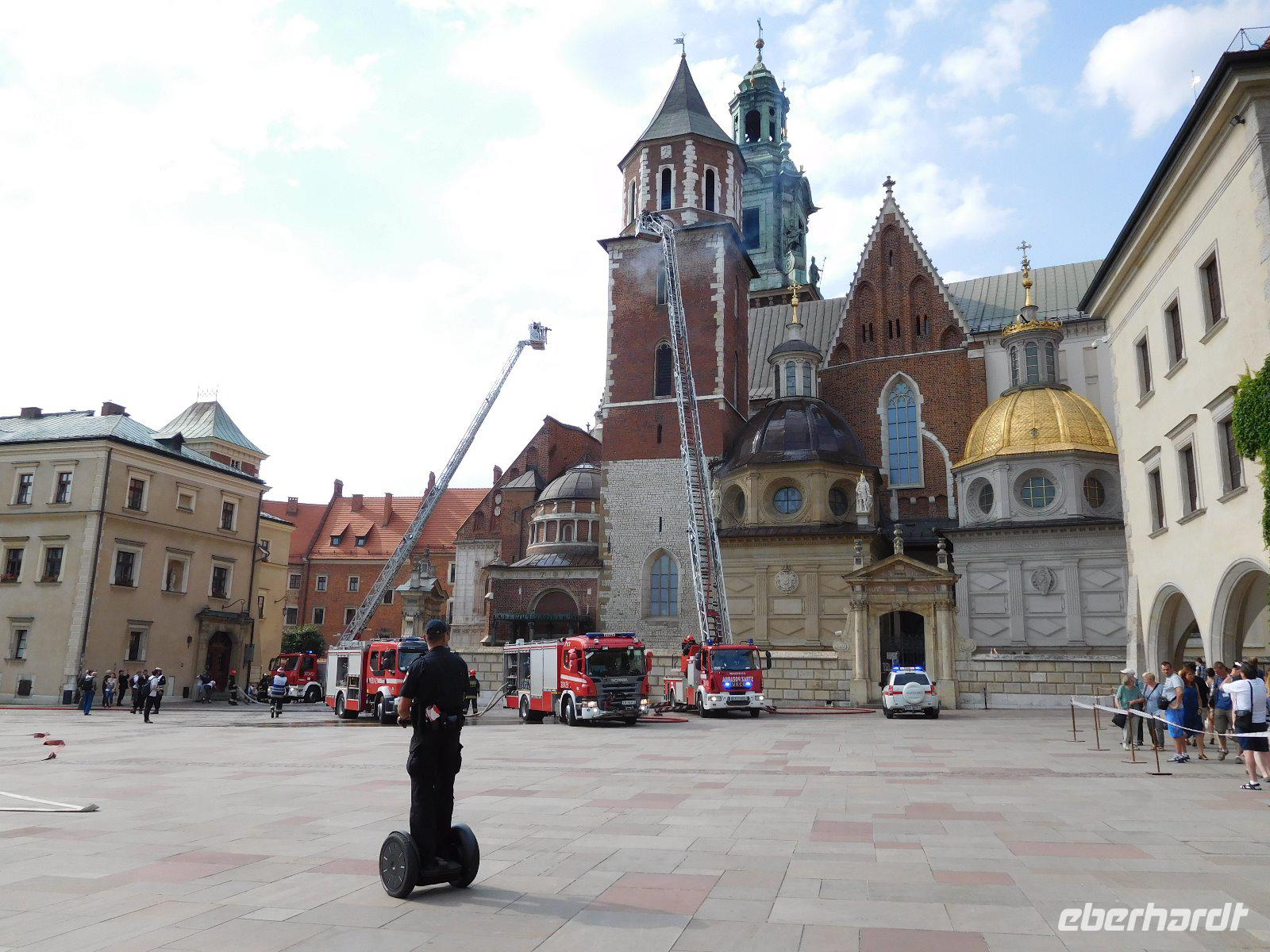 Der Nachmittag führte uns zum Wawel und in die dortige Kirche sowie das Schloss, in dem vor allem die Wandteppiche faszinierten. Ein einmaliges Schauspiel bot sich aber auch am Nachmittag, als die Krakauer Feuerwehr auf dem Wawelgelände für den Ernstfall probte. Den weiteren Abend konnte jeder individuell gestalten, am besten aber mit typisch polnischer Küche und einem kühlen Bier.