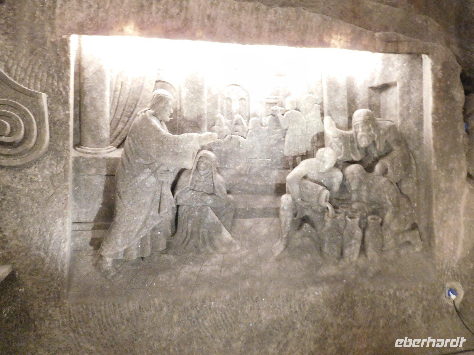 Früh am Morgen starteten wir gemeinsam mit Ela in Richtung Wielicza, einer Salzmine - oder vielmehr eine unterirdische Stadt mit mehr als 300 Kilometern Stollen-Länge und vielerlei Sehenswürdigkeiten unter Tage. Die kühle Salzluft tat bei den hohen Außentemperaturen mehr als gut, außerdem staunten wir nicht schlecht über die Pracht der unterirdischen Skulpturen und die gut ausgebauten Wege, die wir nach über 300 Treppenstufen herab erreichten.