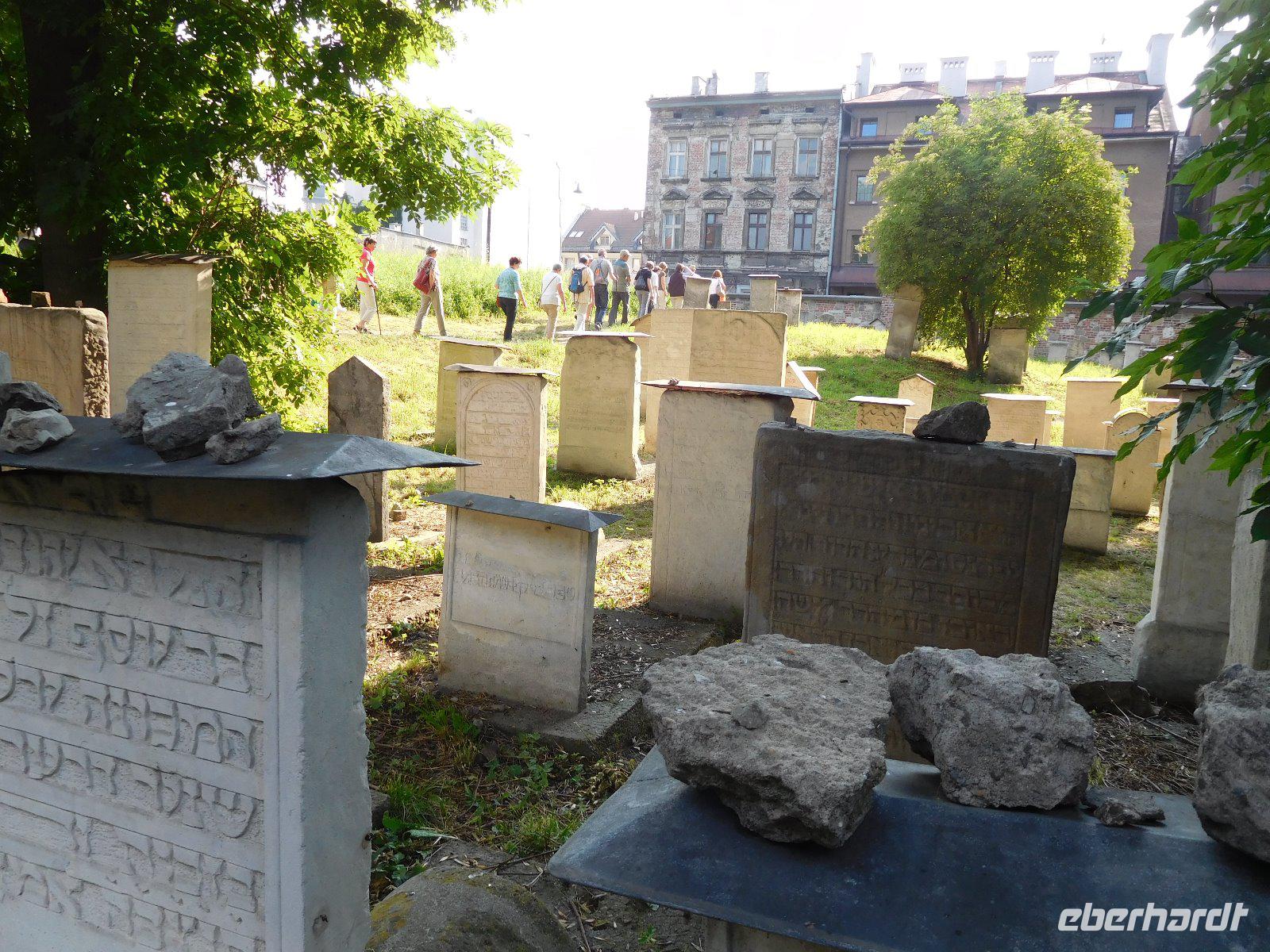 Am Nachmittag begaben wir uns auf die Spuren der Jüdischen Kultur in Krakau, mit Drehorten für den Film "Schindlers Liste" im Viertel Kazimierz und dem Besuch der Remuh-Synagoge. Ein wahrer Gänsehaut-Moment war der Besuch auf dem Jüdischen Friedhof, als wir auf zwei orthodoxe Juden im lauten Gebet vertieft erleben durften. In Kazimierz gibt es mehr Details, als das Auge fassen kann, von filigranen Fassaden über weitere Synagogen, Innenhöfe, Marktplätze... staunend liefen wir so umher, bis es Zeit war für ein leckeres Abendessen, das von den intensiven Gefühlen der Klezmer-Musik begleitet wurde. Ein stimmiger Abschied der facettenreichen Stadt Krakau!