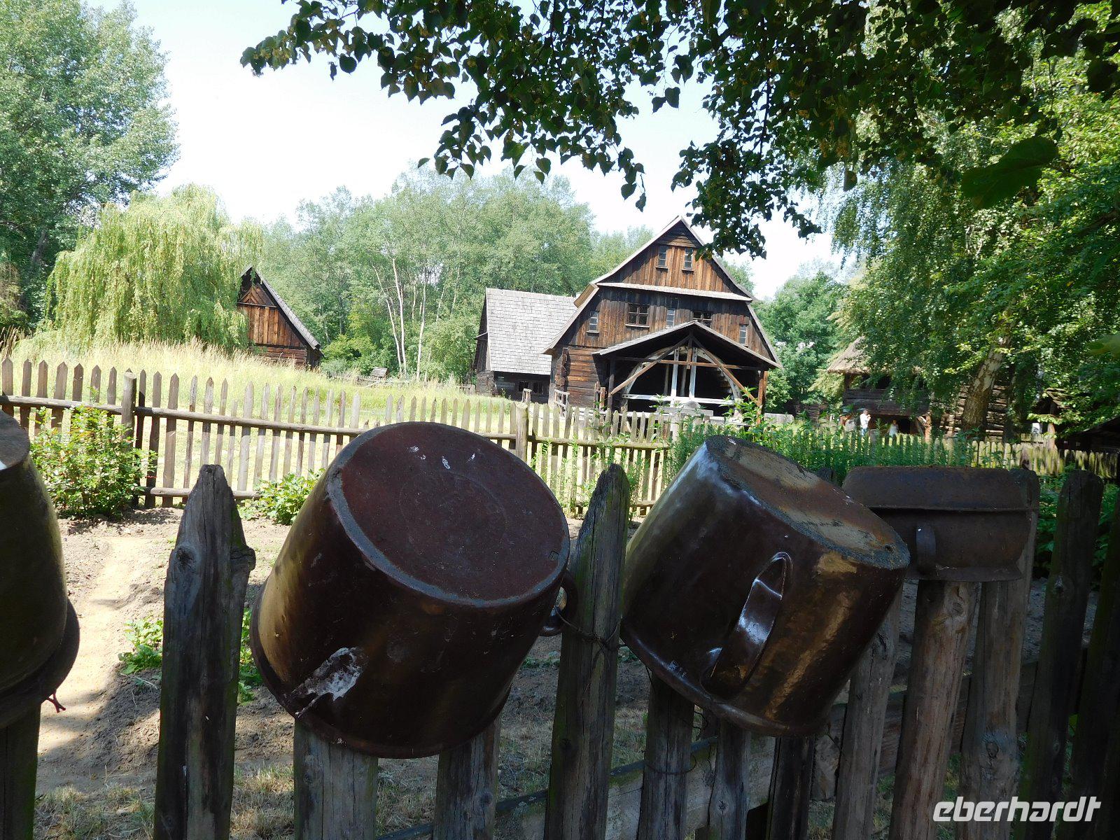 Heute fuhren wir weiter nach Oppeln, wo wir zuerst das Freilichtmuseum mit Bauernhäusern, Mühlen und einer Kirche besuchten. Auf sattgrünen Wiesen standen Zeugnisse aus so mancher Kindheit, von der Kücheneinrichtung über das vollständig eingerichtete Schulhaus mit nobler Lehrerswohnung, einer Schmiede und dem Krämer-Laden. Sehr emotional wurde der Besuch, als die vielen Erinnerungen ausgetauscht wurden. Die Hitze, mittlerweile waren es 38°C im Schatten, begleitete uns den ganzen Tag, sodass wir uns vorrangig auf die Suche nach Schatten denn auf Suche des besten Fotomotivs begaben. Eine leckere Verschnaufpause bot uns das Schlesische Mittagessen im Stary Dom. Auch hier waren die Wände mit allerlei Erinnerungsstücken aus der Kindheit verziert.
