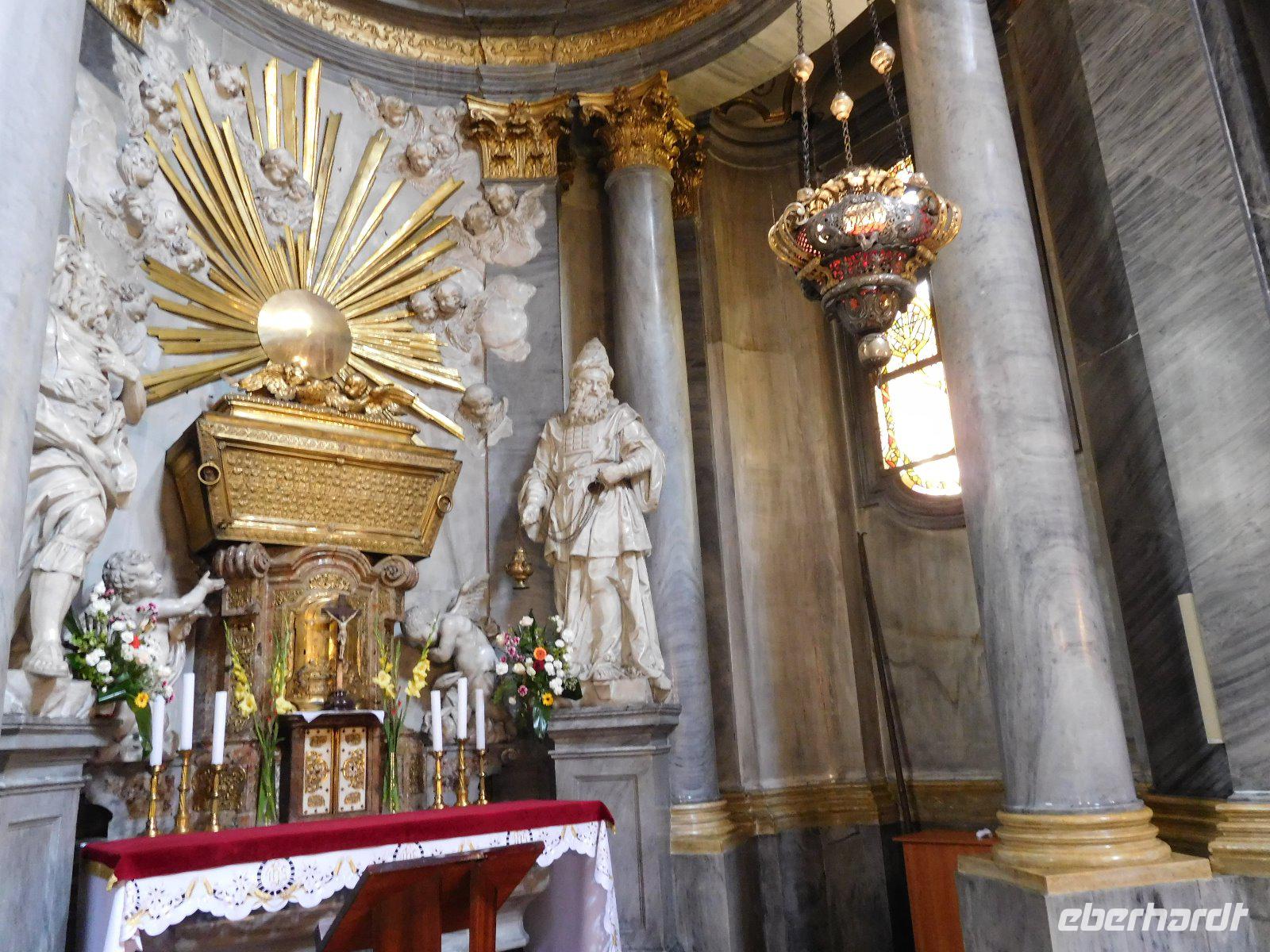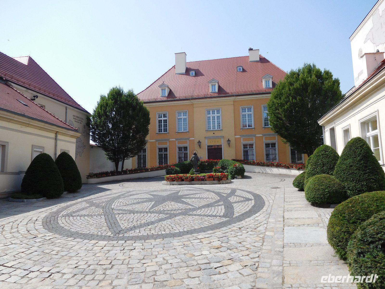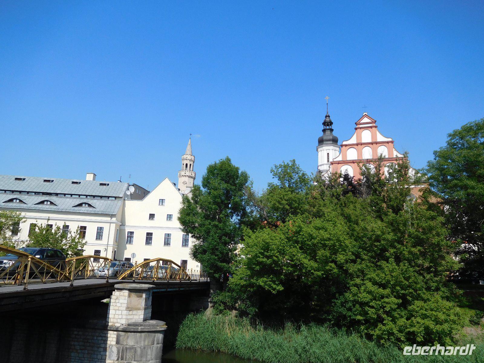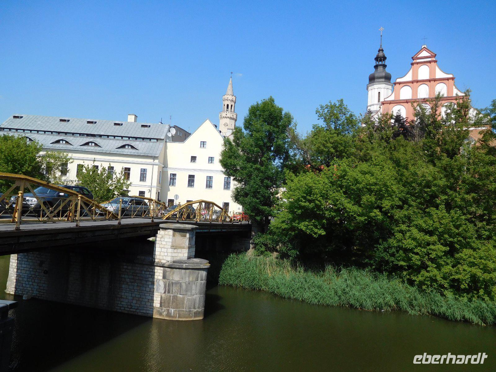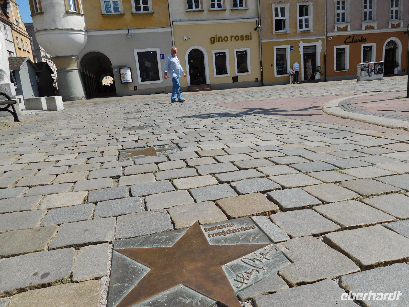 Zur Konzentration beim Stadtspaziergang durch Oppeln gab es erst einmal ein köstliches Vanille-Zitronen-Eis für jeden, damit den Ausführungen von Guide Eryk besser gefolgt werden konnte. Hier sahen wir das mediterran anmutende Rathaus und den Oppelner "Walk auf Fame". Hier werden die jährlichen Sieger des Oppelner Liederwettbewerbs in Sternform auf dem Rynek verewigt. In der Franziskanerkirche konnten wir die sanfte Eleganz der Kirchenverzierungen und die anmutige Kapelle der Heiligen Anna bestaunen, bevor uns der Weg über die blaue Groschenbrücke entlang des Mühlgrabens bis zum Bus führte.