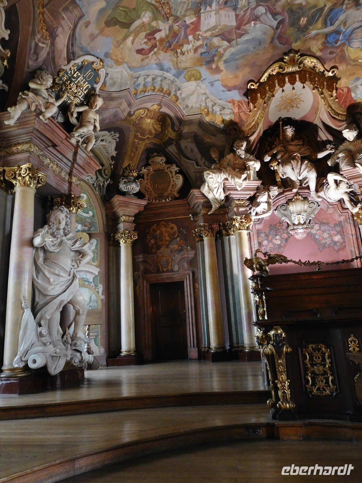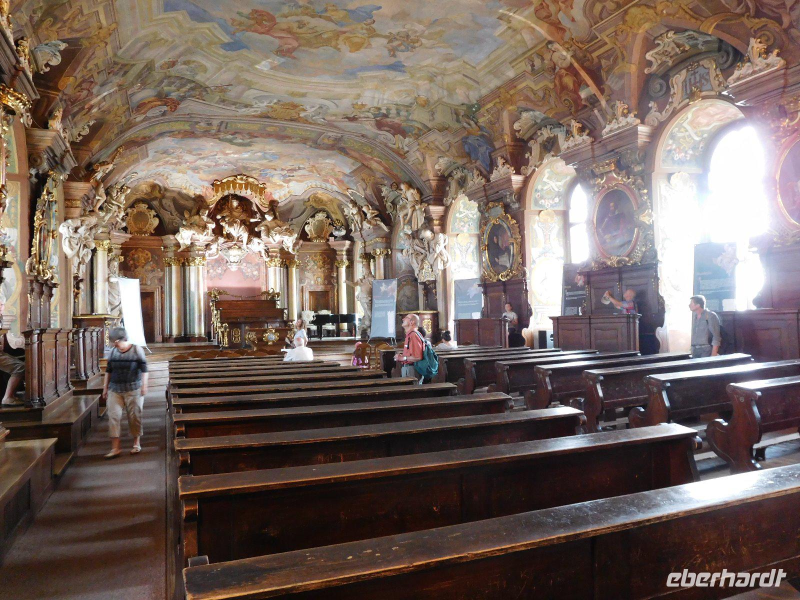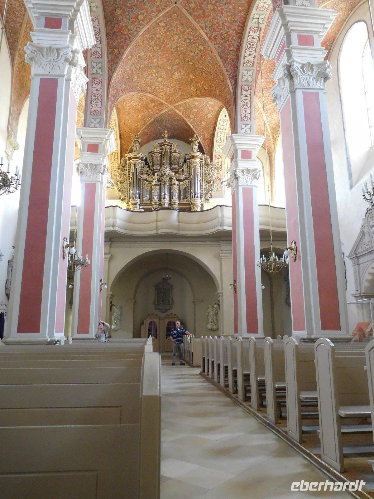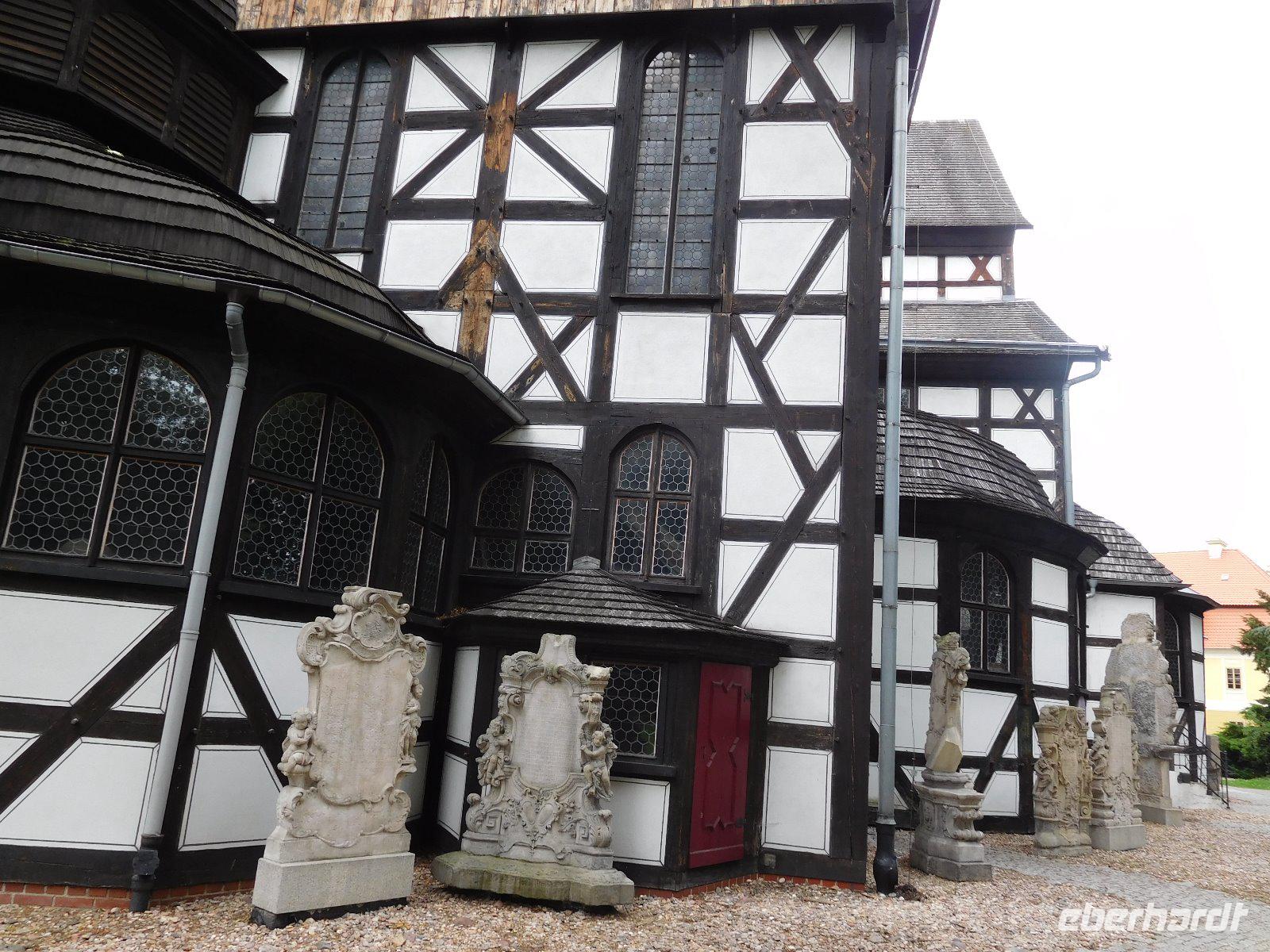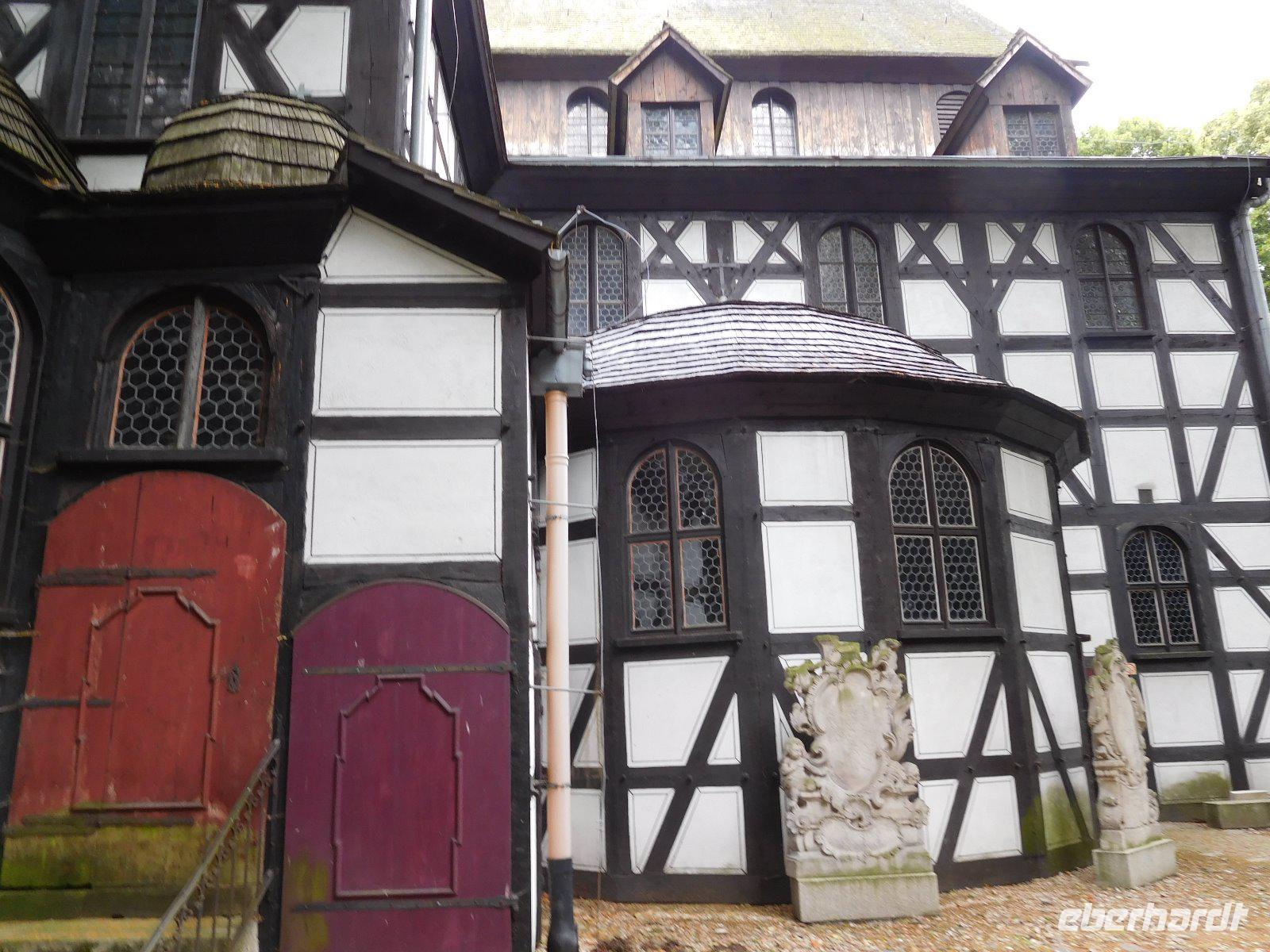 Bevor unsere Reise zu Ende ging, besuchten wir die imposante Friedenskirche von Schweidnitz und erlebten endlich Regen in Hirschberg. Die Kirche in Schweidnitz durfte nach dem Dreißigjährigen Krieg erbaut, in einer Zeit, als die Gegenreformation sehr stark die protestantischen Kirchen zurückzudrängen versuchten. Nur hier und zwei anderen Orten in Schlesien durften diese Kirchen unter strengsten Bauauflagen gebaut werden - kein Stein durfte verbaut werden. Also wurde eine opulente Fachwerkkirche erbaut mit einem barocken Altar und einer Orgel, die in ihren Details das Auge der Besucher für Stunden einfangen konnte.