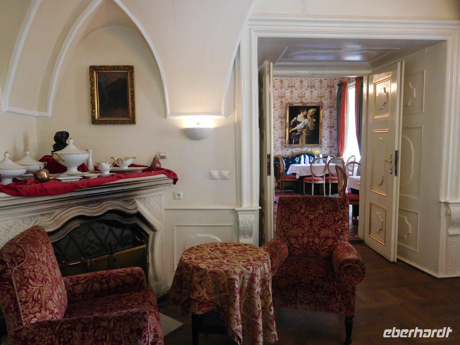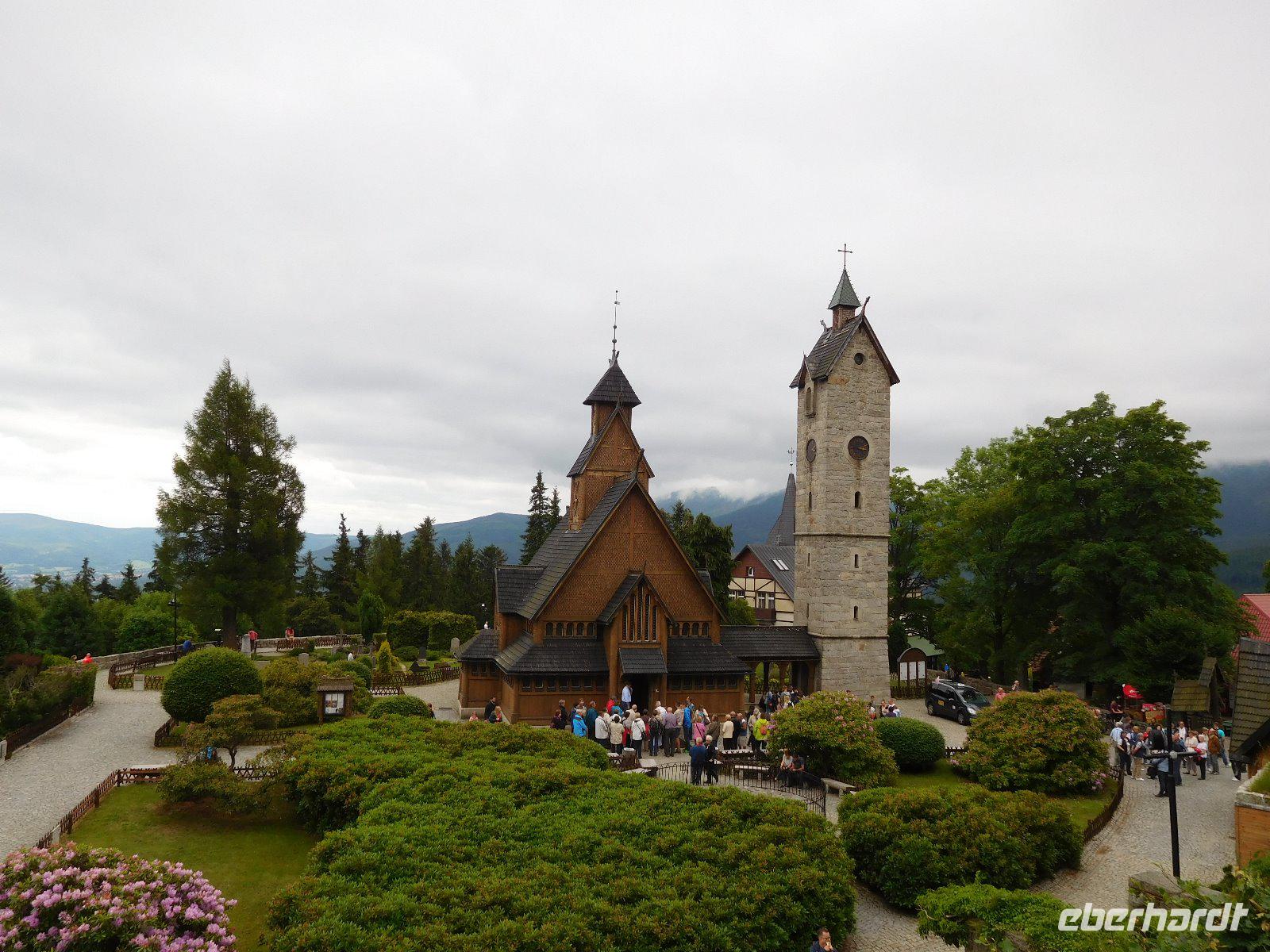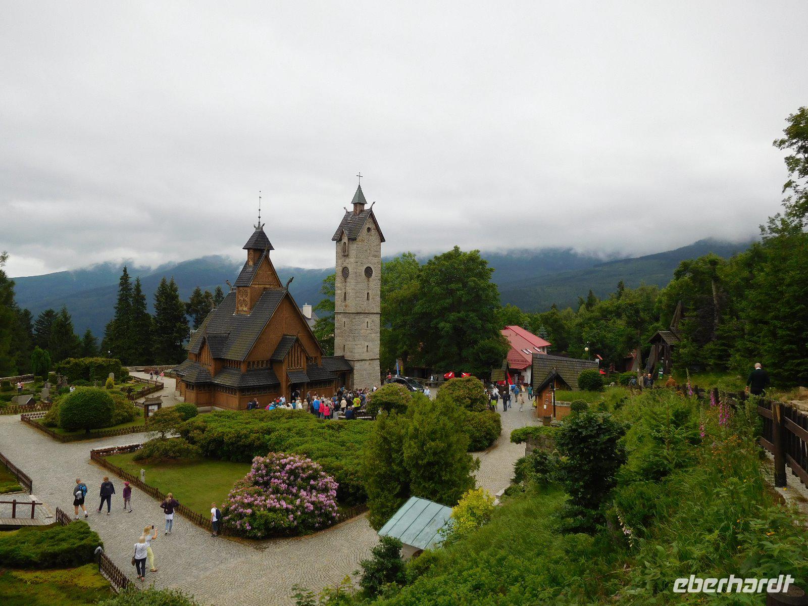 Wer wollte, konnte heute dem prächtigen Riesengebirge einen Besuch abstatten. Nach einer abwechslungsreichen Fahrt erlebten wir das Gerhart Hauptmann Haus, in dem der berühmte Schriftsteller lebte, schrieb und seine Gäste empfing. Faszinierend, wie die Fotos und Tonzeugnisse die Lebendigkeit des Ortes zurückbrachten und uns in eine andere Zeit versetzten. Weiter führte die Fahrt über Hirschberg bis zum Dom Liczyrzepy für ein delikates Mittagessen - Hier schon probierten wir von der polnischen Variante des Stonsdorfer Schnapses. Nicht lang und wir konnten in der Stabkirche Wang lauschen, wie diese Norwegische Stabkirche ihren Weg nach Karpacz gefunden hat. Die filigranen Schnitzereien, ergänzt um barocke Kunstfertigkeit, waren weitere Punkte des Staunens. Auf dem weiteren Weg durch das Riesengebirge konnten wir den Original Stonsdorfer auf dem Schloss Stonsdorf verkosten.