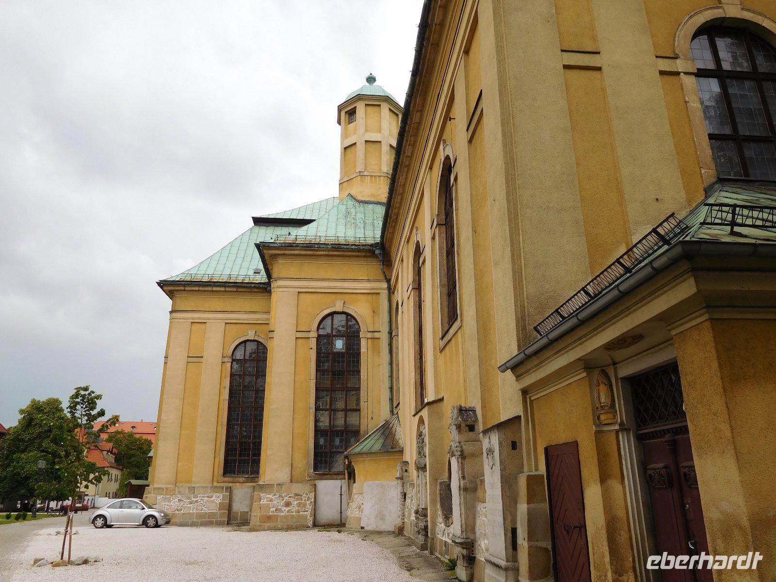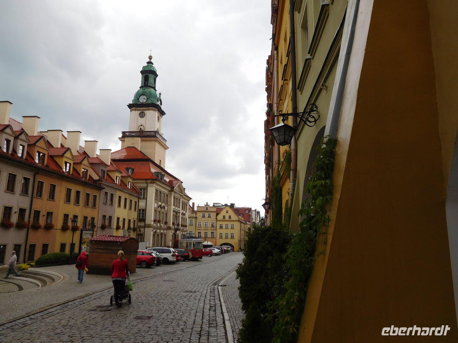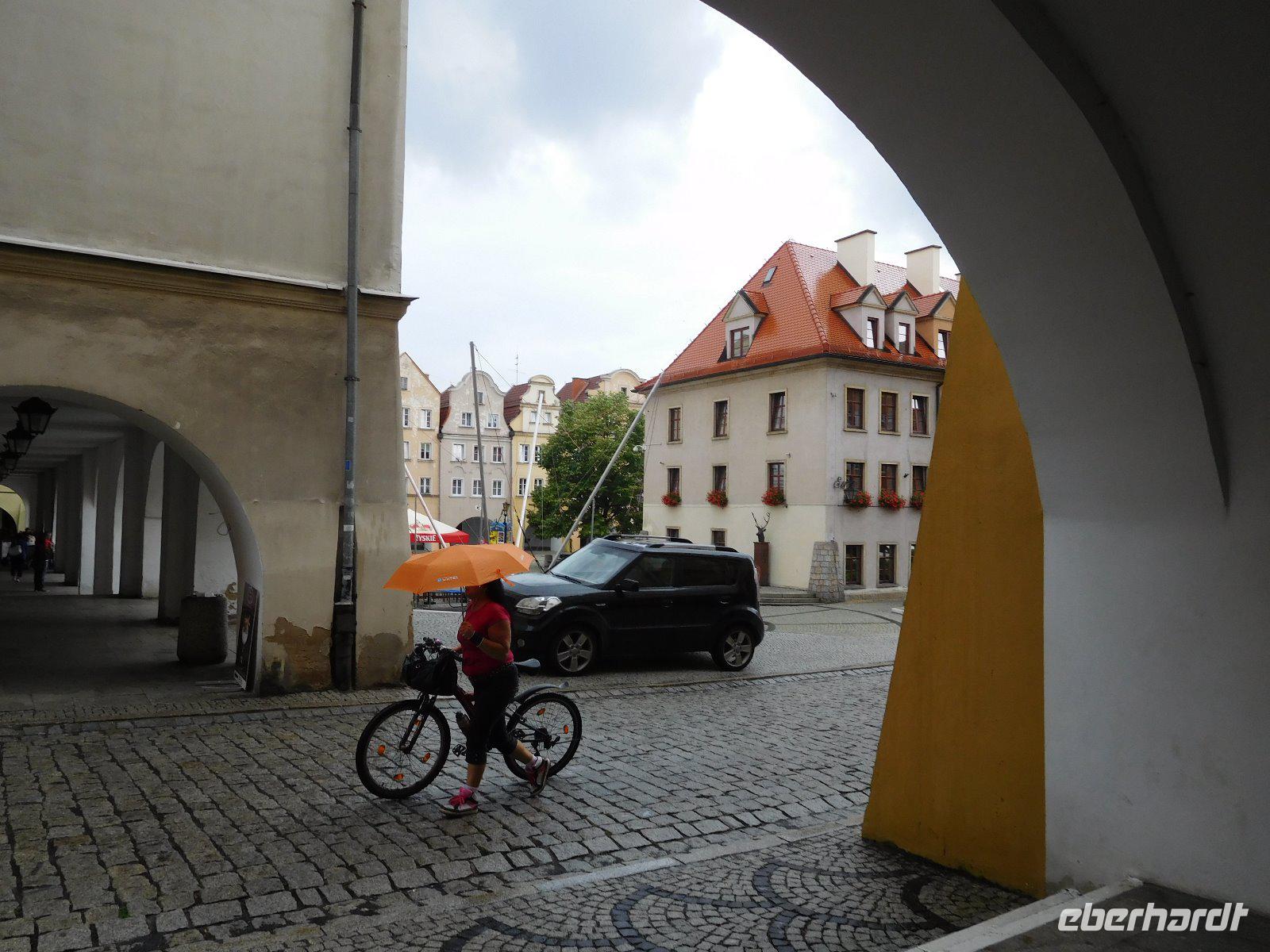 Nach Schweidnitz fuhren wir weiter nach Jelenia Gora oder Hirschberg. Hier sollten uns wieder Kirchen, darunter die Kreuzkirche nach dem Schwedischen Vorbild, und mittelalterliche Arkadengänge auf dem Hirschberger Markt erwarten. Leider hörte in Hirschberg das Glück mit dem Wetter auf und starker Regen überraschte uns.
