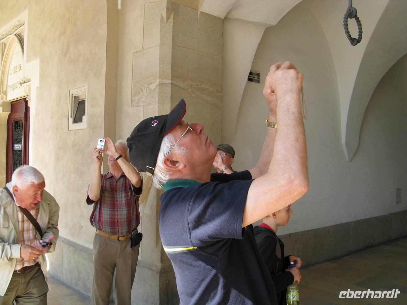 eben gut Deutsch spricht. Auf der ganzen Welt kommt diese Frage sofort von den deutschen Touristen. " Ich bin Deutscher", so die Antwort von Christian Vogt, der aber excellente Kenntnisse über Polen vorzuweisen hat. Er führt die Gruppe über den Markt zur nach Prag zweitältesten Universität Mitteleuropas. Danach erlebt die Gruppe die Öffnung des Veit-Stoß-Altars in der Marienkirche.