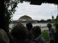 Die Frage danach beschäftigte einige Gruppenmitglieder schon vorher und so wurde vom Reiseleiter selbstvrständlich nach einer Möglichkeit gesucht, die Halle auch INNEN zu besichtigen, weilder Reiseleiter selbst ein großer Fan dieses Bauwerkes mit der größten freitragenden Kuppel ist. Zum Glück gehörte eine Architektin der Gruppe an, die aus dieser Sicht die Besonderheiten dieses Bauwerkes erläutern konnte. Durch diesen Besuch konnte auch