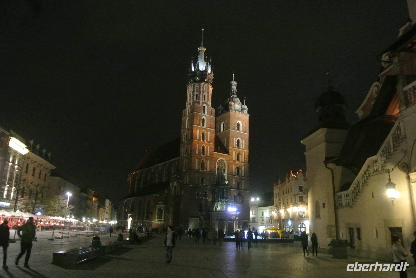 Der Rynek von Krakau sieht schon auf Fotos eindrucksvoll aus aber in Wirklichkeit verschlägt er einem den Atem.Marienkirche bei Nacht
