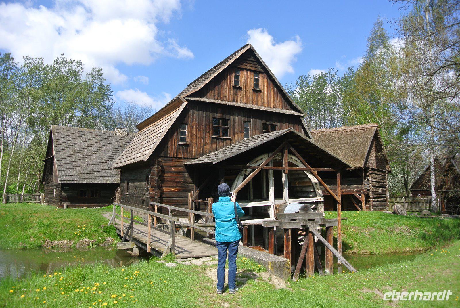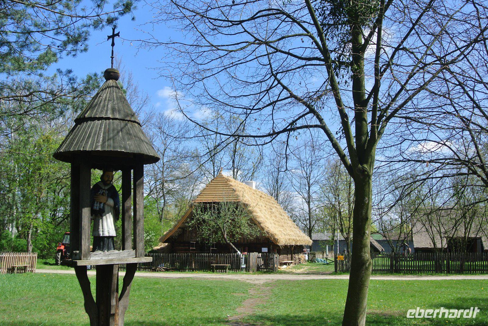 Nach einer WC Pause im Freilichtmuseum führte uns unser örtliche Führer Eryk Latala von 11:15 bis 12:45 durch das Dorf mit originellen Gebäuden und interessanten Häusern.