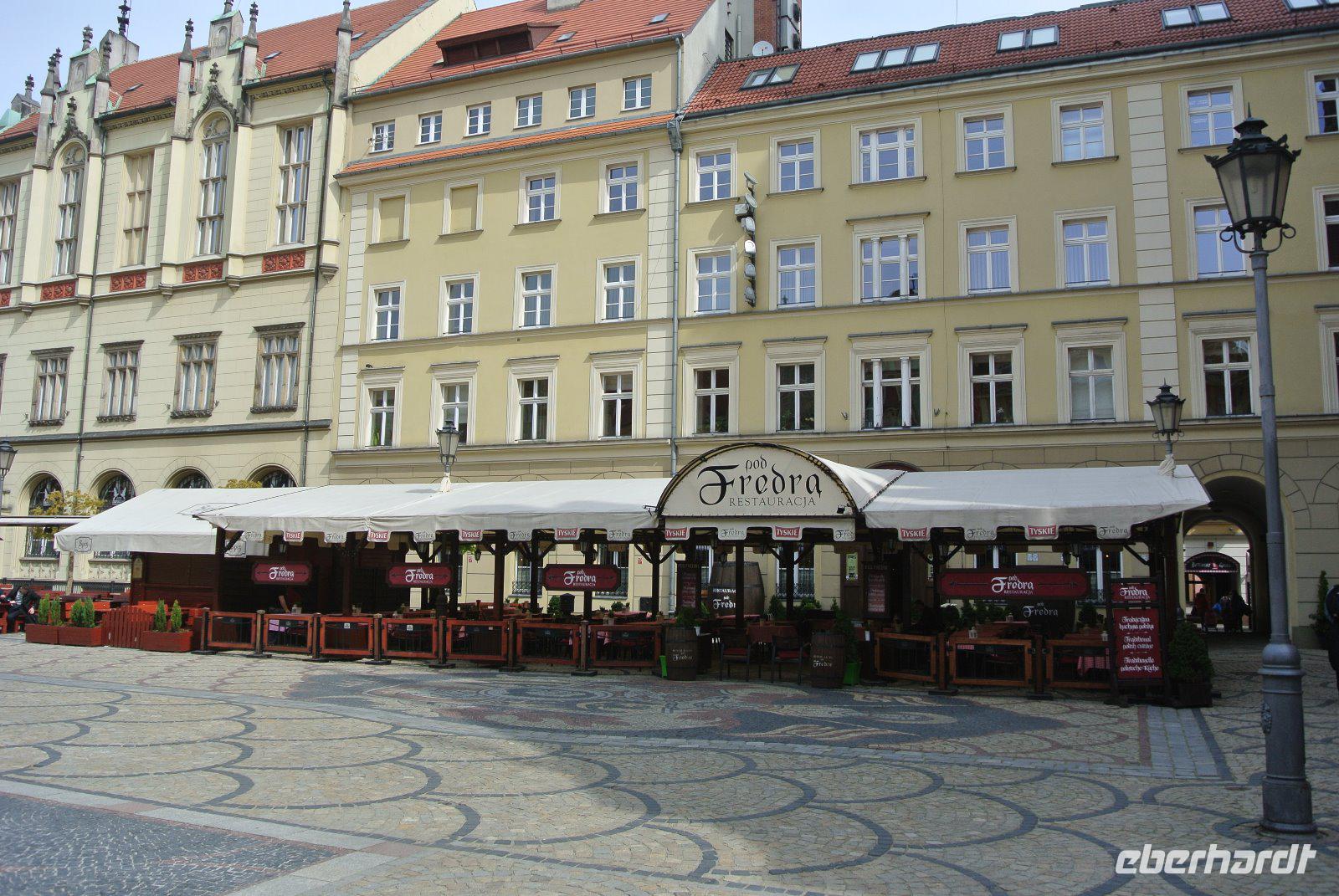 Die Gaststätten waren restlos ausgebucht und unser Reiseleiter musste alle seine Beziehungen spielen lassen, um für uns doch noch zwei schöne Tische in der Traditionsgaststätte Pod Fredera auf dem Rynek, direkt neben dem sehenswerten Rathaus, zu reservieren.
