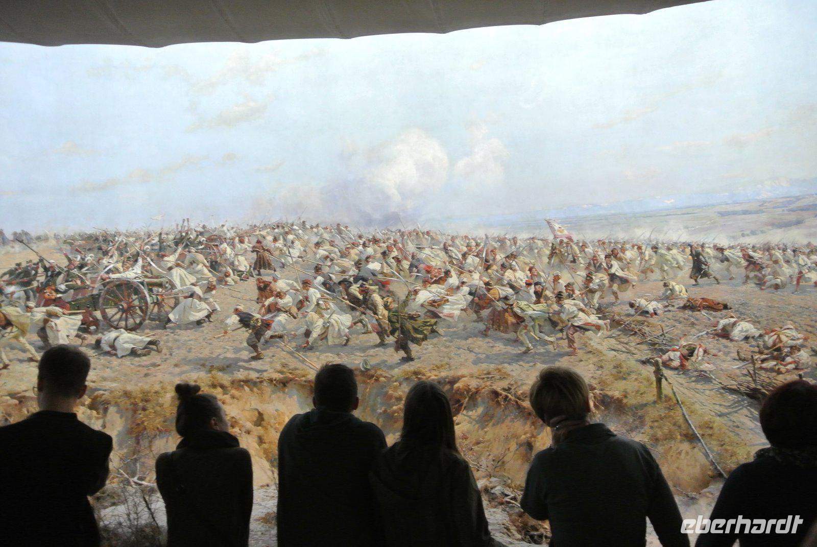 Das eindrucksvolle Gemälde das durch seinen besondere Maltechnik einen 3-D Effekt hat stellt die Schlacht von polnischen Bauern unter dem Nationalhelden Tadeusz Kosciuszko gegen einen gut ausgebildete russische Armee am 04.04.1794 dar und hat eine Länge von 142 Metern und eine Höhe von 12 Metern.