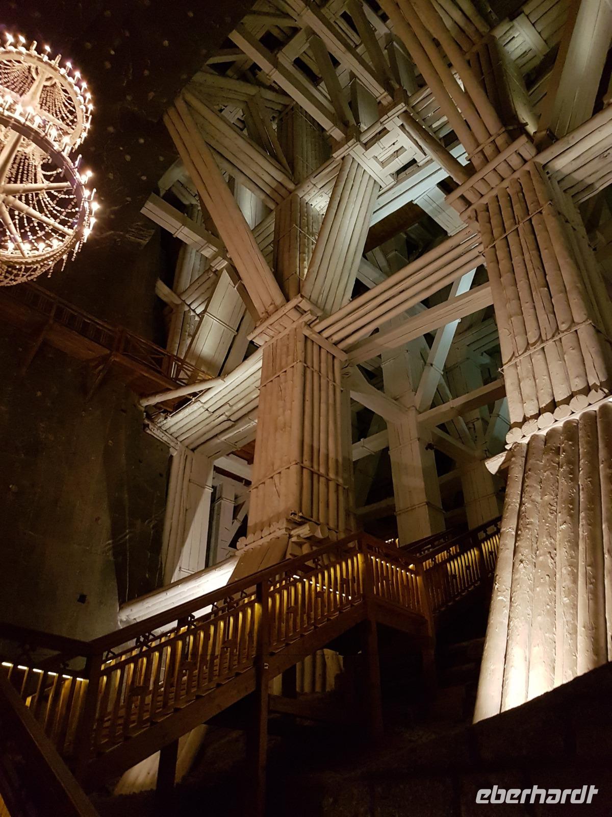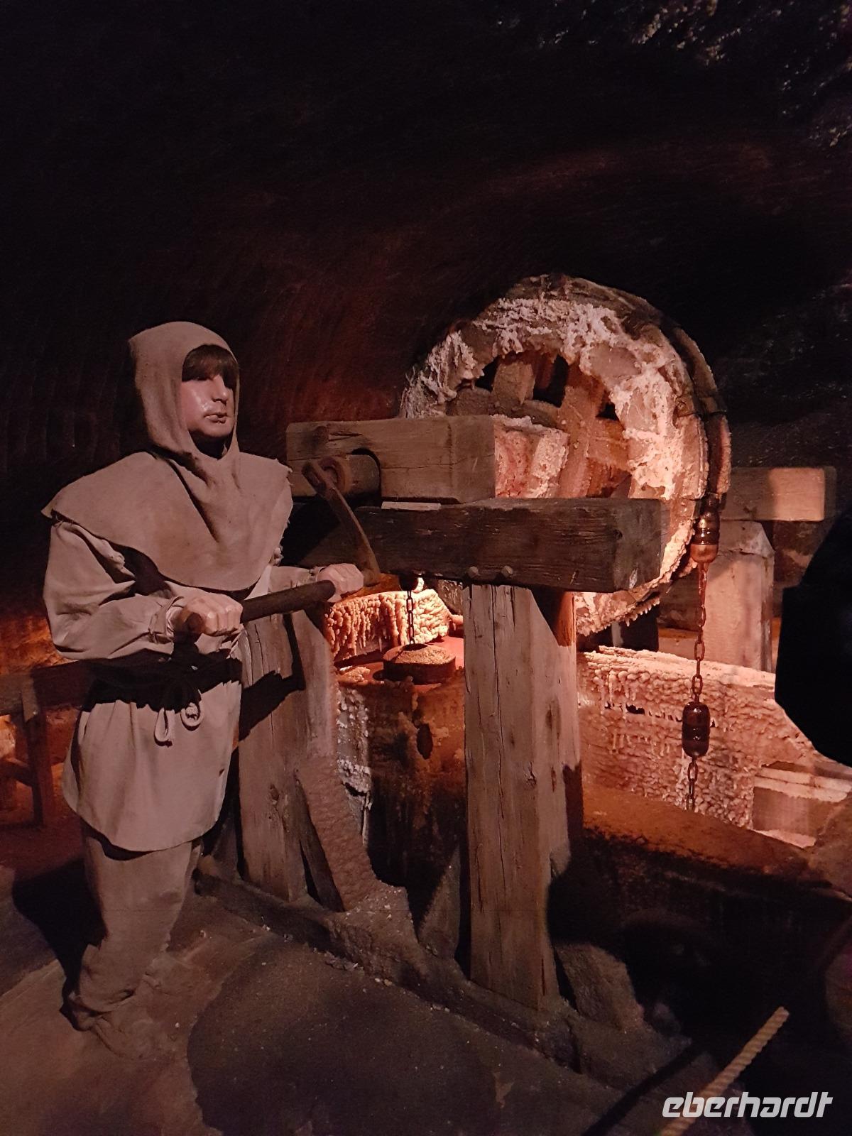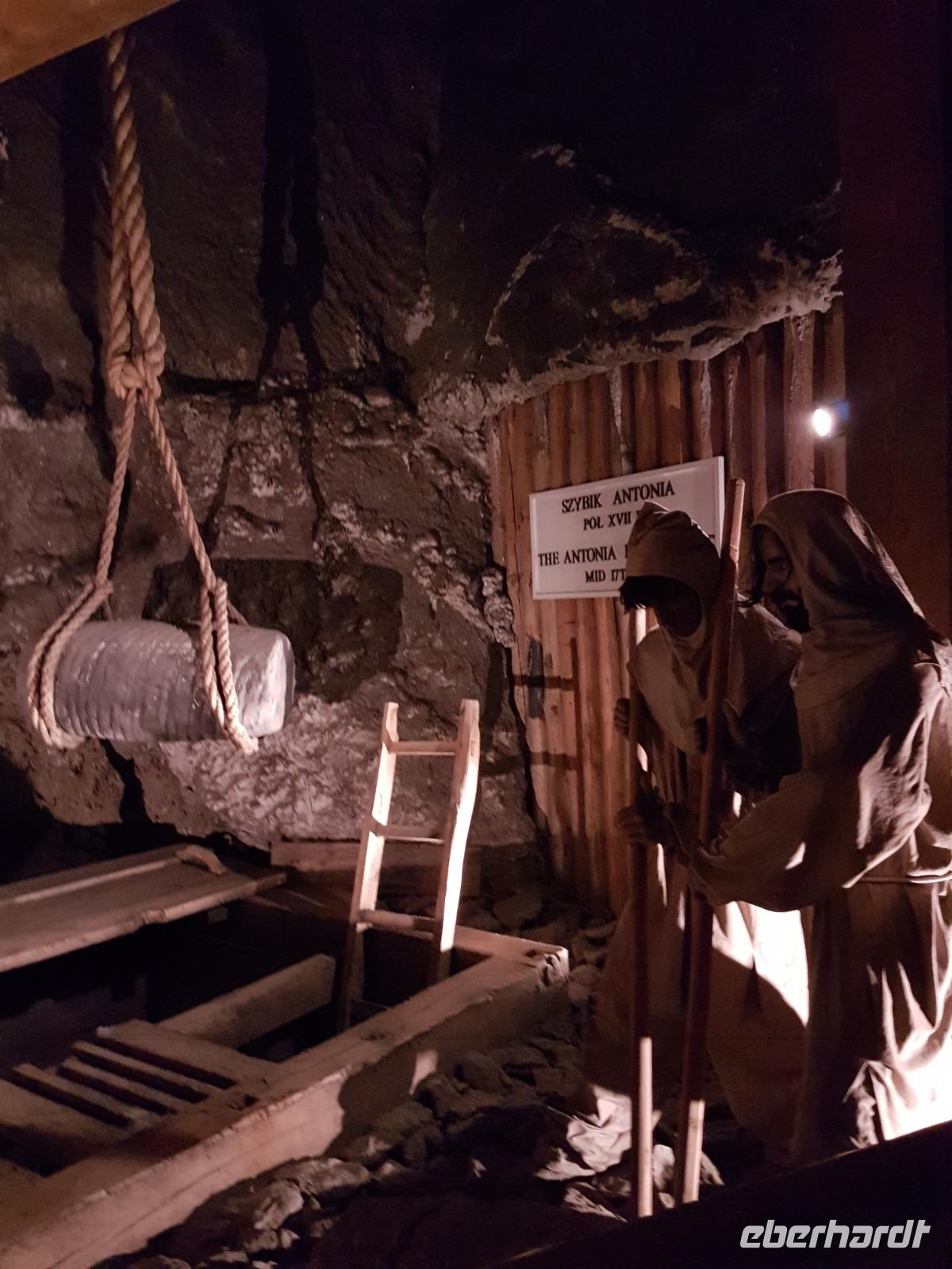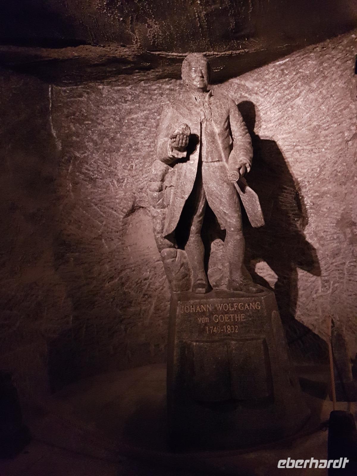 Die meisten Gäste hatten den Besuch der Salzmine Wieliczka gebucht und so fuhren wir nach dem Frühstück mit dem Bus zum etwa 30 Min. entfernten berühmten Salzbergwerk. Christian begleitete uns bis zum Bergwerk und erledigte da die, wegen Corona, veränderten Formalitäten für uns, bevor wir mit dem Bergführer MAREK 380 Stufen nach unter Tage gingen. Auf einer ersten Sole, 130 m unter der Erdoberfläche begann die sehr interessante Führung. Wir erfuhren, das der Salzbergbau in vergangenen Zeiten 30% der Staatseinnahmen ausmachten. Salz wurde wie Gold gehandelt ! Unter Tage gab es viele interessante Dinge zu sehen. Wie erfolgte der Abbau und die Zutageförderung , wie schwer und gefährlich war die Arbeit. Welche Persönlichkeiten besuchten das Bergwerk. Viele Darstellungen nur aus reinem Salz sind wahre Kunstwerke, so die Ausgestaltung der einzelnen ehemaligen Salzkammern mit übermannsgroßen Persönlichkeiten und Darstellungen der biblichen Geschichte.