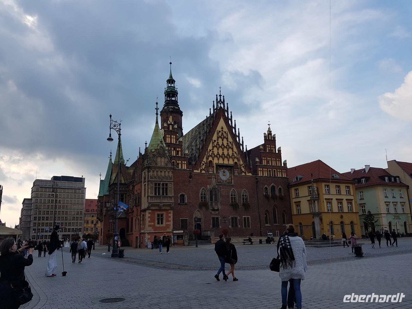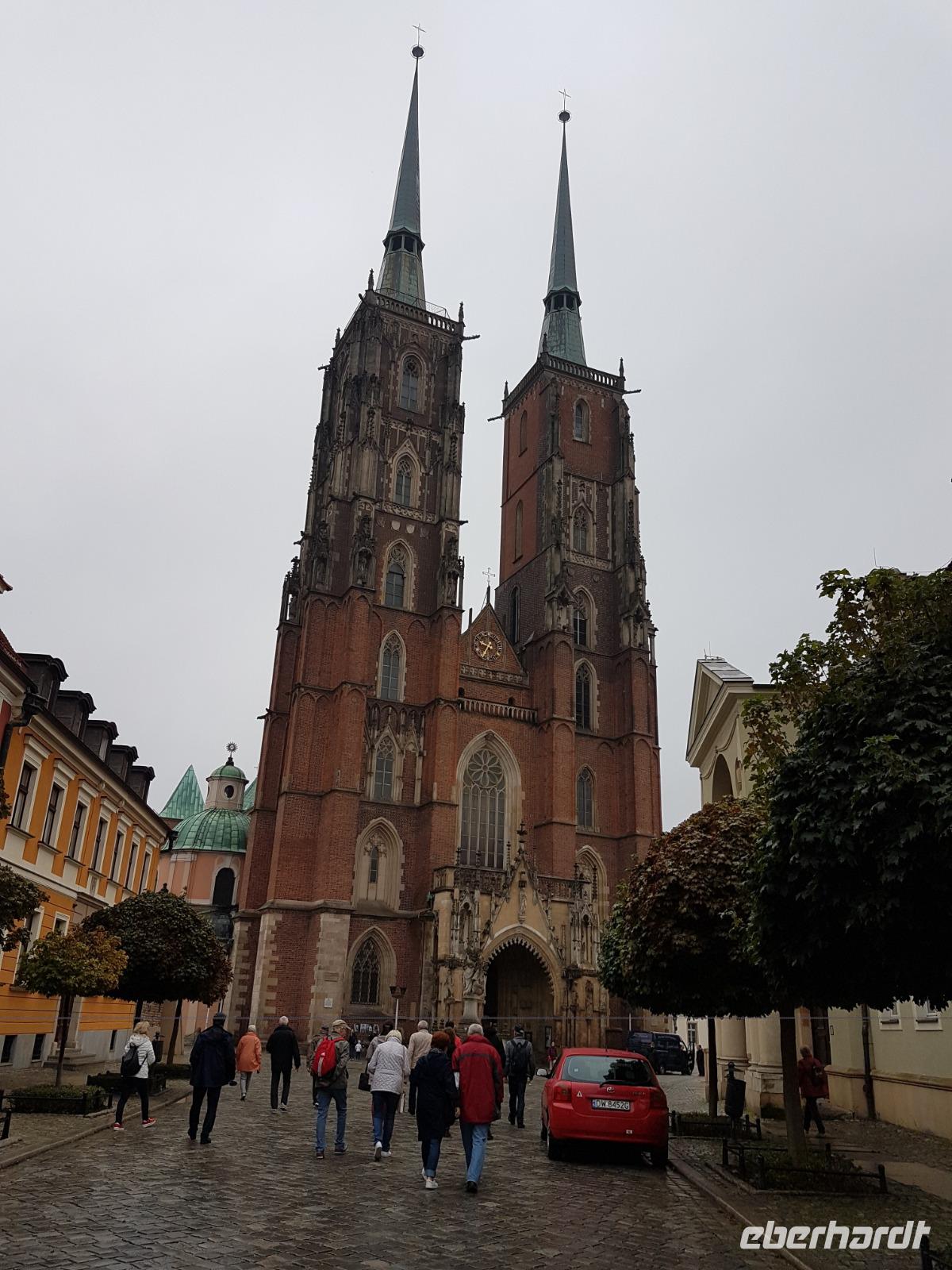 Gegen 09:00 Uhr trafen wir uns nach dem leckeren Frühstück mit Aldona, die uns zu den wichtigsten Sehenswürdigkeiten der Stadt führte. Zunächst ging es mit dem Bus zur Dominsel, anschließend fuhren wir weiter zur Jahrhunderthalle, die Max Berg 1913 fertigstellte und die als das herausragende Bauwerk der damaligen Zeit galt. Ein Spaziergang zu den Wasserspielen hinter der Halle schloß sich an. Zurück in die Stadt ging es mit dem Bus. Im Zentrum führte uns die örtl. Reiseleiterin zu Fuß über den Martplatz und erklärte uns die wichtigsten Bauwerke. Weiter ging es durch die ehemalige Metzgergasse zur histor. UNI. Hier besichtigten wir das Oratorium Marianum und einige Gäste auch den Mathem. Turm. Leider wird z.Z. die Aula Leopoldina restauriert und wir konnten nur das Eingangsportal sehen.