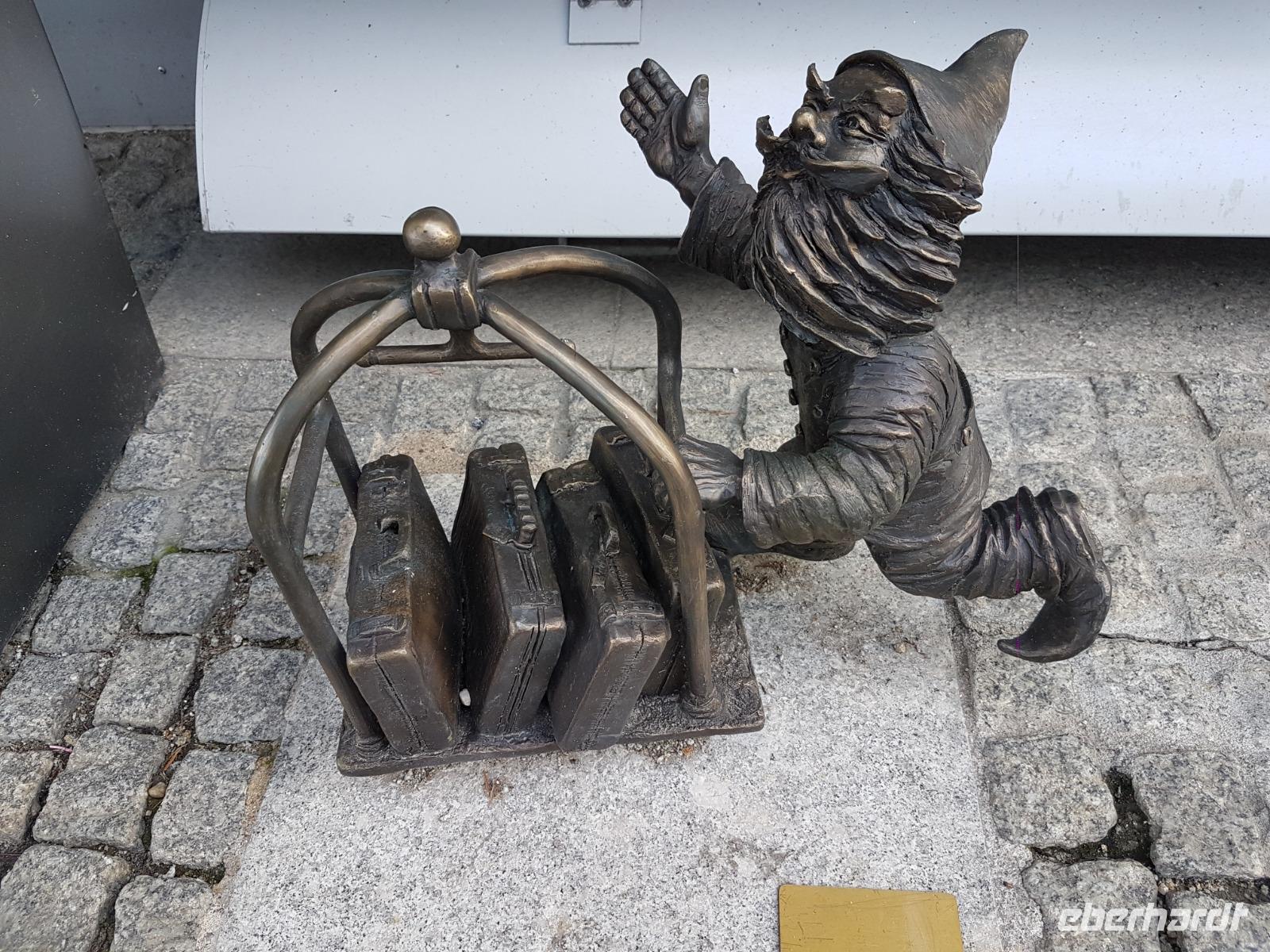 Pünktlich begann die Reise mit Zustiegen in Chemnitz, Nossen und Dresden. Es ging über die A4 und in Görlitz überquerten wir die Grenze zu unserem Gastland. Unsere Zimmer standen beim Eintreffen am direkt an der Oder liegenden Hotel HP PARK PLAZA schon für uns bereit. Nach dem Check in und etwas frisch machen, trafen sich die Gäste mit dem Reiseleiter Horst zu einem ersten Spaziergang durch die Stadt. Es ging über die Sandinsel, die Oder, vorbei an der histor. Markthalle zum Rynek. Auf einer extra für unseren Spaziergang ausgewählten Strasse waren Messingplatten in den Fußweg eingelassen, die markante Ereignisse der histor. Stadt festgehalten haben. Natürliuch hatten die Gäste bis hierher schon allerhand Breslauer Zwerge entdeckt, von denen es jetzt schon ca. 600 Stück geben soll ! Wir kamen an dem histor. UNI- Gebäude vorbei und liefen weiter zum Rynek mit seinem sehenswerten Rathaus mitten auf dem Markt. Uns beeindruckte neben den herrlich restaurierten Bürgerhäusern auch die Sauberkeit in der Stadt. Ein Stopp in einem Kantor, der Besuch der Tourist- Info, ein Blick auf den rund um die Uhr geöffneten Blumenmarkt gehörten genauso zum Spaziergang, wie auch das Kennenlernen von "Hänsel & Gretel". Gegen 19:00 Uhr trafen wir uns im Hotelrestaurant zum ersten gemeinsamen Abendessen.