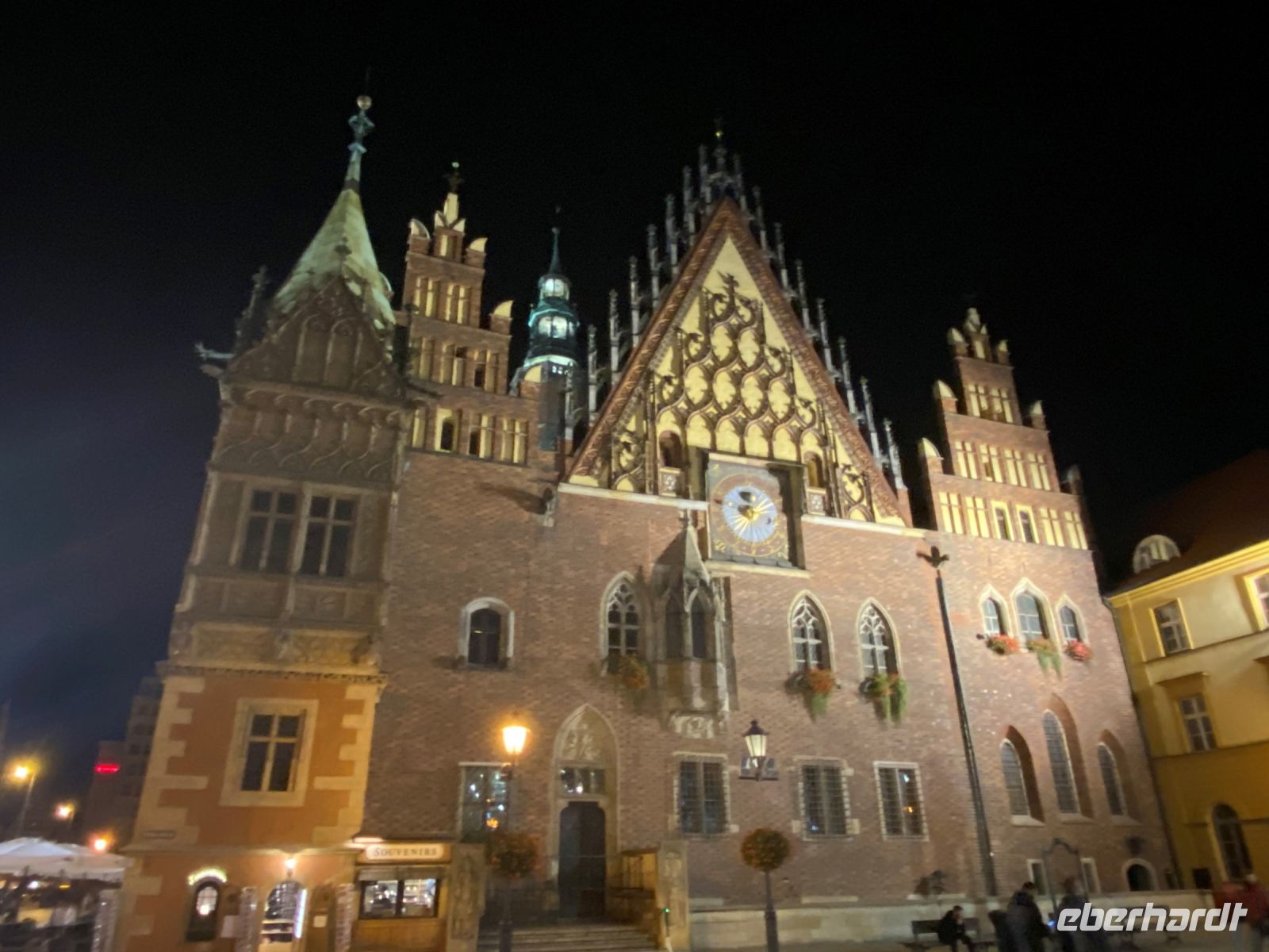 Entlang der früheren Via Regia fuhren wir mit dem Luxusreisebus in Richtung Schlesien. Informationen über Polens Wirtschaft, Kultur, Sprache und Geschichte machten die Fahrt kurzweilig bis zum ersten Zieles, des herrlichen Schlosses Fürstenstein. Dieses wurde mit Audio-Guide besucht. Nach dem viel zu kurzen Aufenthalt dort, erreichten wir unser Hotel Park Plaza in Breslau. Nach dem schmackhaften Abendessen besuchten wir noch die abendliche Altstadt.