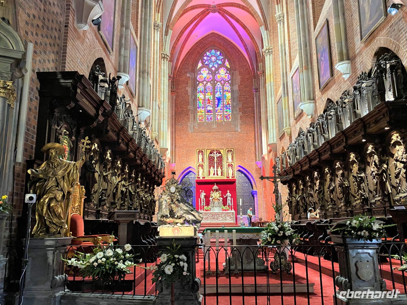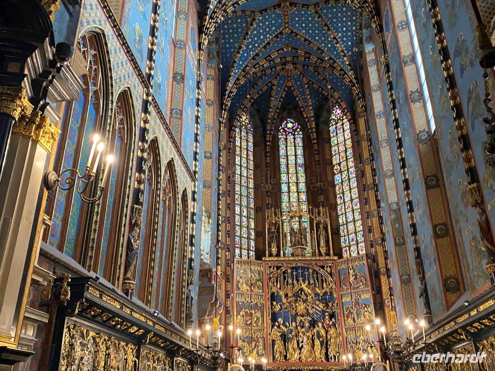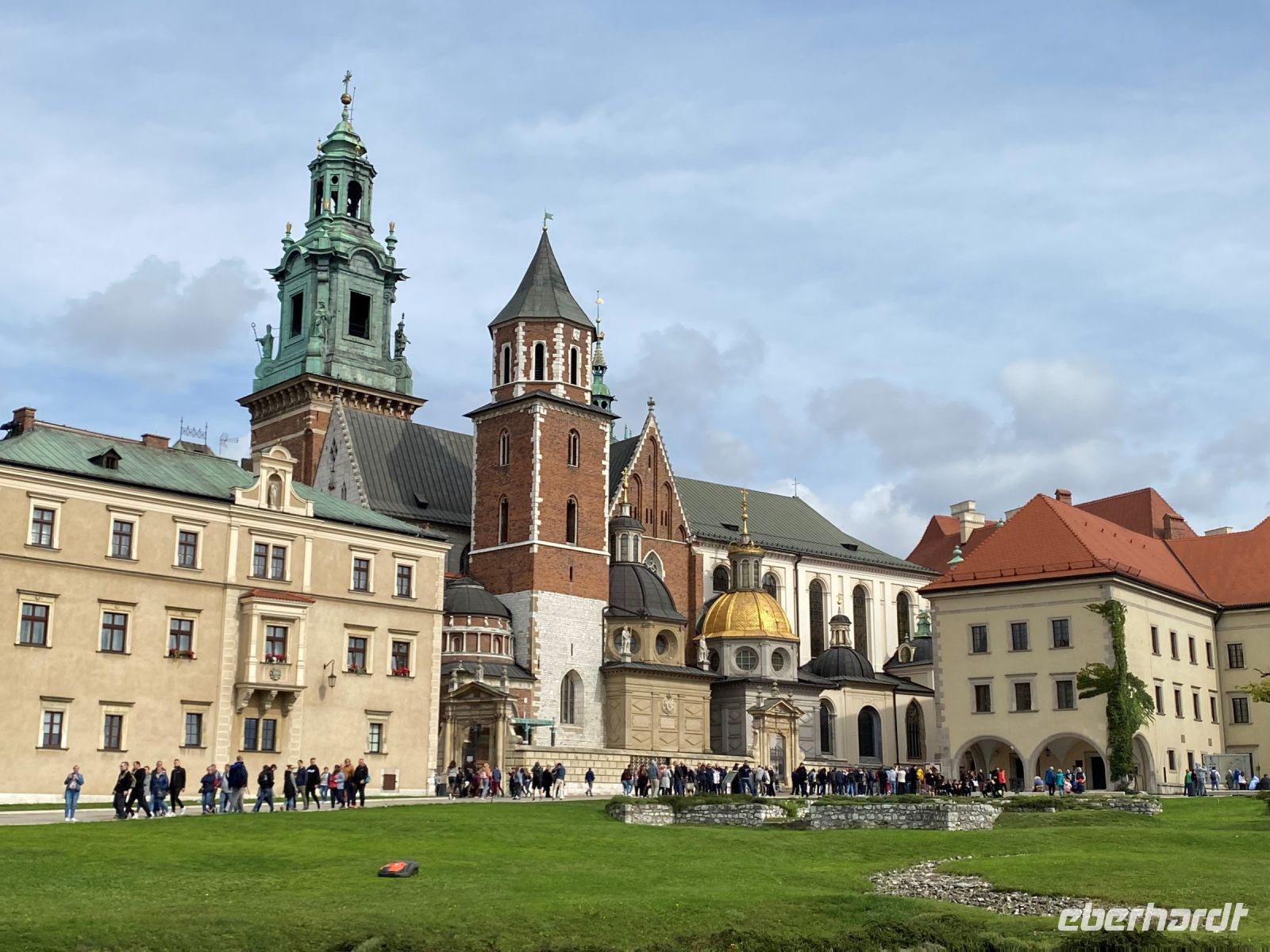 Christian, ein Deutscher, der seine neue Heimat in Krakau gefunden hat, fährt mit uns nach Kazimiercz und erklärt uns das ehemalige sowie jetzige jüdische Leben in der Stadt beim Besuch der alten Synagoge. Nach einer kurzen Fahrt mit dem Bus geht es zu Fuß weiter. Der Wawel, die Krakauer Burg, ist unser nächstes Ziel. Neben einen herrlichen Blick auf die Altstadt und die Wawelkathedrale lernen wir die Innengestaltungdieses für Polen wichtigen Gotteshauses kennen. In der Unterkirche sehen wir die letzten Ruhestätten der polnischen Könige und natürlich auch den Sarg August des Starken. Danach folgt die Besichtigung der Altstadt mit Tuchhallen und Marienkirche. Wir hören den Turmbläser mit seiner abgebrochenen Melodie. Die Besichtigung des neu restaurierten Veit-Stoß-Hochaltars, das Hauptwerk des Meisters, in der Kirche, bildet den Höhepunkt der danach endenden Führung.