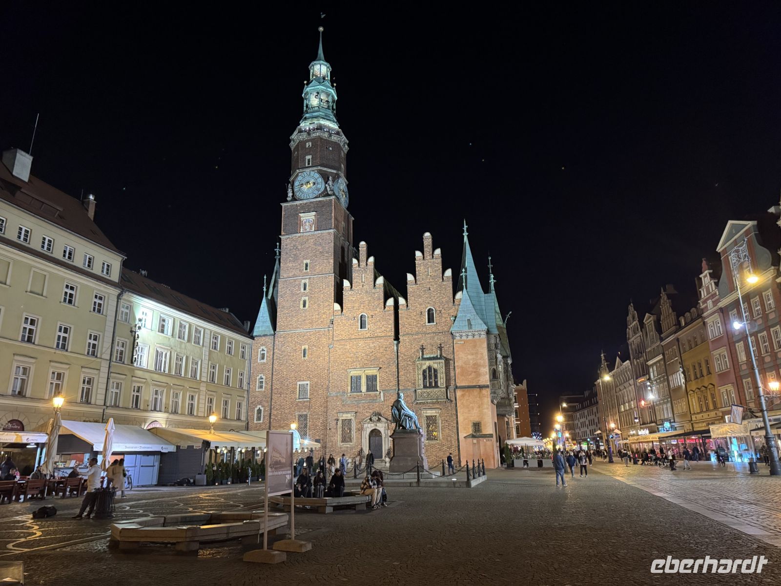Nach kurzweiliger Weiterfahrt mit vielen Informationen für die Reisegruppe über Polens Wirtschaft, Kultur, Sprache und Geschichte erreichten wir Fürstenstein, das größte Schloss Niederschlesiens und drittgrößte in Polen. Bei einer Führung mit Audio Guide erhielten wir Einblicke in die preußische, deutsche und polnische Geschichte des Schlosses und ihre Herren. Die Schlossherren wurden von den Nazis enteignet. Der Bau von Stollen unter dem Schloss war Teil des Projektes Riese. Nach dem Zweiten Weltkrieg wurde die Anlage von den Sowjets geplündert. Unter polnischer Verwaltung verfielen die Anlagen zunächst. Erst in der Dritten polnischen Republik erlebte das herrliche Schloss seine Wiedergeburt. Deutsches Kulturerbe wird heute in Polen gepflegt. Am frühen Abend erreichen wir unser Hotel Park Plaza in Breslau. Nach dem schmackhaften Abendessen und Stärkung erlebte ein Teil der Gruppe bei einem Spaziergang Breslau bei Nacht.