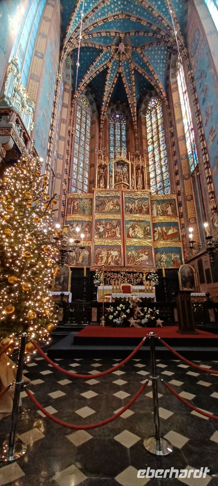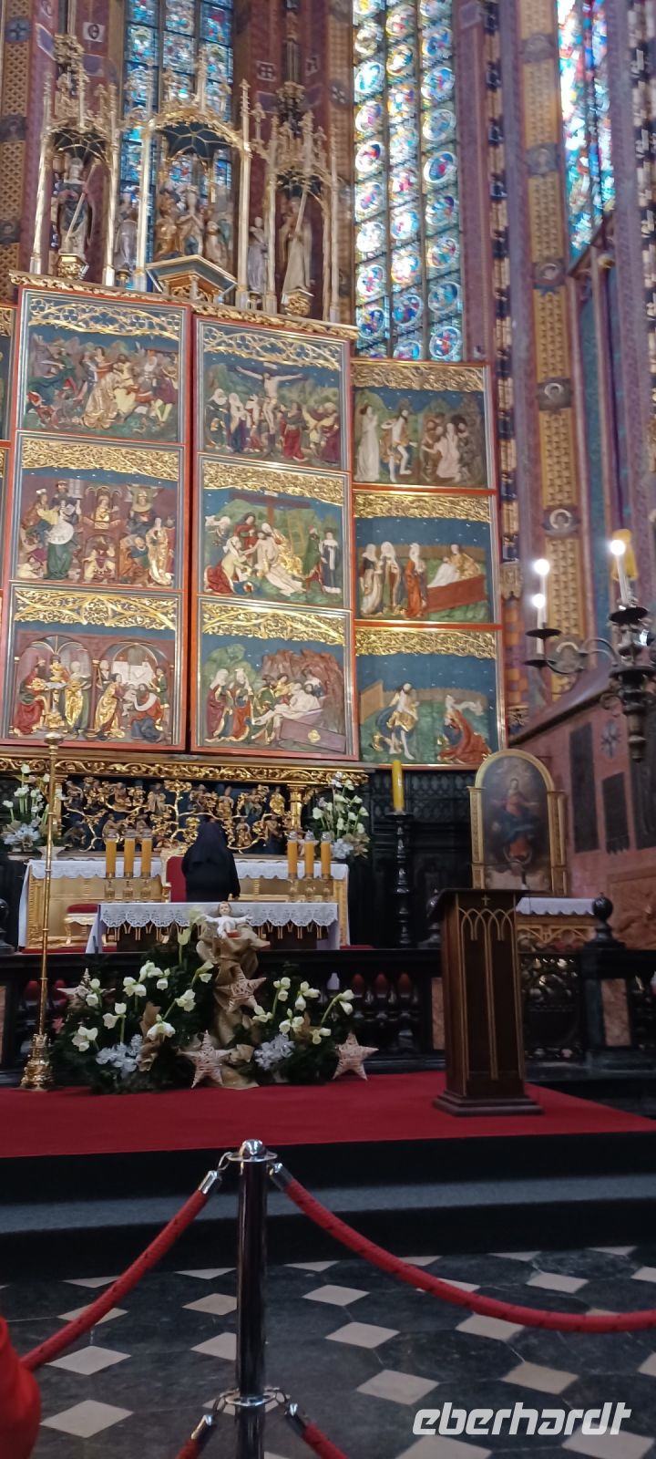 Das reichhaltige Frühstück genießen wir ausgiebig bevor uns der örtliche Reiseleiter Jan zum Spaziergang durch die Altstadt abholt. Begeistert hören alle Gäste den ausführlichen Schilderungen über die Geschichte, die Architektur und Traditionen zu. Die Stimmung in der Gruppe ist wunderbar, die Sonne strahlt über uns und die wunderbare historische Stadt. In der Marienkirche haben wir das große Glück, als erste Gruppe Einlass zu bekommen und eilen gleich zu den Sitzbänken unmittelbar vor dem Altar, der dann sogar geöffnet wird. Die ganze Kunstfertigkeit von Veit Stoss, der deutsche Bildhauer und - schnitzer der Spätgotik begeistert uns auch deshalb, weil der geöffnete Hochaltar viele Jahre aufgrund von Bauarbeiten nicht sichtbar war. Der Nachmittag bleibt uns zum Erkunden des Weihnachts-markts auch in den historischen Tuchhallen mit seinen vielen Ständen. Danach trifft sich die Gruppe zum Dinner in einem hübschen Restaurant dem „Bela Roza“ bevor wir gemeinsam im kleinen Konzertsaal in der Nähe des Rynek ein Klavierkonzert von Frederic Chopin hören. Alle sind von dem Pianisten Pawel Kubica beeindruckt, mit welcher Fingerfertigkeit er die Musikstücke von Chopin darbietet. Am Abend lassen wir den schönen Tag bei einem Glas Wein in der Hotellobby ausklingen.
