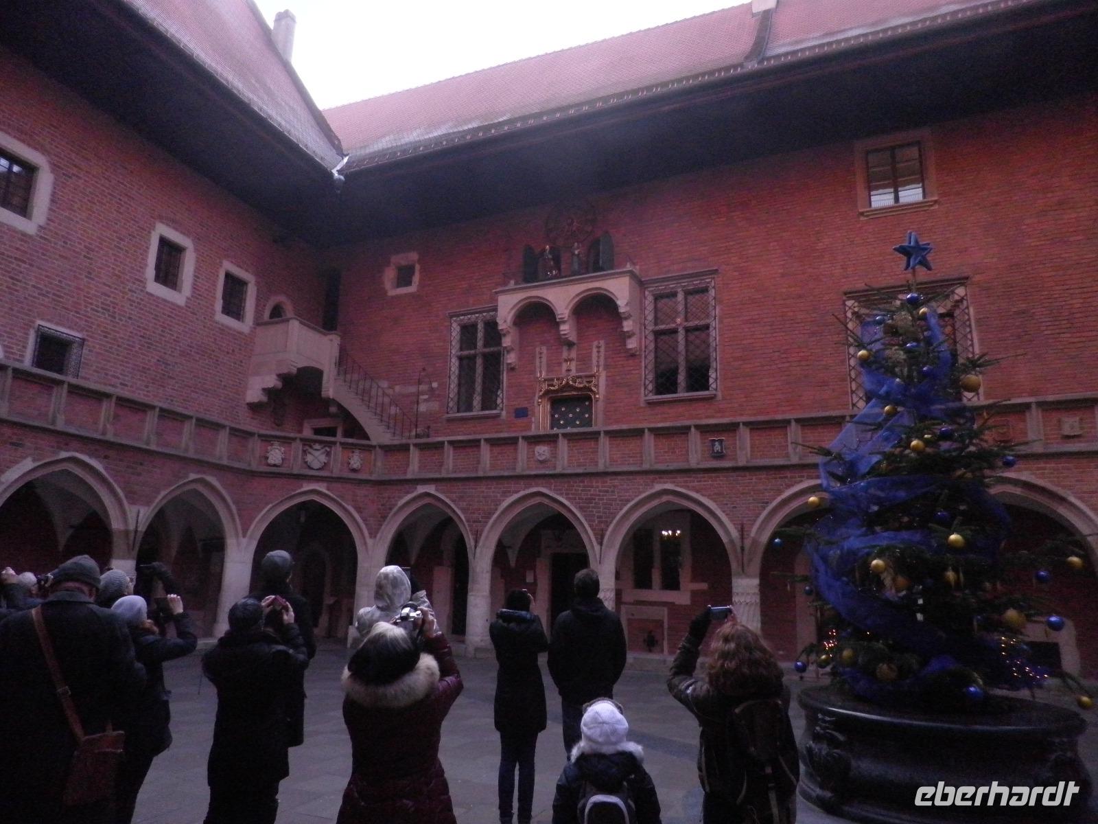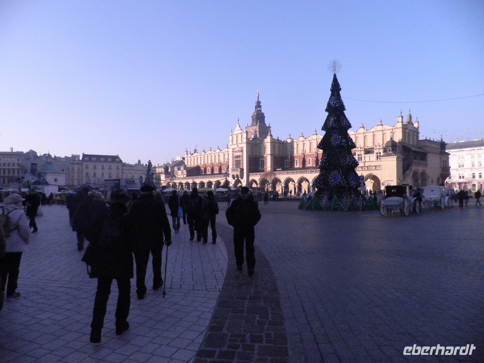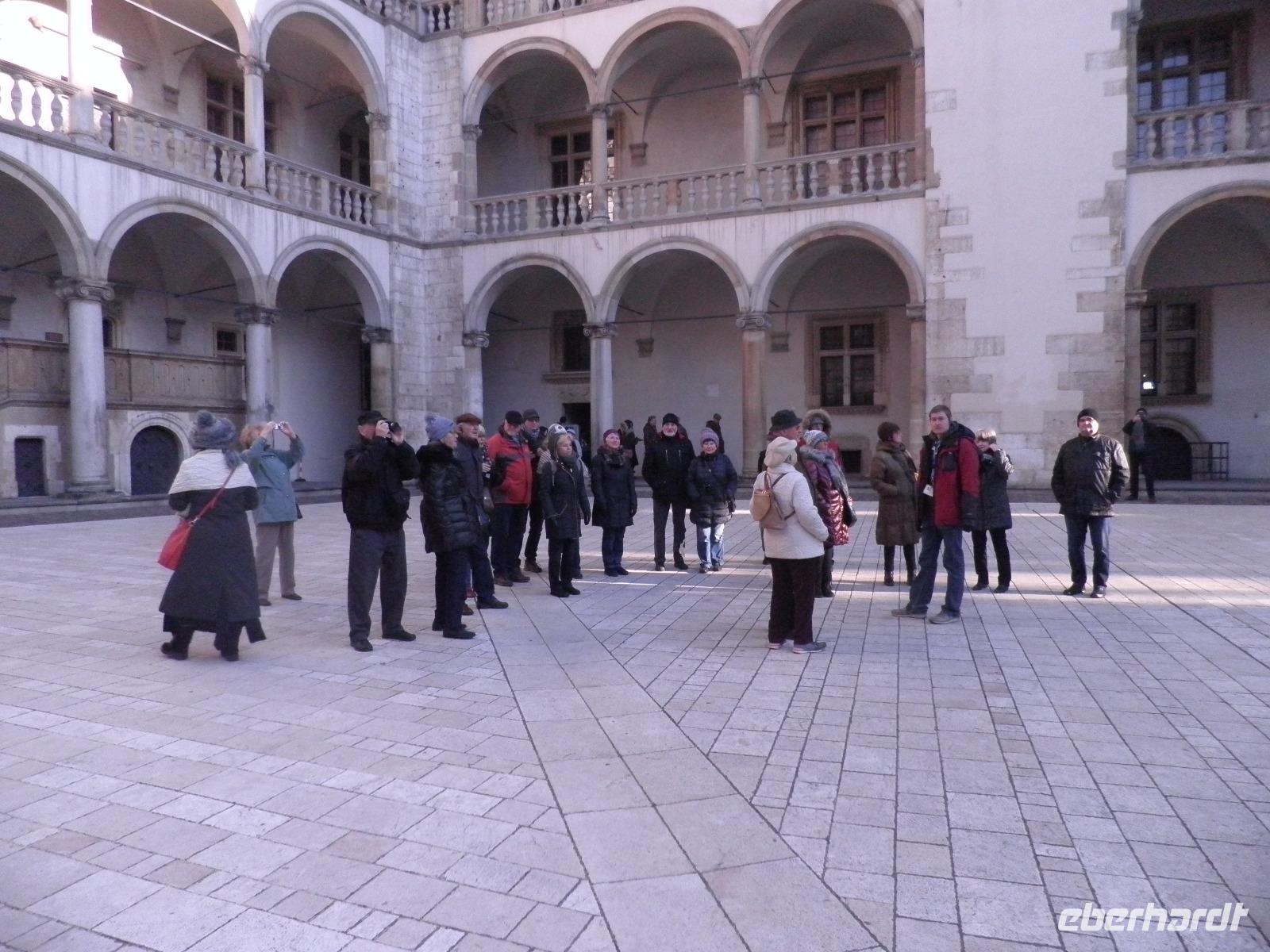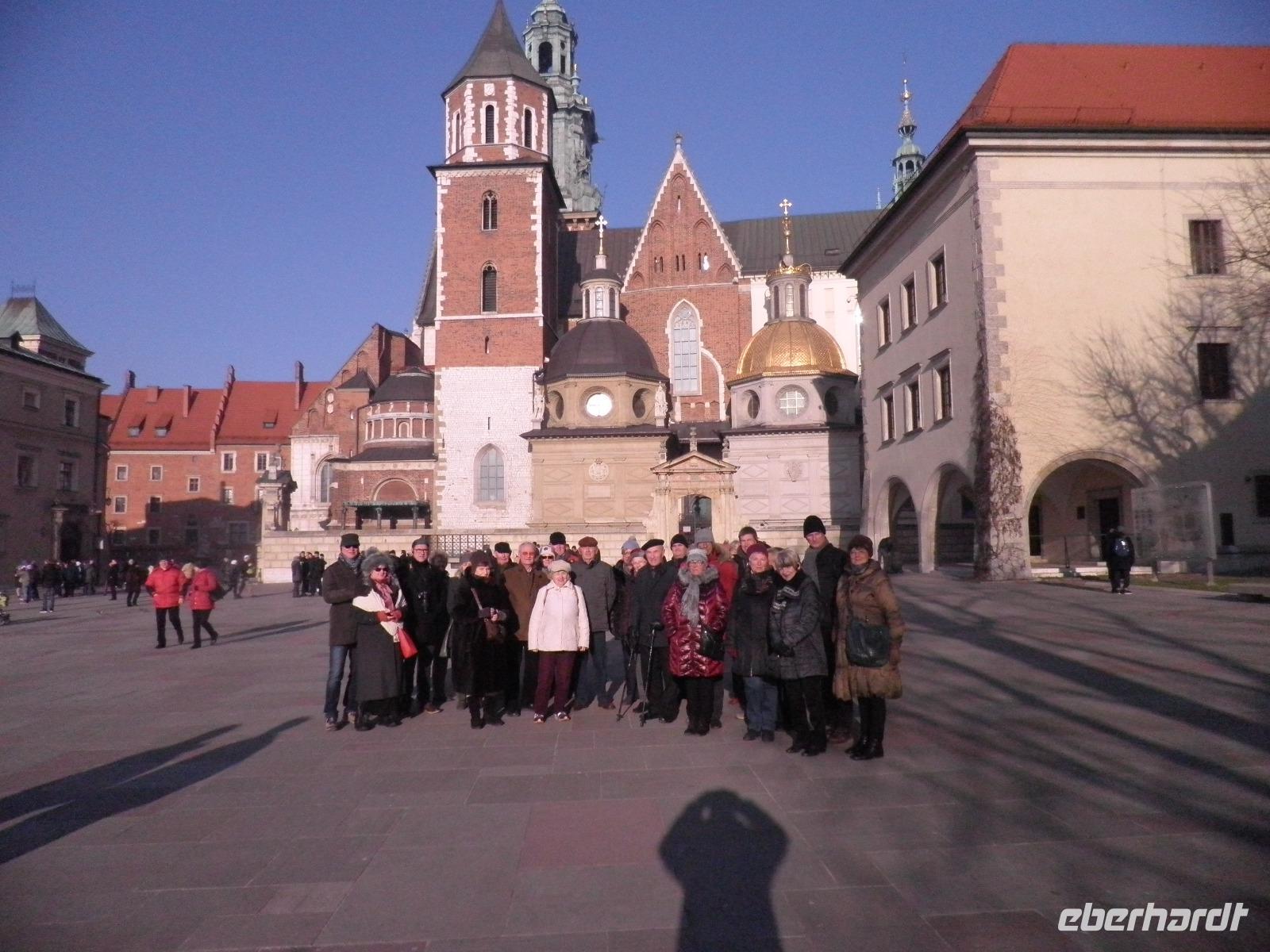 Im Mittelpunkt der Führung, wieder mit dem ausgezeichneten Stadtführer Christian, stand der Wawel mit Schloß und Kathedrale. Das Schloß mit seinem beeindruckenden Innenhof mit Säulenarkaden war über Jahrhunderte Zentrum des politischen und kulturellen Lebens Polens. Die bedeudensten Könige der Piasten Jagellonen und Wasa Dynastien residierten hier, wurden hier gekrönt und in der Kathedrale beigesetzt. Nach der Besichtigung des Wawel war Freizeit angesagt. Einige Gäste nutzten die Gelegenheit zu einem ausführlichen Einkaufsbummel in den Tuchhallen und den noch weihnachtlich gestalteten Markt. Der Rückweg zum Hotel erfolgte individuell. Den Nachmittag gestaltete dann jeder nach seinen Vorstellungen. 20 Uhr begann die Silvesterfeier eingeleitet mit einem Begrüßungsgetränk und einem Mehrgängemenü, untermalt mit Disko-Musik. Pünktlich zum Jahreswechsel wurde Sekt serviert. Bereits im altem Jahr wurde nach dem Festmenü ein reichhaltiges Themenbuffet eröffnet. Gegen 2 Uhr endete die Silvesterfeier.