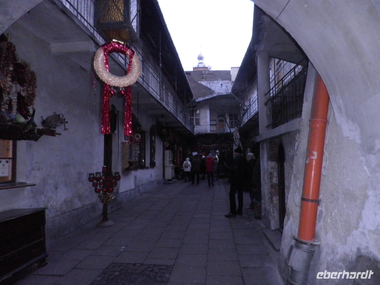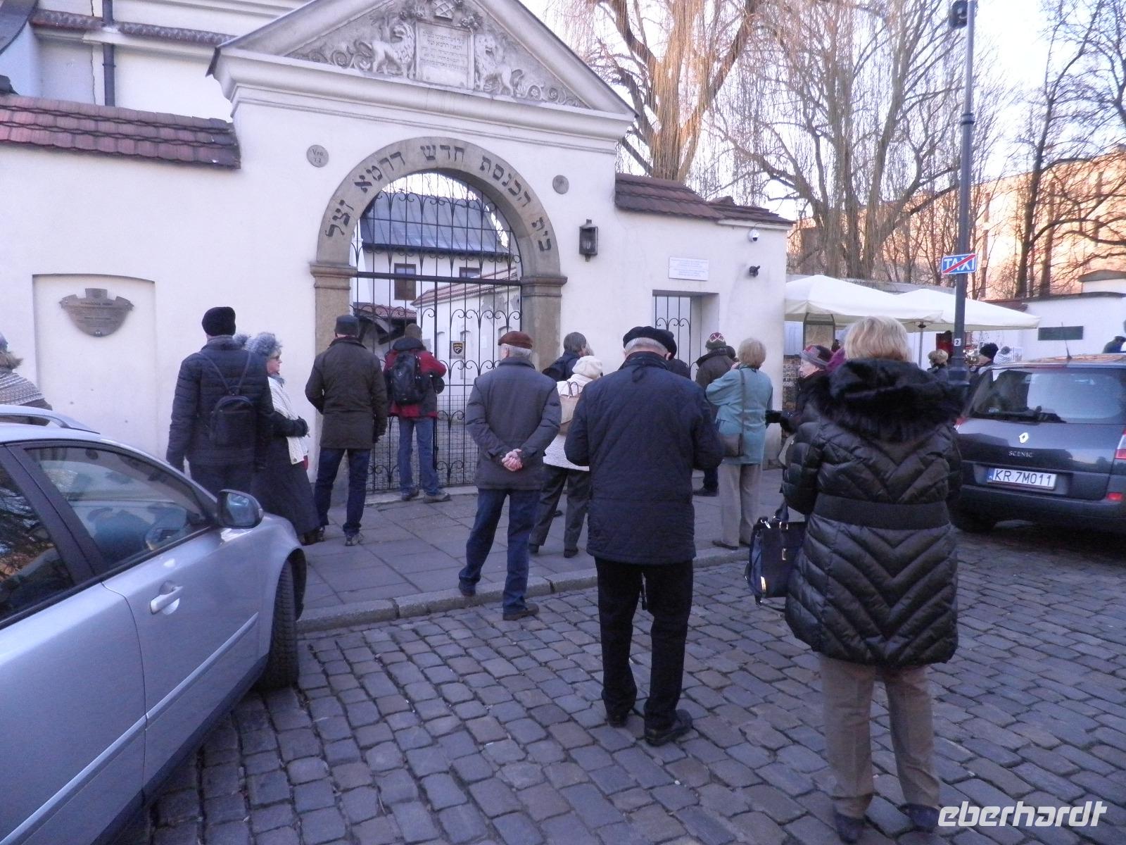 9 Uhr trafen wir an der Hotelrezeption Christian, unseren Stadtführer. Mit ihm und per Straßenbahn fuhren wir zum Babakan. Teil der Befestigungsanlage und gleichzeitig Eingangstor zur Altstadt. Zu Fuß und unter Erläuterungen zur Stadtgeschichte spazierten wir die Florianska zum Markt. Hier besichtigten wir die Marienkirche und bestaunten den Altar von Veit Stoß. Anschließend sahen und hörten wir das stündlich vor den Mongolensturm warnende Signal eines Trompeters von der Marienkirche. Nach einen kleinen Bummel durch die Tuchhallen besuchten wir die "Jagellonen" Universität. Anschließend war Freizeit angesagt. Danach gingen wir gemeinsam zu Fuß (15 min.) zum Hotel zurück. Nach kurzer Toilettenpause fuhren wir mit den Bus ins jüdische Viertel "Kazimierz".Leider hatte die Remuhsynagoge wegen Bauarbeiten vorzeitig geschlossen. Alternativ wurde der Besuch der "Alten Synagoge" ( heute Museum) in das Besichtigungsprogramm aufgenommen. Fachvokabeln wie Thora, Talmud, Tanach und koschere Speisen wurden hier erläutert. Bei einem kurzen Rundgang durch das jüdische Viertel bekamen wir einen kleinen Einblick in das frühere Leben in diesem Stadtteil. Anschließend gingen wir zur Restauration "Hois"zum Abendessen. Bei traditioneller jüdischer Klezmer-Musik und einem vorzüglichen Essen beschlossen wir den Abend. Zurück zum Hotel fuhren wir mit unserem Bus.