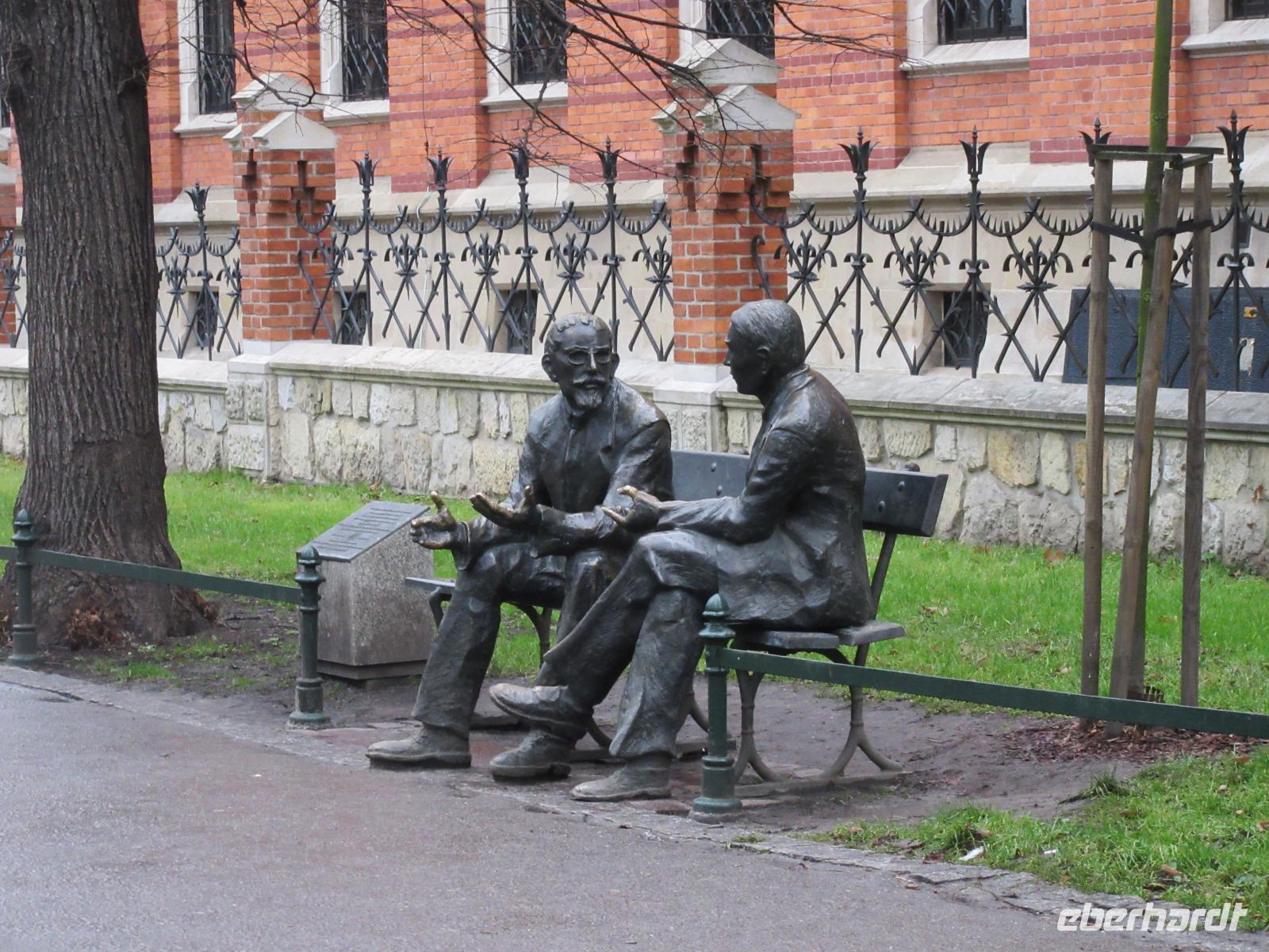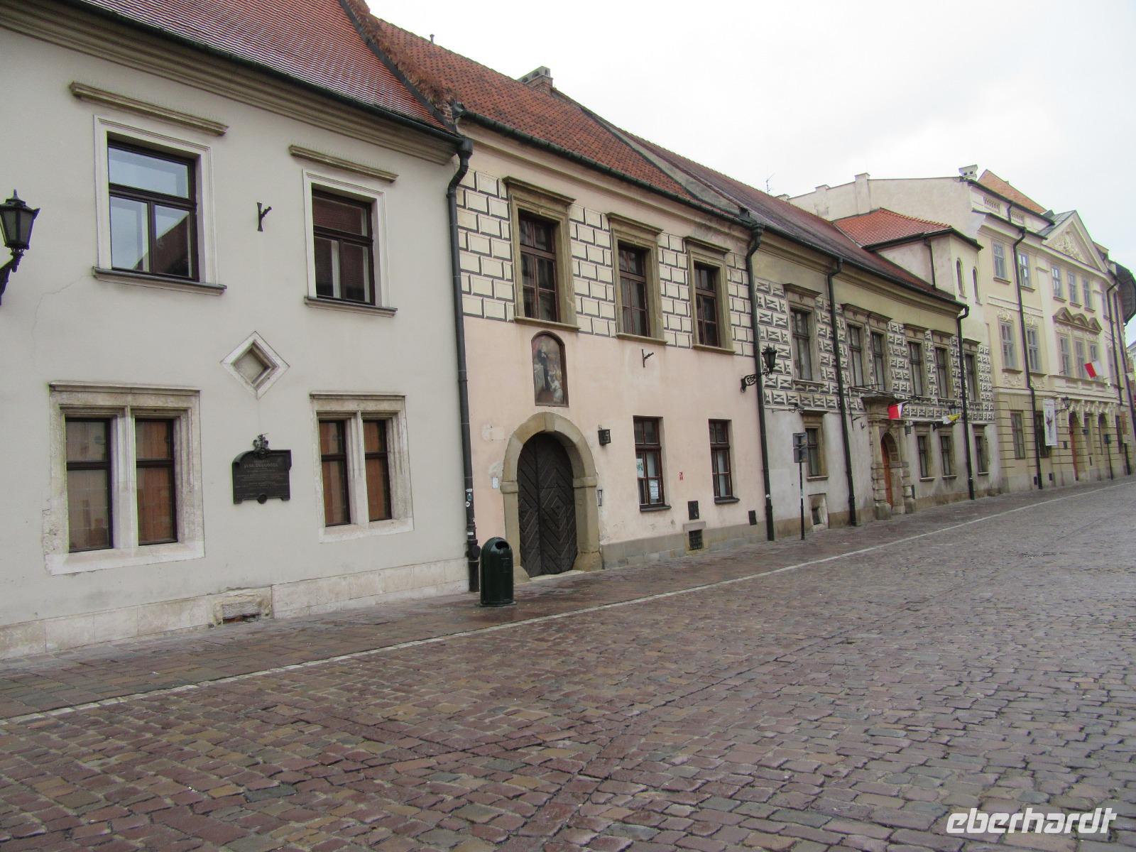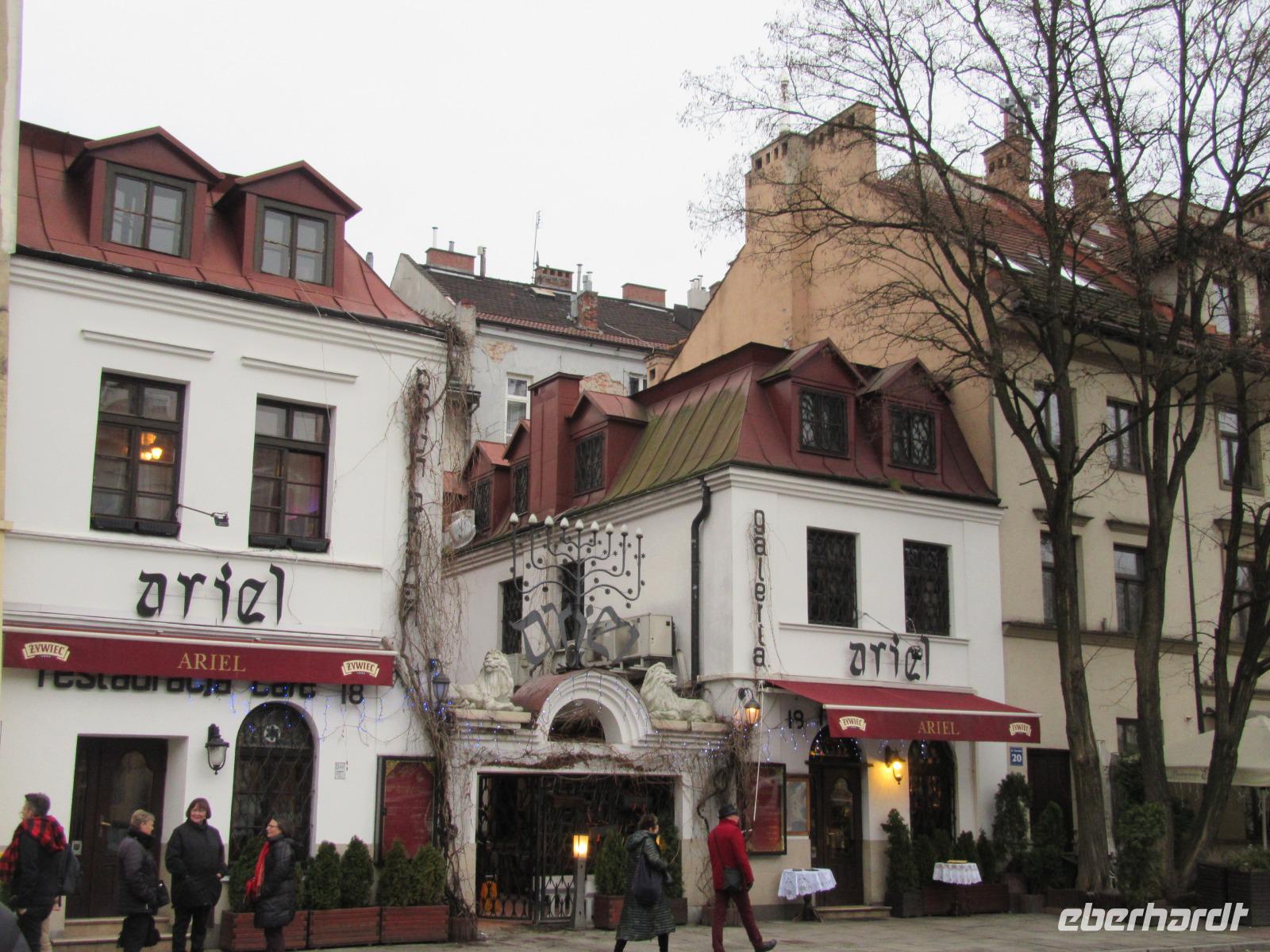 Danach war erst einmal Zeit zur freien Verfügung. Einige Gäste entschieden sich dafür, mit mir noch einen Spaziergang durch das jüdische Viertel, Kazimierz, zu unternehmen. König Kasimir der Große ist Namensgeber des Viertels, wo viele Jahrhunderte nur Juden lebten. Heute ist das Viertel auch für Touristen erschlossen. Kazimierz hatte nun doch ein etwas anderes Erscheinungbild, als die Altstadt. Es wirkte etwas grauer und trüber. Wir besuchten noch eine Synagoge, das war ebenfalls sehr interessant.