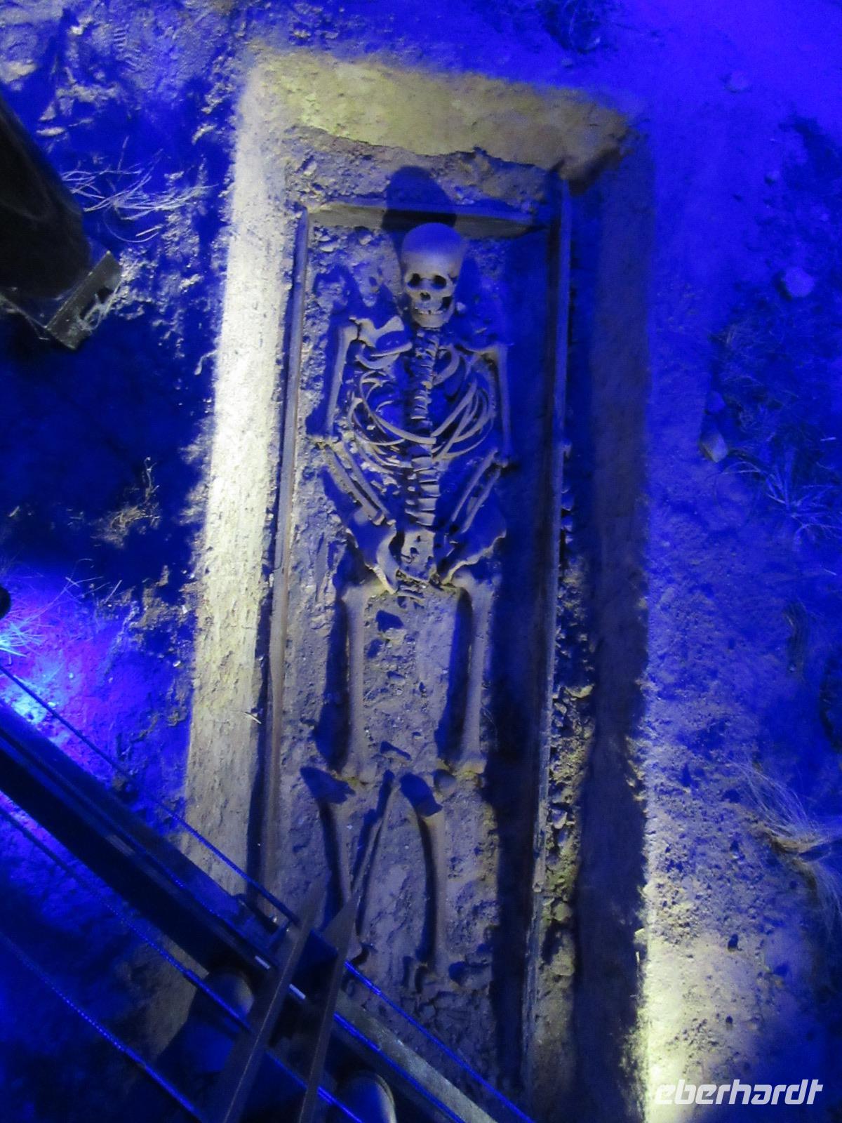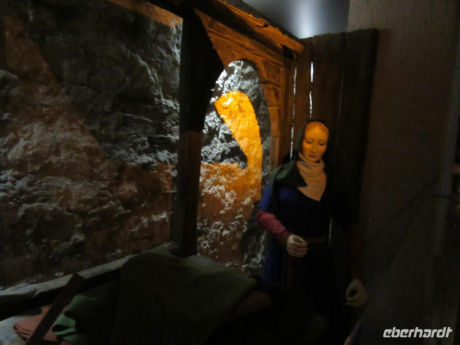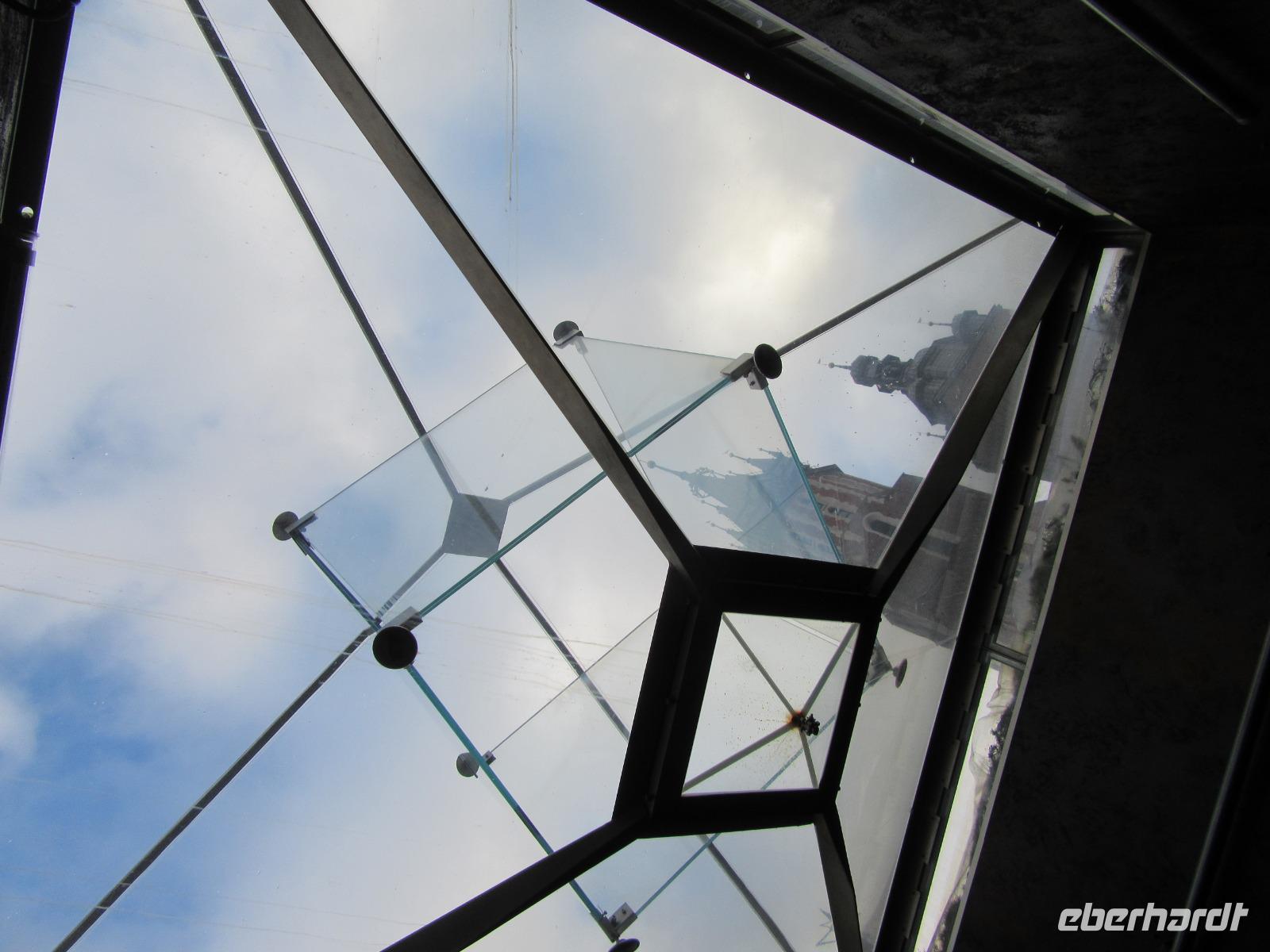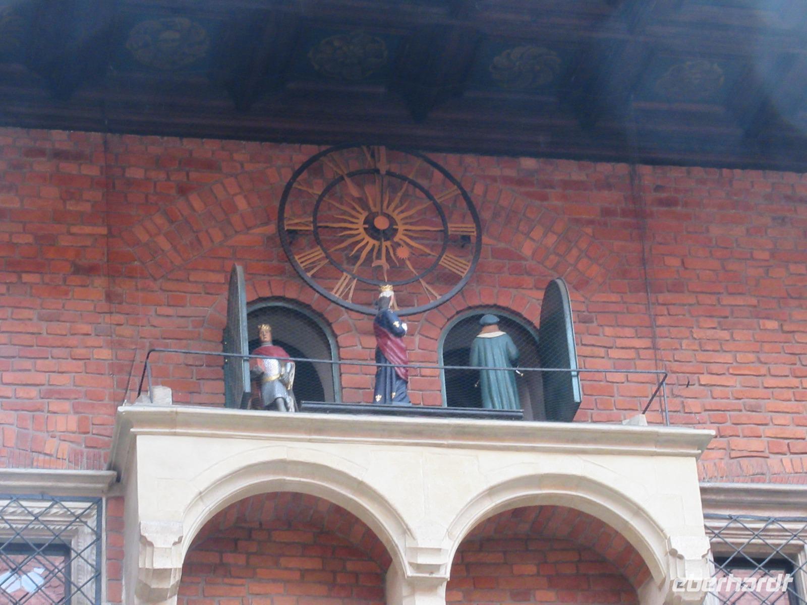 Heute trafen wir am Morgen auf einen anderen örtlichen Reiseleiter, den Christian. Nachdem er uns wieder die Audioguides ausgeteilt hatte, machten wir uns zunächst auf den Weg zum unterirdischen Marktplatz der Stadt. Wir waren einige Minuten früher da und hatten so die Möglichkeit, dem Trompenspiel des Turmes der Marienkirche zu lausch. Immer zur vollen Stunde ist dieser zu hören und mit gutem Auge auch zu sehen.