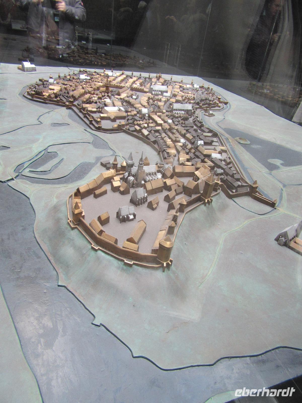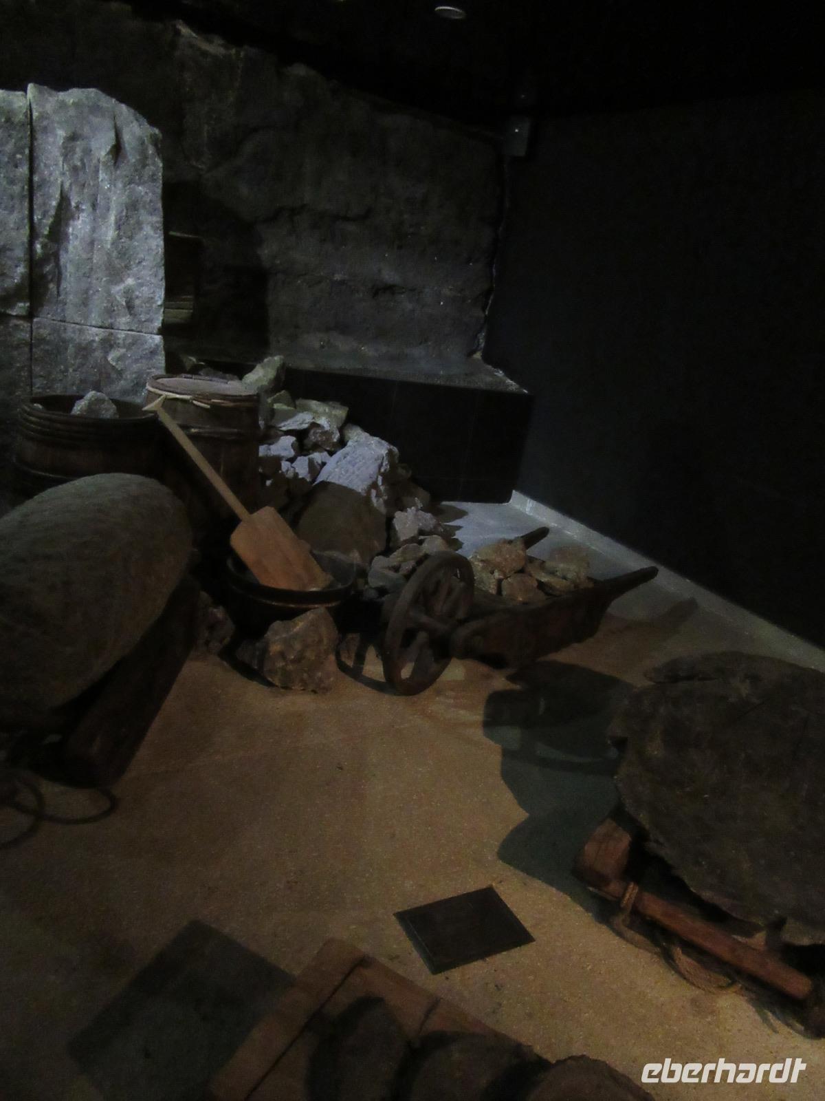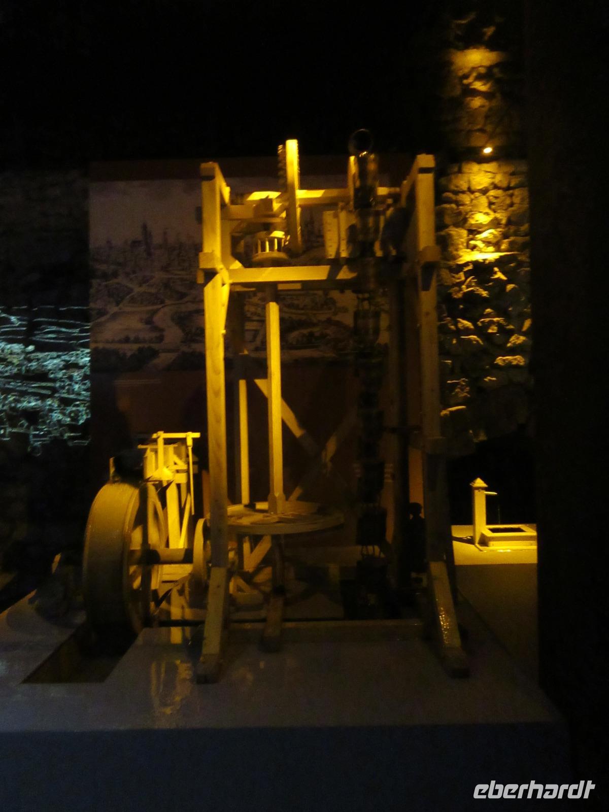 Christian führte uns dann durch die Ausstellung des unterirdischen Markplatzes. Hauptsächlich zwischen 2005 und 2007 fanden dort entsprechende Ausgrabungen statt. Die Führung war sehr interessant, denn ein Großteil war noch erstaunlich gut erhalten, sogar aus dem Mittelalter. Wir sahen alte Mauerstücke, aber beispielsweise auch Schuhe, Schmuck, Werkzeuge und eine Waage oder eine Messlatte. Um das Ganze authentisch darzustellen waren wir von Geräuchen des damaligen Treibens am Markt umgeben. Während der Führung bekamen wir auf verschiedenen Ebenen einen Einblick in die 5000 jährige Geschichte der Stadt.