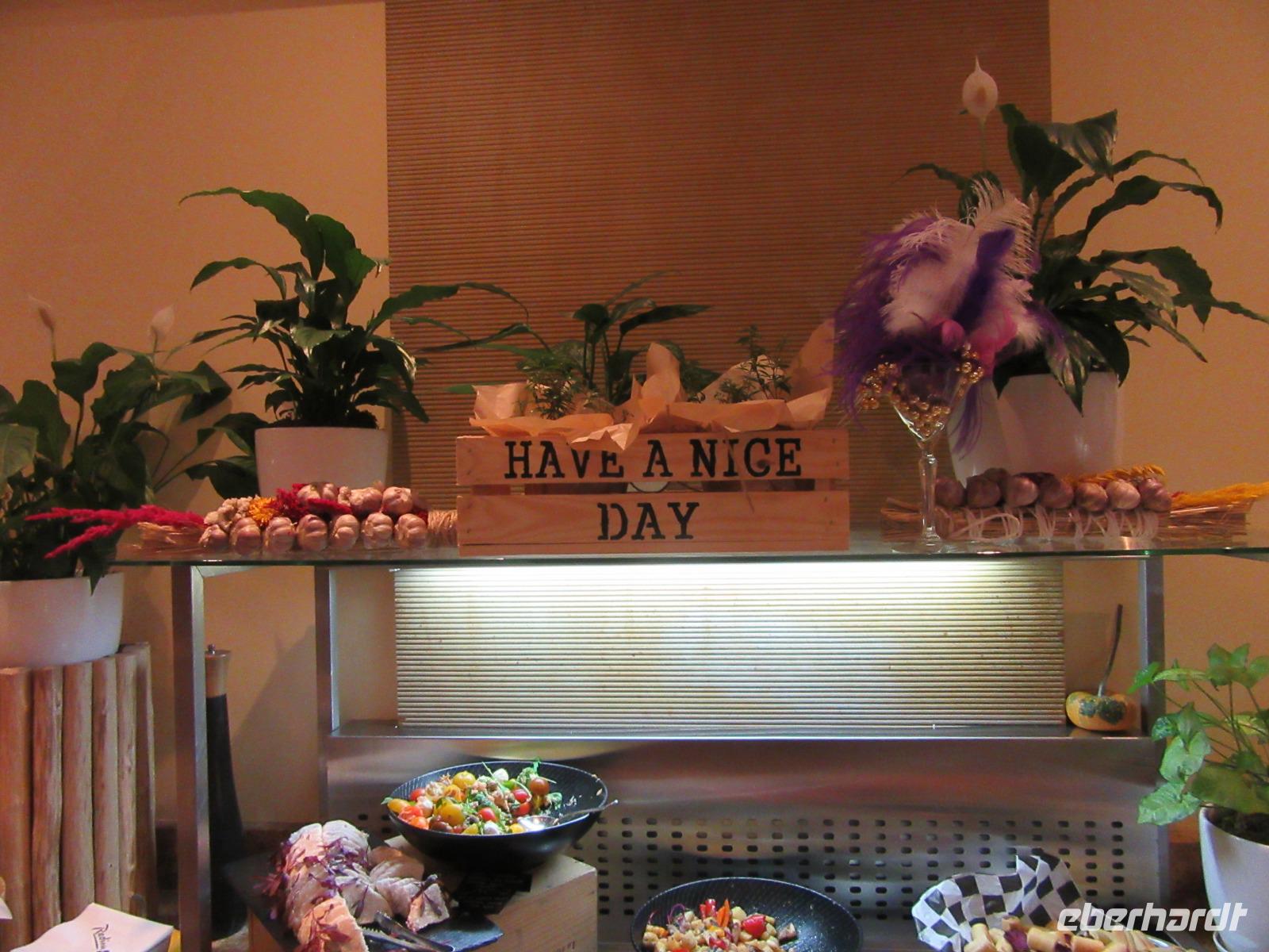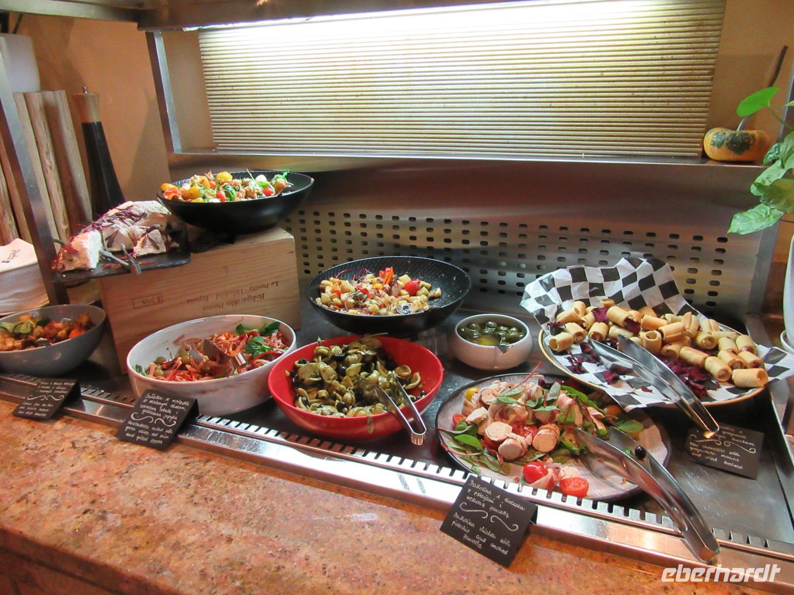 Es war ein großes Buffet vorbereitet. Wir hatten so eine vielfältige Auswahl an verschiedensten italienischen Speisen in zwei Räumen, diese waren auch sehr ansprechend angerichtet. Das Buffet stand uns den ganzen Abend zur Verfügung, sodass wir ausreichend Zeit hatten, vieles zu probieren. Eine Getränkeauswahl war ebenfalls inkludiert, sodass es uns an nichts fehlte.