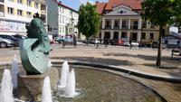 Auf dem Weg zur Jakobuskirche - Jakobus ist der Stadtpatron von Allenstein - haben wir noch kurz am Geburtshaus von Mendelsohn gehalten und dort auch einiges über andere Berühmtheiten, Dichter, Musiker und Maler Masurens gehört. Vor der Freizeit stand noch der Besuch des spätgotischen Bischofsdomes an, wo auch der polnische Papst Woitila gepredigt hat und dort und u.a. in den schweren Eingangstüren verewigt ist.