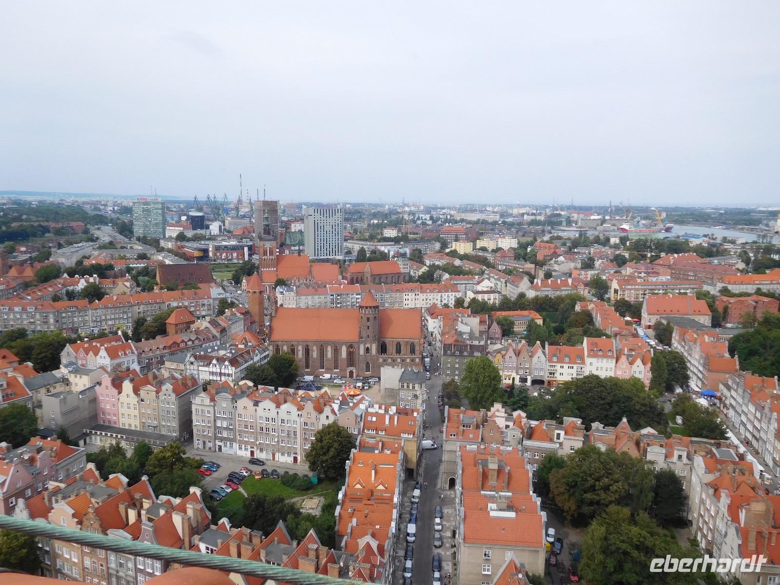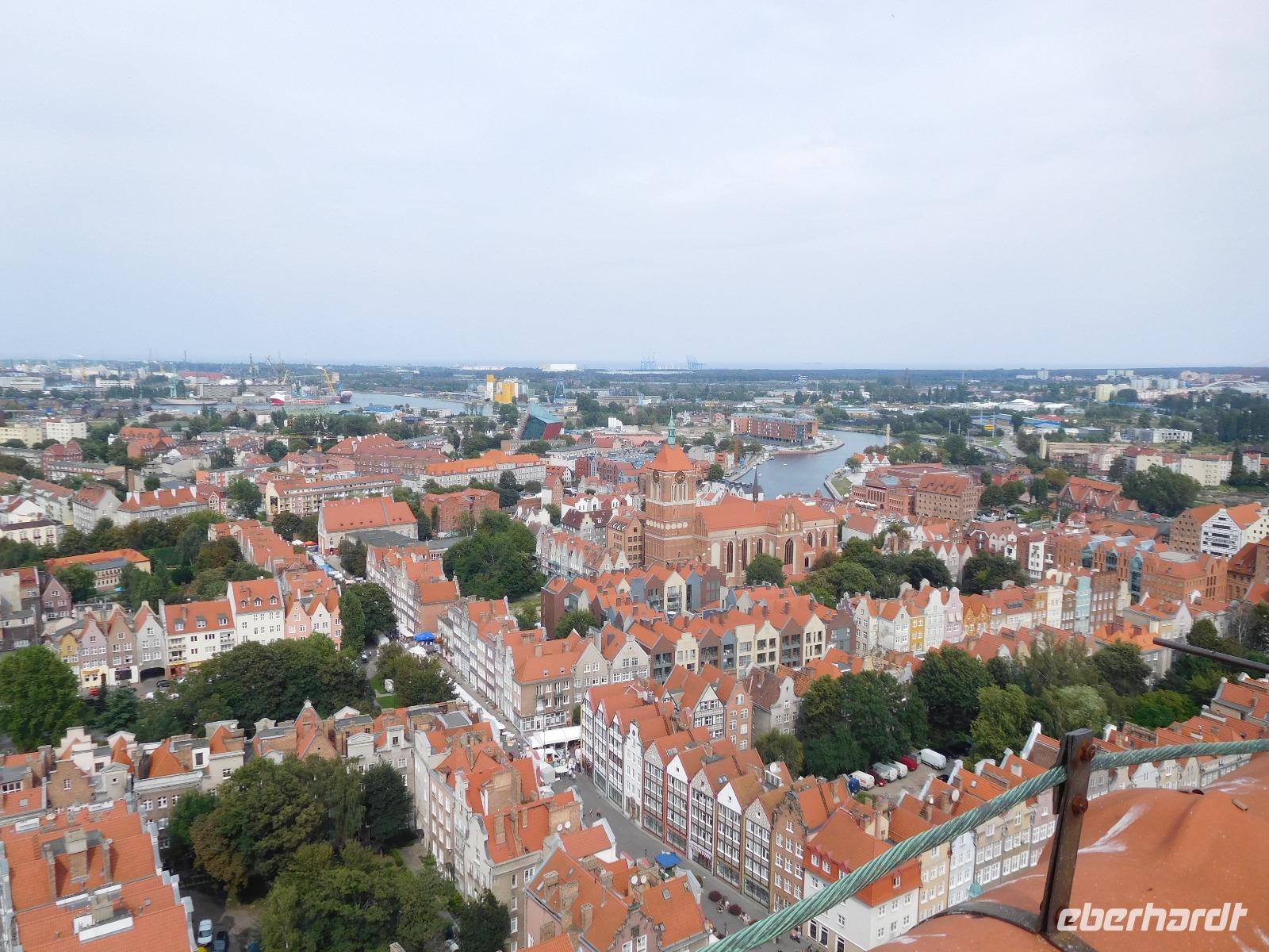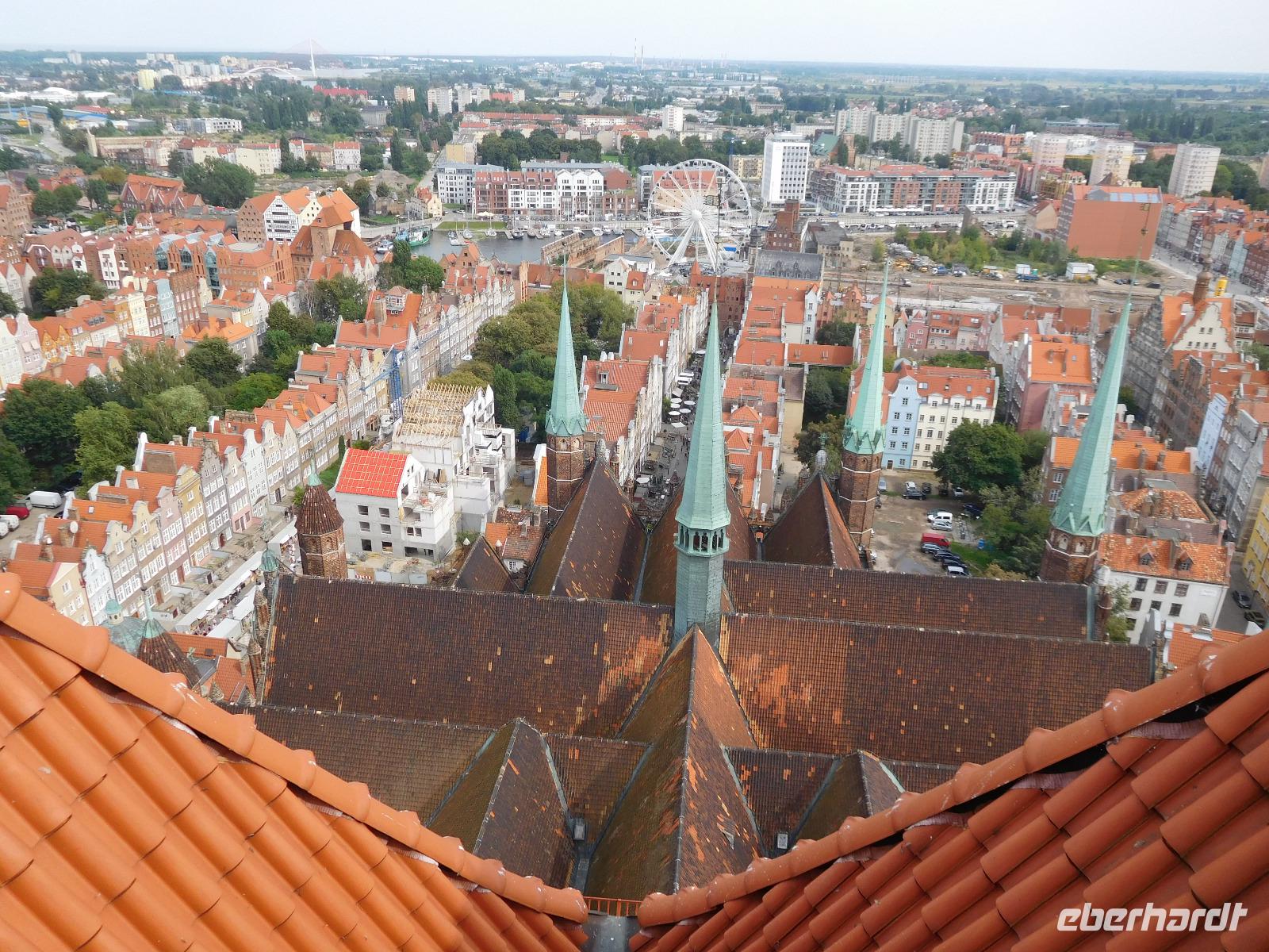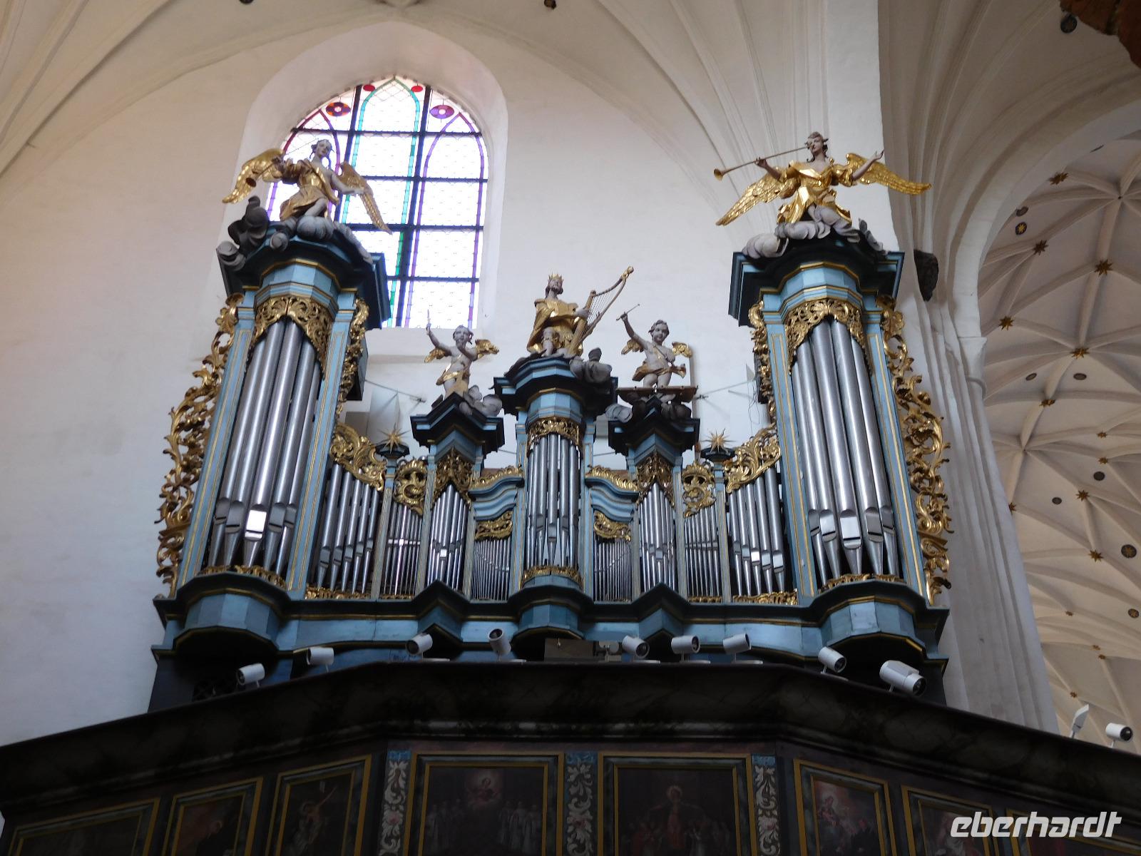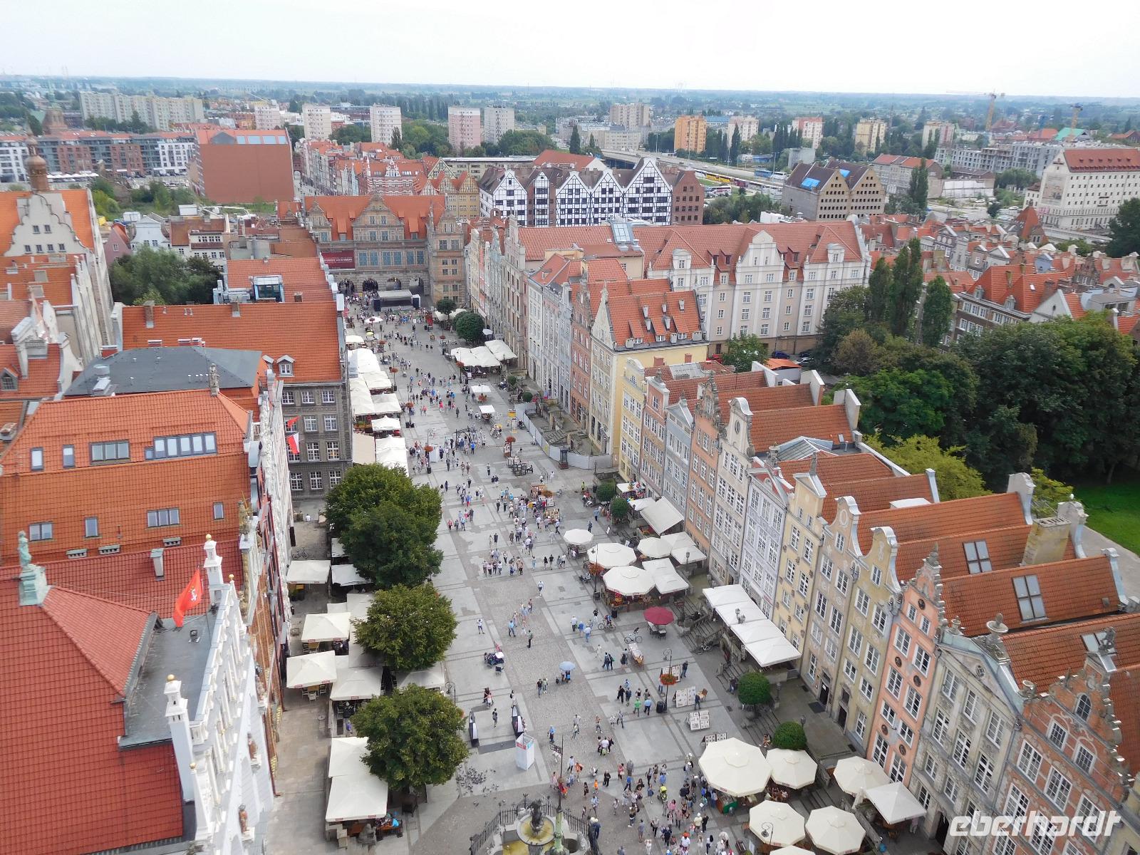 Um 9 Uhr holte uns Stadtführerin Anna vom Hotel ab, um nach Oliwa zum alten Zisterzienserkloster zu fahren. Dort konnten wir eine tolle Orgelpräsentation erleben, die natürlich mit Bach endete. Vorher führte uns Anna durch die Klosterkirche. Anschließend folgte eine ganz hervorragende Stadtführung. Ein Höhepunkt war der Besuch der Marienkirche, die die weltgrößte Backsteinkirche überhaupt ist. Anna hatte die Führung so gelegt, dass wir genau um zwölf Uhr sehen konnten, wie aus der astronomischen Uhr der Kirche aus zwei Türchen die zwölf Apostel und über ihnen die vier Evangelisten kommen und nach tänzerischer Drehung wieder verschwinden. Die Stadtführung führte über den Langen Markt zum Königstor und weiter zum Zeughaus. Die anschließende Freizeit nutzten viele Gäste zu einer Bootsfahrt, entweder zu einer Rundfahrt durch den Hafen und vorbei an der Westerplatte. In der Stadt war zudem besonderer Trubel, weil der Abschluss des dreiwöchigen Dominikanermarktes mit vielen Ständen und Livemusik gefeiert wurde. Eine alpin gestimmte Gruppe erklomm zuerst den Turm des Rathauses, um einmal den massigen Baukörper der Marienkirche in vollem Umfang sehen zu können. Nach kurzer Essenspause dann die über 400 Stufen auf den wuchtigen Turm der Kirche, von der man weit über die Stadt auf Land und Meer schauen konnte. Ein anschließender Rundgang führte zunächst zur gerade restaurierten Johanniskirche und dann zur prächtig ausgestatteten Brigittinnenkirche. Wo einst die Aktivisten der Solidarnosc gebangt und gebetet haben, protzt nun ein Bernsteinaltar.