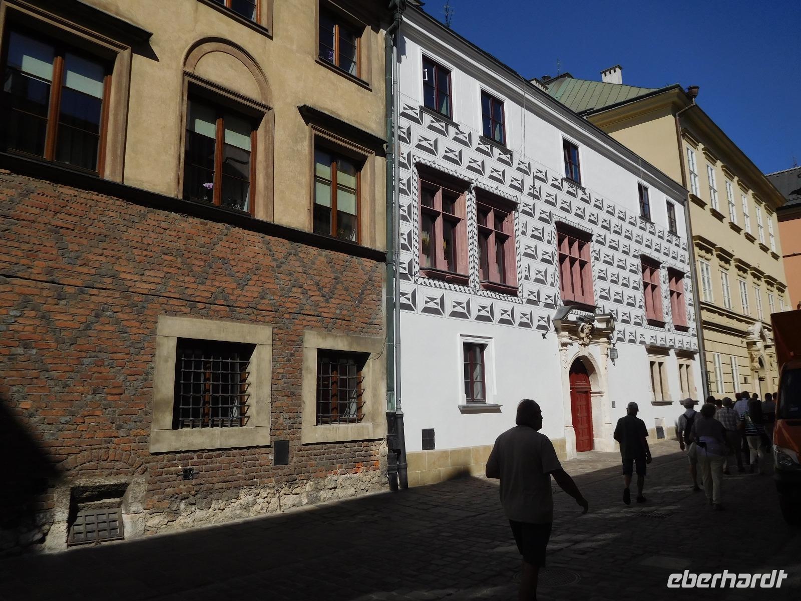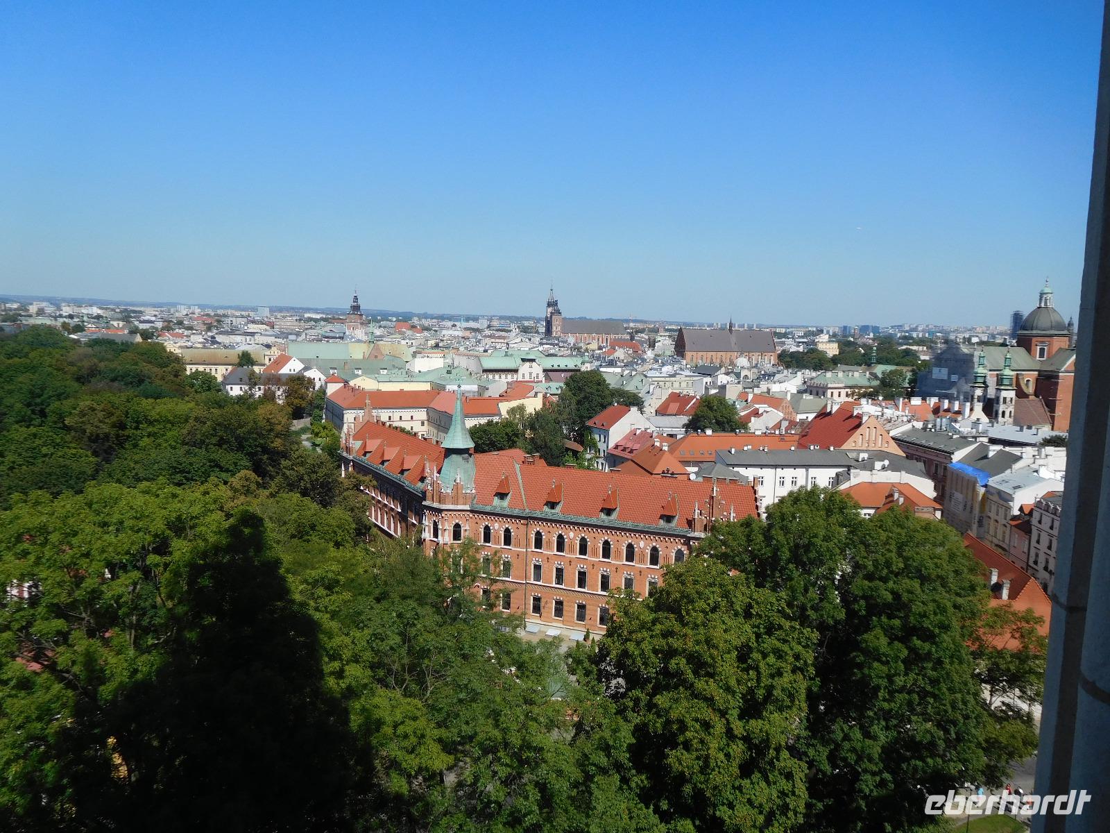 Um 08.30 Uhr war unsere Abfahrt nach Sandomierz, bei der uns Ewa begleitete. Größte Stadt am Weg ist das alte Radom mit seiner reichen jüdischen Geschichte. Das auf einem Steilufer der Weichsel gelegene Sandomierz gehört zu den malerischsten Städtchen in Polen. Neben dem gotischen Rathaus interessierten uns hier die Kathedrale. 25 Kilometer südwestlich liegt das Renaissanceschloss Baranow, das der Italiener Santi Gucci um 1600 für die Magnatenfamilie Leszcynski baute, die ja den vorletzten polnischen König stellte, der allerdings hochbetagt im französischen Exil endete. Am schönsten hier gefiel uns der mit Arkaden geschmückte Innenhof. In einem historisch möblierten Gewölbe wurde vor der Führung durch das Schloss ein so leckeres wie überreichlich dimensioniertes Mahl gereicht. Nach einer Suppe gab es für jeden zehn mit Fleisch gefüllte Piroggen, die nur wenige komplett schafften aufzuessen. So gestärkt ging es weiter nach Krakau, wo wir im Hotel das Abendessen einnehmen konnte. Anschließend schlenderten noch einige durch das abendlich belebte Krakau.