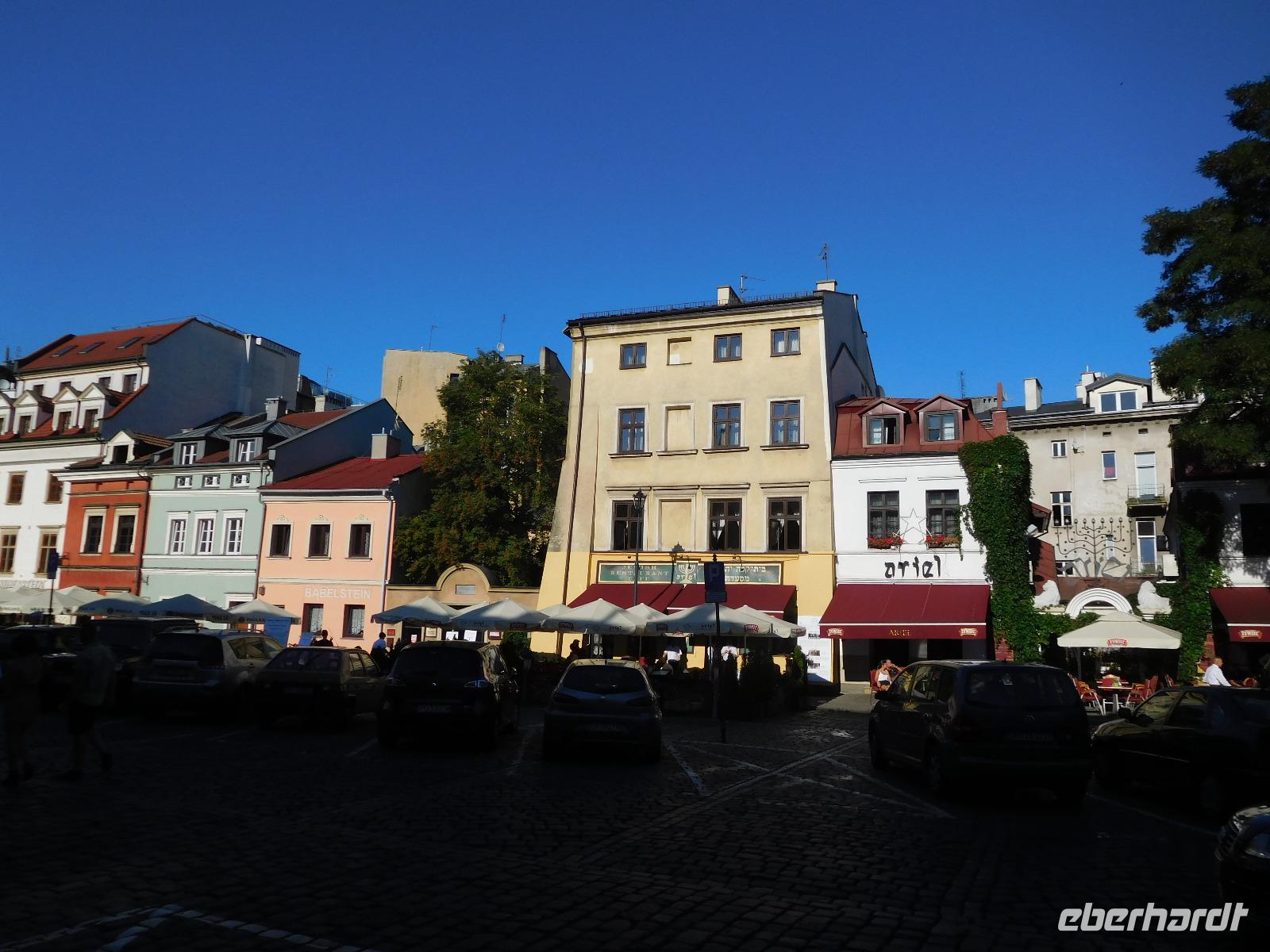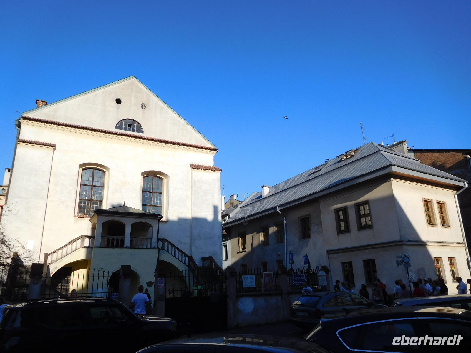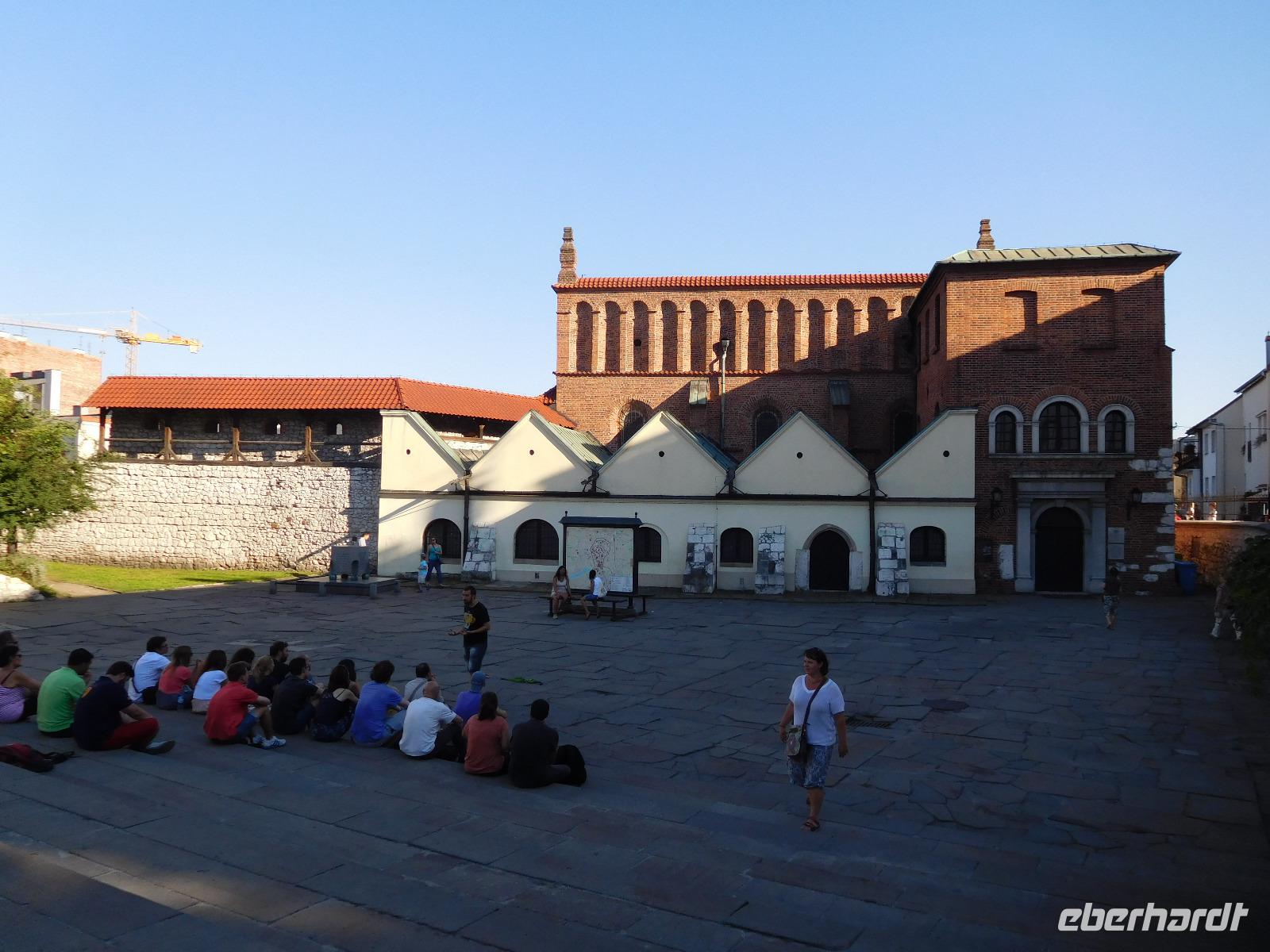 Nach der Freizeit trafen sich um 16 Uhr die meisten Mitreisenden am Hotel, um mit dem Bus ins jüdische Viertel Kazimierz zu fahren. Beginnend bei der Remuhsynagoge mit dem Neuen Jüdischen Friedhof ging es weiter zur Hohen und zur Alten Synagoge. Auch dem katholischen Teil galt ein kleiner Schlenker zur gewaltigen Fronleichnamskirche. Auf dem belebten Hauptplatz von Kazimierz kehrten wir ins Klezmerhois ein, wo uns ein lecker koscheres Menu, sowie ein Musikertrio bestens unterhielt. Um neun brachte uns Busfahrer Alf wieder zum Hotel zurück.