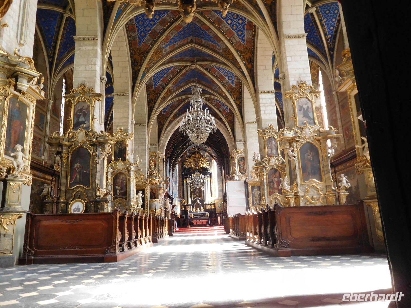 Am Nachmittag fuhren wir bei endlich hellerem und trockenem Wetter zur Kirche des Klosters der Heiligen Linde, die eine wundertätige Marienfigur verwahrt. Der jetzige Barockbau stammt vom Jesuitenorden und der Höhepunkt ist die Orgel, unlängst von der Firma Sauer aus Frankfurt Oder restauriert. Neben einem wunderbaren Klang besitzt sie allerhand mechanische Schaufiguren. Sonnen drehen, Engel schwenken ihr Instrumente oder verneigen sich, Glockenspiele werden bewegt und es gibt ein 41. Register für Vogelstimmen.