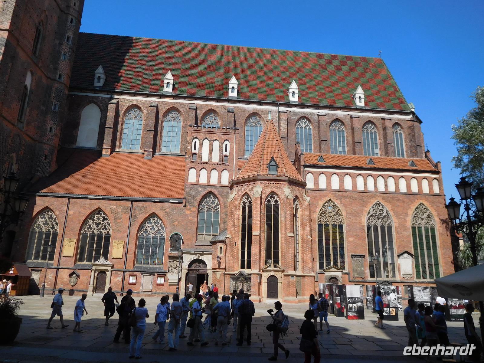 Nach einem reichhaltigen Frühstück holte uns pünktlich um neun Uhr Stadtführerin Nadja im Hotel ab und ganz entspannt schlenderten wir durch die noch ruhige Altstadt von Thorn. Gegründet 1233 vom Deutschen Orden nach Magdeburger Recht findet man sich in den schachbrettartig angelegten Straßen schnell zurecht. Besondere Beachtung erfuhren die Johanniskirche und die gotische Dominikanerkirche mit gut erhaltenen mittelalterlichen Wandmalereien und einem Chorgestühl aus Mooreiche. In der anschließenden Freizeit konnten alle noch die gleichzeitig mittelalterlich wirkende und doch so junge Stadt erkunden.