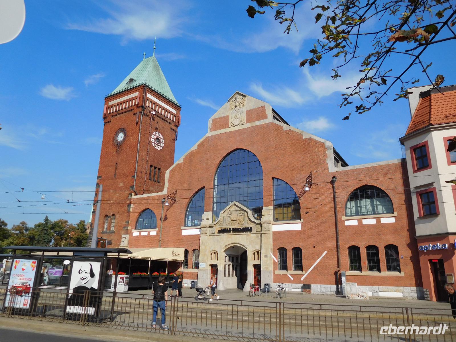 Als Bollwerk gegen den in Breslau praktizierten protestantischen Glauben wurde die Jesuitenanstalt von Kaiser Leopold gestiftet, quasi als katholischer Stachel im evangelischen Fleisch. Von hier spazierten wir zur Dominsel und Monika erklärte im Dom dessen Geschichte und Ausstattung, die teilweise aus anderen Kirchen stammt, weil der Dom mehrfach große Zerstörungen zu erleiden hatte, letztmalig im Zweiten Weltkrieg, wie uns erschütternd eindringliche Fotos zeigten. Weiter ging es zur Sandinsel mit der riesigen Marienkirche, in der viele gotische Altäre aus anderen Kirchen museumsgerecht aufbewahrt und präsentiert werden. Es folgten das Ossolineum, in dem ehemals die Kreuzherren residierten. Gegenüber von mehreren gotischen Kirchen gefiel die historische Markthalle.