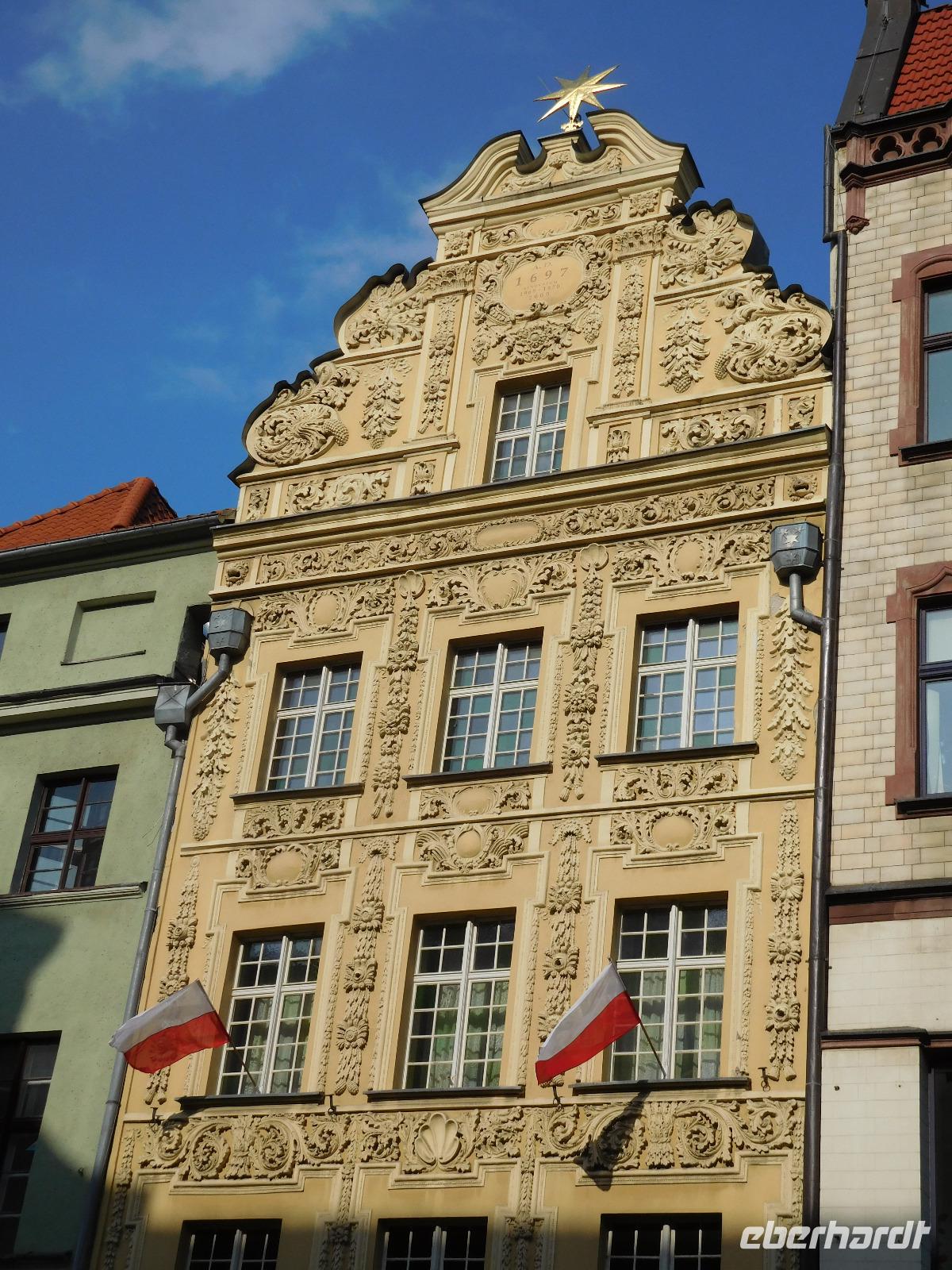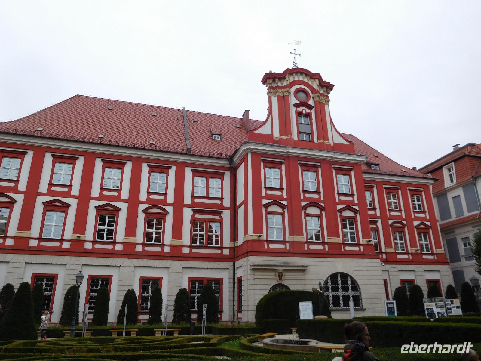 Obwohl wir recht früh in Krakau aufbrachen, verzögerte sich wegen mehrerer Staus unsere Ankunft in Breslau bis 15 Uhr, doch konnten wir dadurch gleich in unserem Hotel die Zimmer beziehen. Das Hotel lag neben der Dominikanerkirche und direkt an einem nach dieser Kirche benanntem Einkaufszentrum mitten in der Stadt und nur fünf Minuten Fußweg vom Hauptmarkt entfernt. Unsere Stadtführerin Malgorzata erwartete uns bereits in der Lobby mit den Headsets. Mit ihr schlenderten wir durch die Ohlauer Straße mit den Bauten der Breslauer Moderne, wie dem berühmten Kaufhaus Petersdorff von Erich Mendelsohn zum Rynek, wo wir neben den prächtigen Bürgerhäusern das gotische Rathaus und die Elisabethkirche besichtigten. Eine nette Besonderheit sind die kleinen bronzenen Zwerge, die allerorten zu finden sind. Erfunden als humoristische Art des Protestes gegen unliebsame Zustände sind die neueren oft kommerzieller Natur, weil von Unternehmen oder Geschäftsleuten für ihre Niederlassung bestellt und bezahlt. Anschließend konnten wir in der alten Breslauer Universität Leopoldina die Gebäude des ab 1659 entstandenen Jesuitenklosters anschauen, vor allem im Collegium Maximum die prächtige Aula Leopoldina, die noch Ende dieses Jahres komplett im ursprünglichen Glanz erstrahlen soll. Vorbei am Ossolineum, in dem die aus Lemberg stammenden Schätze des alten Polens bewahrt werden, ging es weiter zur Dominsel mit der Kathedrale des heiligen Johannes des Täufers, der auch im Stadtwappen Breslaus zu finden ist. Der im Krieg stark beschädigte Dom wurde zwar bis 1951 wieder aufgebaut, die Wölbung allerdings mit Stahlbeton. Ohnehin haben wir die wertvollsten Stücke der Ausstattung der Breslauer Kirchen, allen voran der Elisabethkirche, im Warschauer Nationalmuseum bewundern dürfen. Die Domorgel ist ein Fragment der ehemals weltgrößten in der Jahrhunderthalle. Hinter dem Dom steht die kleine Ägidienkirche, die älteste der Stadt und noch romanisch. Neben ihr auf einem Torbogen prangt ein steinerner schlesischer Knödel, zu dem es natürlich eine Legende zu erzählen gab. Von der Dominsel ging es vorbei am Breslauer Nationalmuseum und am Panorama der Raclawice- Schlacht von 1794 zurück zum Hotel. Nach der freien Zeit traf sich die Gruppe wieder im kaiserlich- königlichen Lokal direkt am Markt, wo in stilvollem Ambiente das letzte gemeinsame Abendessen der Reise zelebriert wurde.