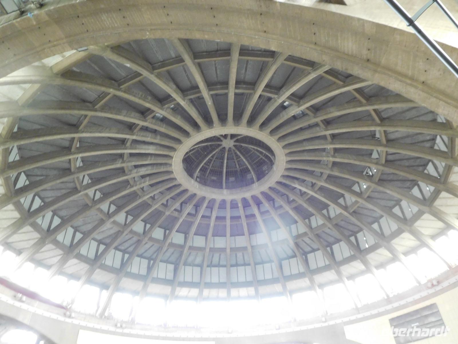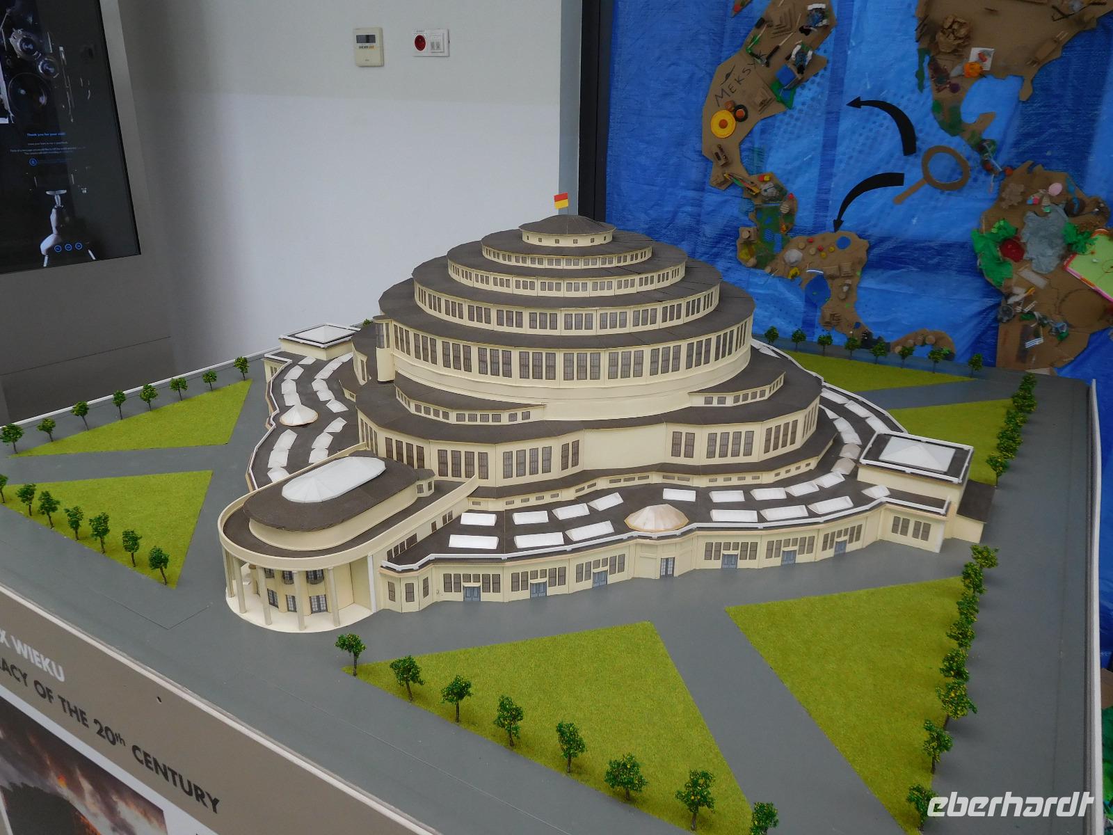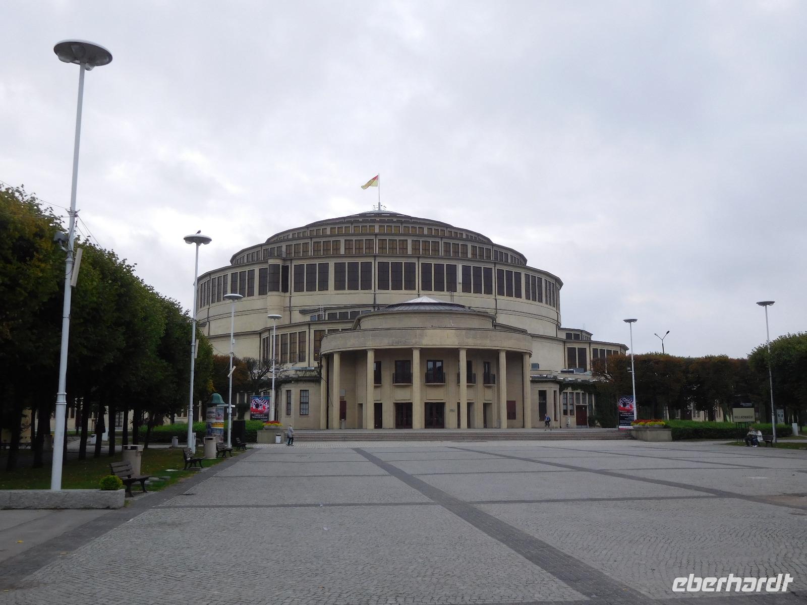 Nach dem Frühstück war um halbzehn die letzte Abfahrt der Tour angesagt und wir fuhren zunächst zum Scheitniger Park. Seit 1904 gab es den Plan einer Kongresshalle mit Ausstellungsgelände, 1910 wurde das Projekt ausgeschrieben und von Stadtbaurat Max Berg sich selber und seinem Team anvertraut. Die Halle war mit 130 Metern Durchmesser die größte Stahlbetonkonstruktion ihrer Zeit und erstmal wurde von einer frei tragenden Kuppel mit einem Durchmesser von 65 Metern der Durchmesser der Kuppel des Pantheons in Rom übertroffen. Zum 100. Jahrestag der Völkerschlacht bei Leipzig wurde die Halle mit großem Pomp eingeweiht. Vor der Halle ragt inmitten ägyptisierender Säulen eine 96 Meter hohe Stahlnadel auf, die 1948 für die erste polnische Nachkriegsausstellung errichtet wurde. Zur Freude der Gäste spendierte Eberhardt Travel als zusätzliche Leistung den Eintritt in die Jahrhunderthalle und in das dazu gehörige Museum, das aus Anlass des 100. Geburtstages der Halle und des bevorstehenden Jahres der Kulturhauptstadt Breslau 2016 ganz neu erstellt wurde. In einem aufwändig produzierten Film konnte man die Geschichte der Halle verfolgen.