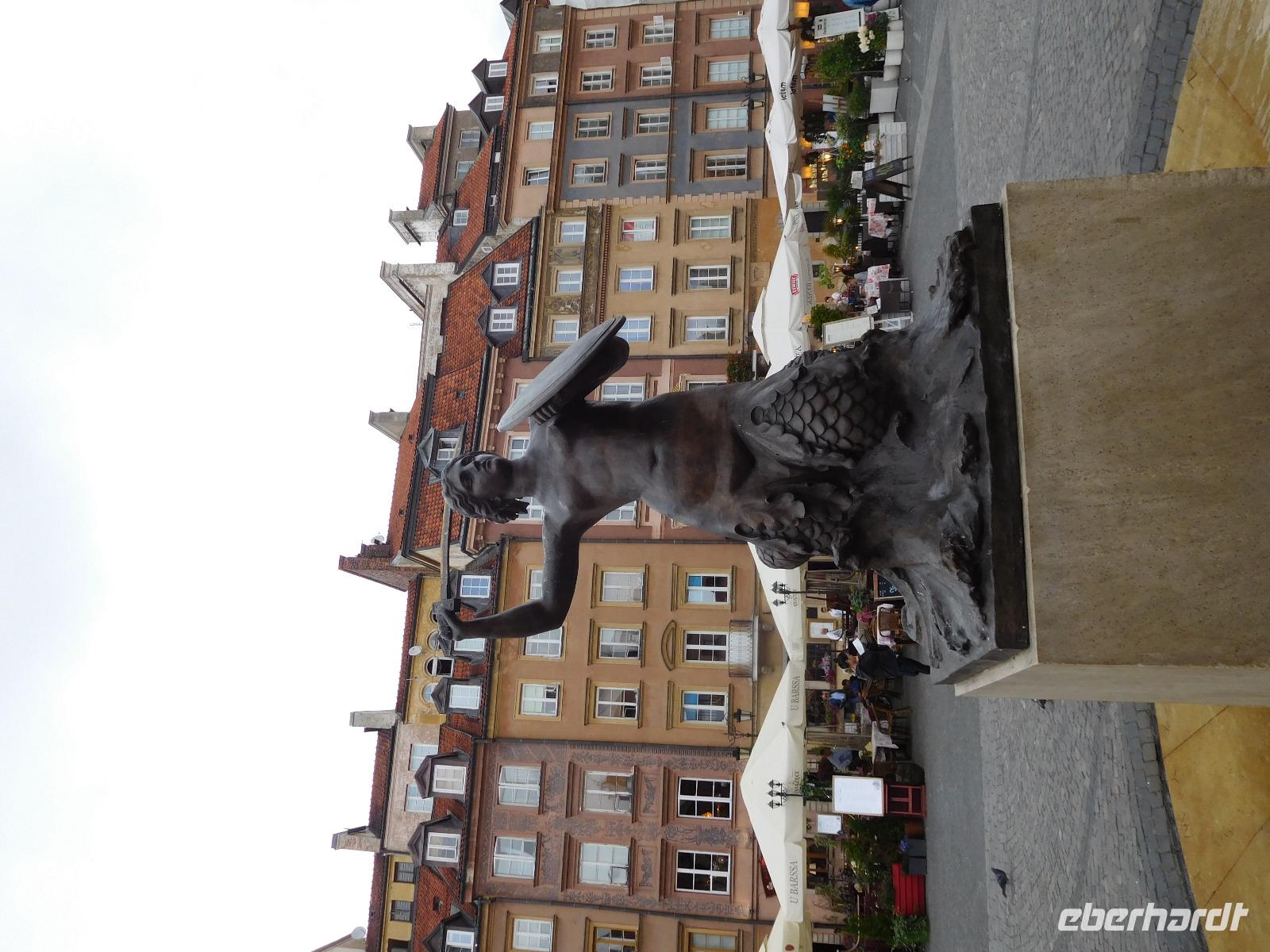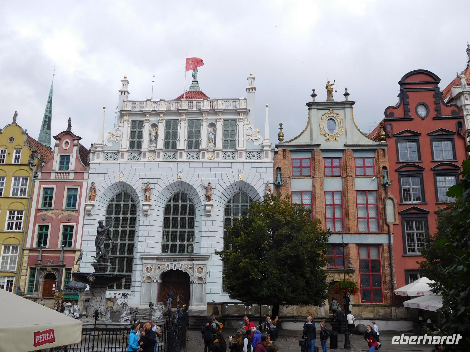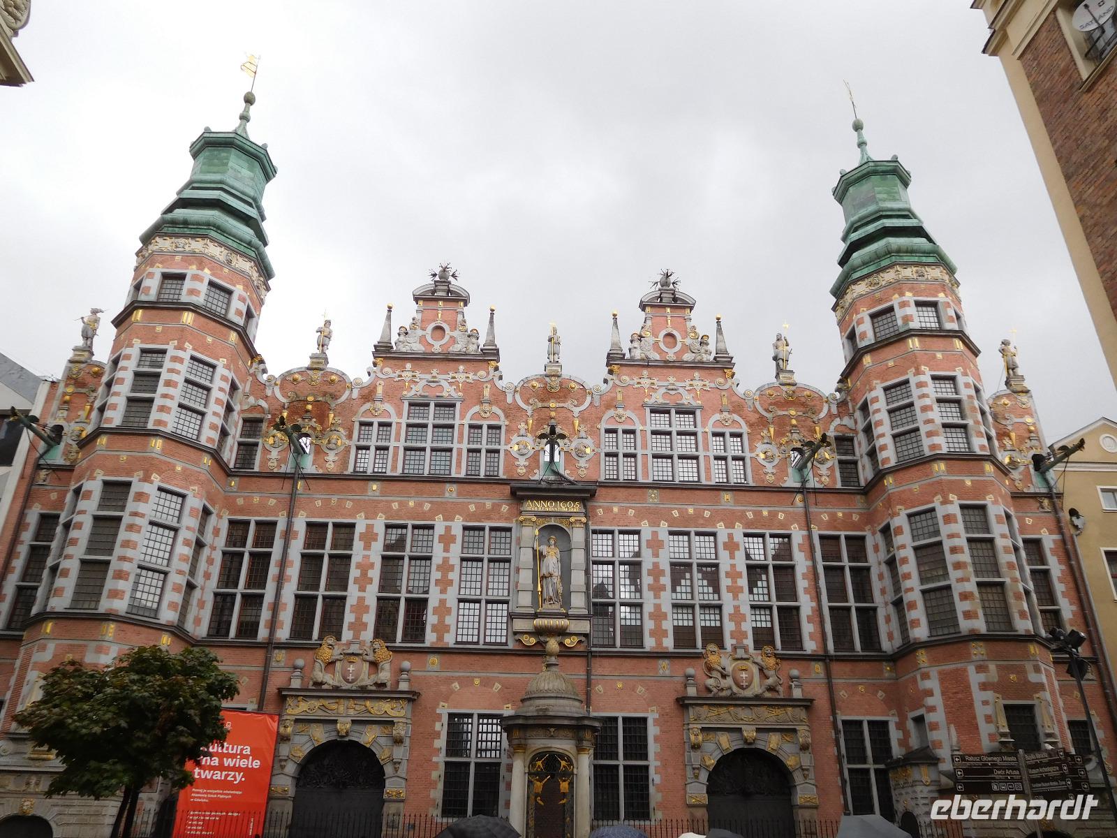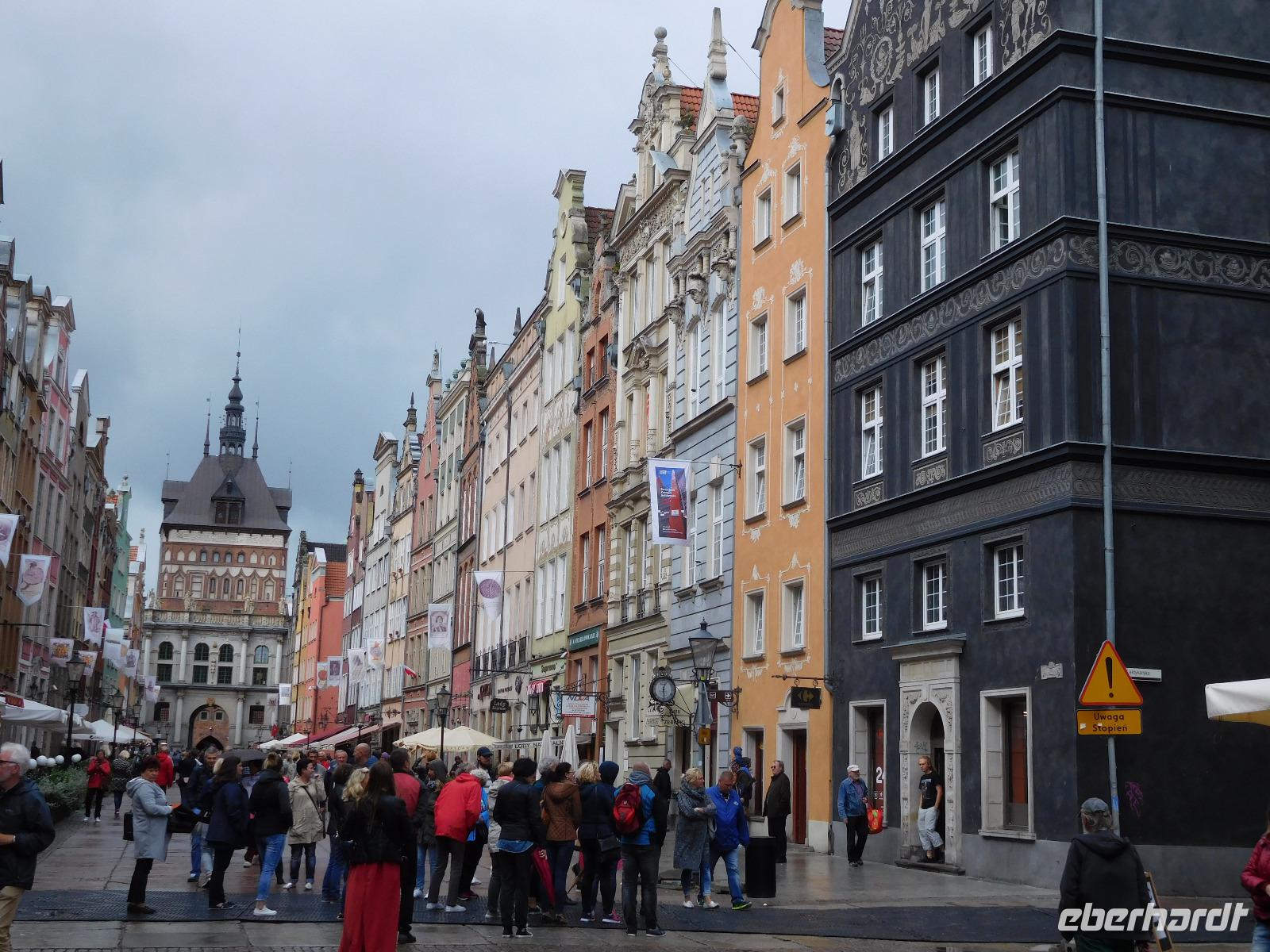 Die Marienburg ist einmalig in ihrer Ausdehnung am Fluß Nogat, der unweit in die Weichsel mündet. Und noch immer stoßen Archäologen auf weitere Grundmauern von Vorburgen und Wirtschaftshöfen. Jedes Jahr kommen neue Bauten oder Teile davon hinzu. Im Keller dann die schönsten gotischen Altäre und Skulpturen, sehr gut präsentiert und ausgeleuchtet. Nach der Führung konnte man sich noch weitere Details ansehen oder rittermäßig rustikal im Zelt speisen, bevor es zur Königin der Hanse nach Danzig ging.