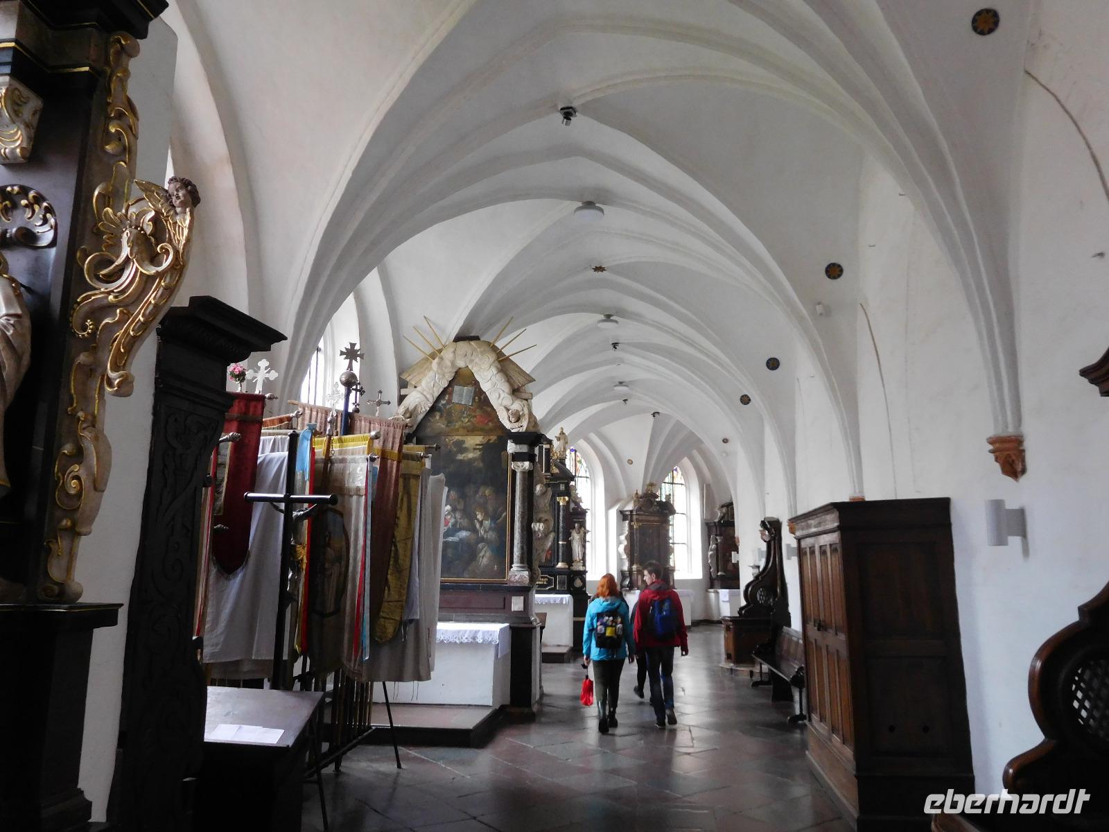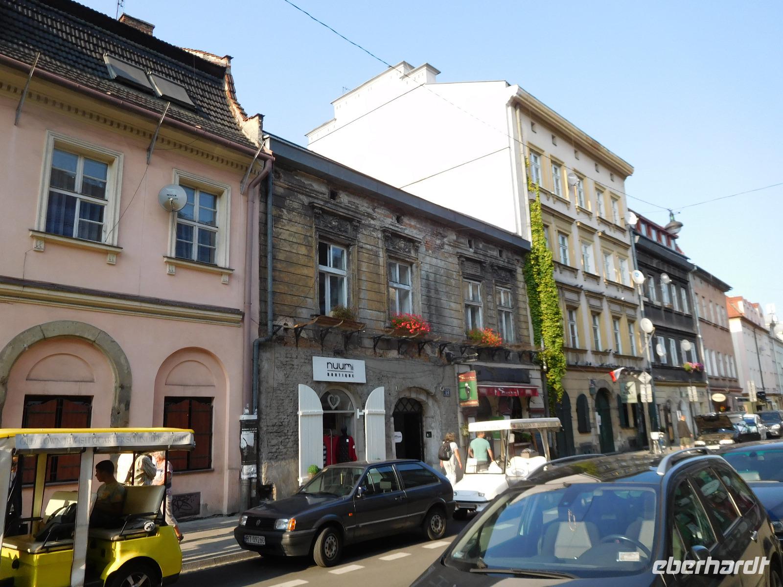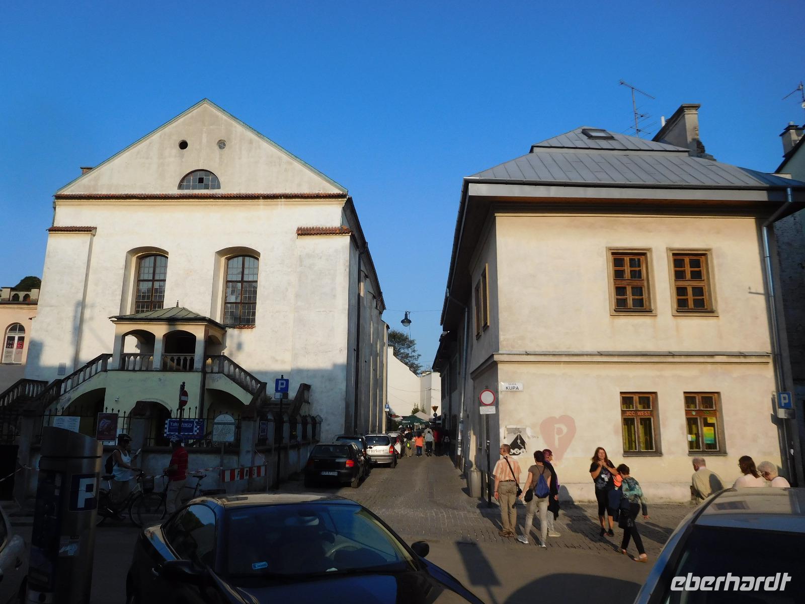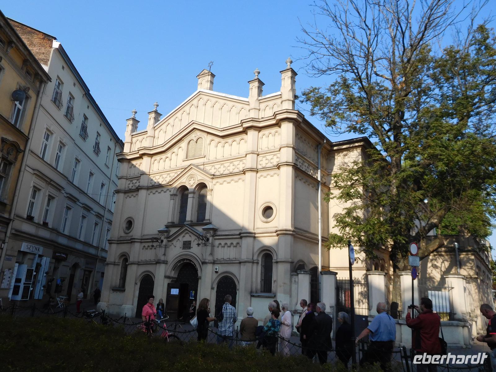 Nach diesem künstlerischen Höhepunkt hatten alle Gäste Freizeit und die meisten trafen sich am Nachmittag im Hotel zur Besichtigung des jüdischen Viertels in der ehemals autarken Stadt Kazimierz. Hier zeigte uns Ela mehrere pittoreske Örtlichkeiten, an denen auch Teile des Films „Schindlers Liste" gedreht wurden. Wir besichtigten mehrere Synagogen, das Rathaus, sowie die gotische Fronleichnamskirche der Chorherren vom Lateran, deren Ausstattung allerdings dem Barock verpflichtet ist. Im Restaurant „Klezmer Hois", das in einer ehemaligen Mikwe, einem rituellen Bad untergebracht ist, konnten wir bei entsprechender Livemusik ein stimmungsvolles Abendessen genießen.