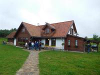 Unsere örtliche Führerin Janina holte uns vom Hotel ab und wirfuhren sofort nach Rastenburg. Die vom Deutschen Orden gegründete Stadt wird von der monumentalen Kirche dominiert, die wie eine Burg mit zwei mächtigen quaderförmigen Türmen auf dem höchsten Punkt gebaut wurde. Am Fuß dieser Gottesburg liegt die gut erhaltene Ordensburg, die heute ein Museum birgt. Wir durchquerten den Ort, sahen auch das Rathaus mit dem Stadtwappen, einem Bär unter drei Fichten, und fuhren durch dichte Waldgebiete zur Wolfsschanze, dem ehemaligen Hauptquartier der nationalsozialistischen Heeresleitung unter Führung von Hitler. Auf dem Weg lag das Örtchen Karlshof, wo sich eine der bedeutendsten psychiatrischen Heilanstalten Ostpreußens befand. Als die Organisation Todt unweit von dort den Bau der Wolfsschanze beschlossen hatte, bedeutete dies das Aus für die Insassen und der gesamte Gebäudekomplex wurde requiriert. Ein Stück weiter liegt mitten im Wald das von der Wehrmach beim Abzug gesprengte Areal der Wehrmachtsführung. Dem Stabsoffizier Stauffenberg misslang am 20. Juli 1944 hier ein Attentat auf Hitler, woraufhin viele Beteiligte verhaftet und nach einem Schauprozess hingerichtet wurden. Zu den Verschwörern zählten auch Angehörige alter ostpreußischer Familien, wie den Dönhoffs. Herr Jaroslaw, der sich seit Jahrzehnten mit der Region beschäftigt, über die er auch mehrere Bücher veröffentlicht hat, erwartete uns auf dem Parkplatz und erläuterte Geschichte und Topografie des Geländes. Anschließend konnte man bei ihm seine auch deutsch publizierten Bücher erwerben.