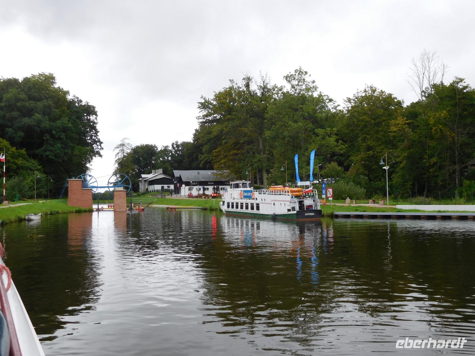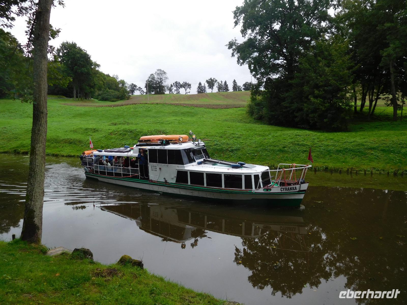 Um neun Uhr verließen wir Danzig in Richtung Osten und vorbei am frischen Haff ging es auf einer gigantischen Großbaustelle entlang bis Elbing, wo wir auf die Schnellstraße nach Warschau abbogen, um bald bei Buchwalde an den Oberländischen Kanal zu gelangen. Nachdem wir uns ein wenig die Beine vertreten konnten, gab es zur Begrüßung einen Kräuterwodka und wir bestiegen das Ausflugsboot Cyranka, zu deutsch Entlein, mit dem wir über die vier spektakulären und berühmten Schienenwege Richtung Elbing zurück fuhren.
