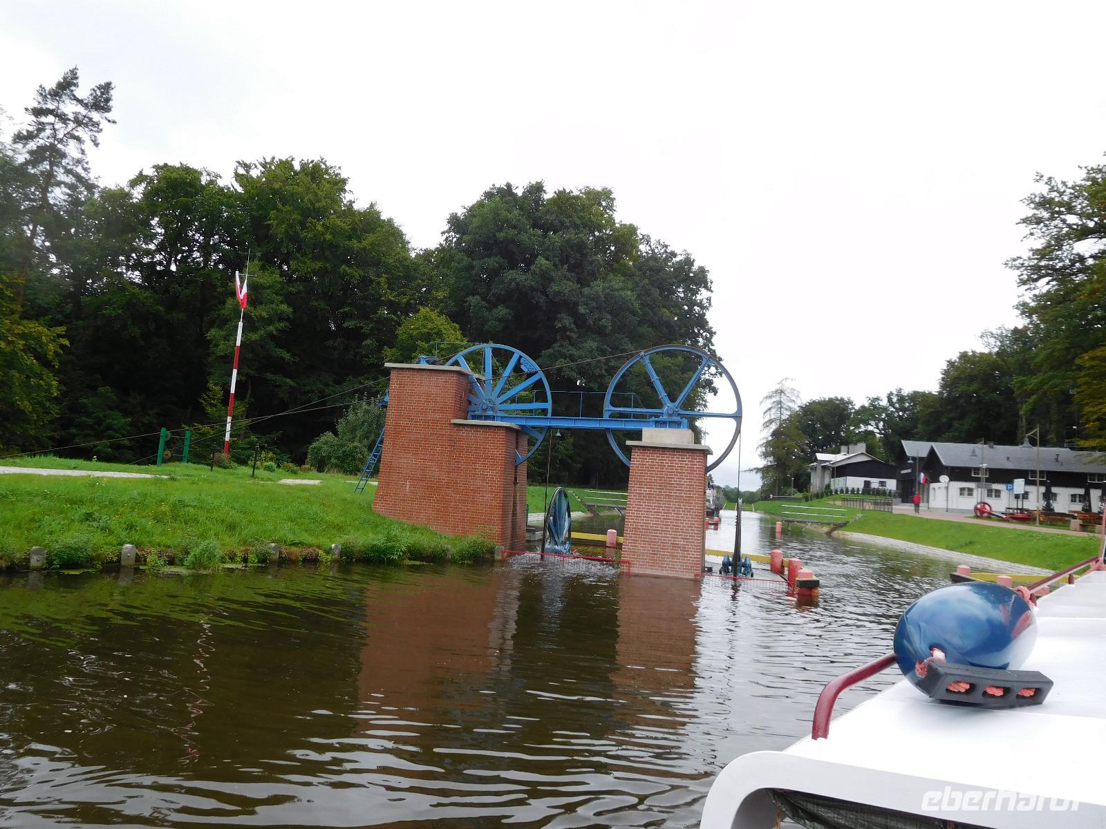 Unsere Fahrt gestaltete sich recht kurzweilig, weil immer wieder interessante Informationen über den Kanal und die passierten Orte geliefert wurden. Dann gab es zum Mittagessen riesige Krakauer Würste mit Gurke und anschließend konnte man noch Kuchen essen. Natürlich fehlten auch nicht typisch polnische hochgeistige Getränke, mit denen das Personal herumkam.