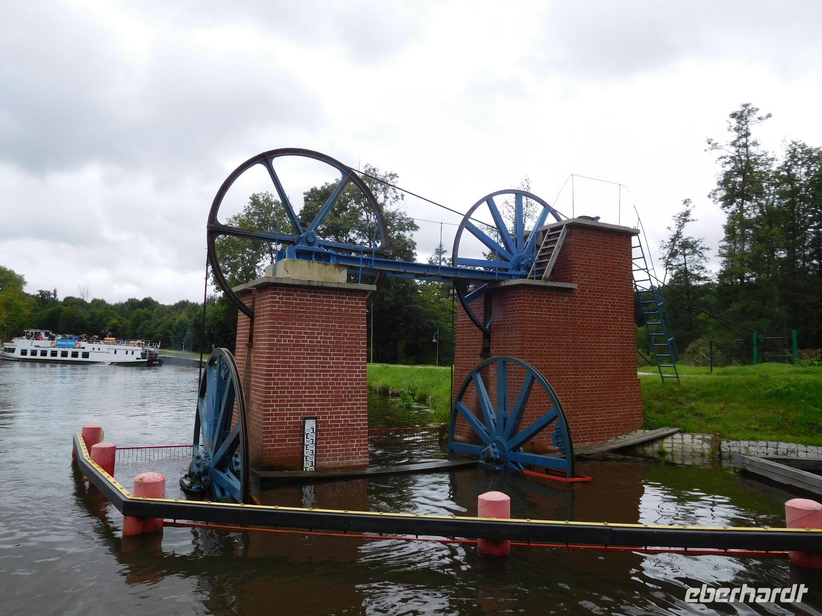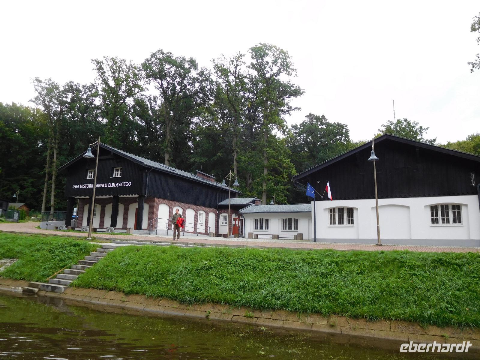 Nach langen Diskussionen bei Parlament und Krone konnten sich die Großgrundbesitzer erst bei König Friedrich Wilhelm IV. mit dem Projekt eines Kanals zum Transport ihrer Produkte, vor allem Holz und Getreide, durchsetzen. Von 1844-60 wurde unter Leitung des Königsberger Wasserbaumeisters Georg Steenke von Elbing bis Osterode der Kanal gebaut, was einer Strecke von 87 Kilometern entspricht. Auf dem relativ kurzen nicht einmal zehn Kilometer langem Abschnitt zwischen Buchwalde und Kussfeld müssen insgesamt fast einhundert Höhenmeter überwunden werden, was mit Schleusen zeitraubend und unwirtschaftlich gewesen wäre. Deshalb baute man auf fünf geneigten Ebenen Schienen, auf denen ein Rollwagen die Schiffe aus dem Wasser über die Ebene ziehen kann. Als Gegengewicht fungiert ein in Gegenrichtung fahrendes Schiff oder wenn dies nicht vorhanden, Gewichte. Täglich befuhren zwischen zehn und 57 Schiffe den Kanal, aber seit dem Bau einer Eisenbahnstrecke 1893 sank die Auslastung stetig, weshalb man immer mehr auf eine touristische Nutzung umschwenkte. Im Zweiten Weltkrieg wurde der Schiffsverkehr eingestellt und 1948 nach einigen Reparaturen wieder aufgenommen. 1992 übernahm die Stadt Osterode den Verkehr, seitdem befahren jährlich vom ersten Mai bis Ende September mehr als dreißigtausend Gäste das einmalige Industriedenkmal.