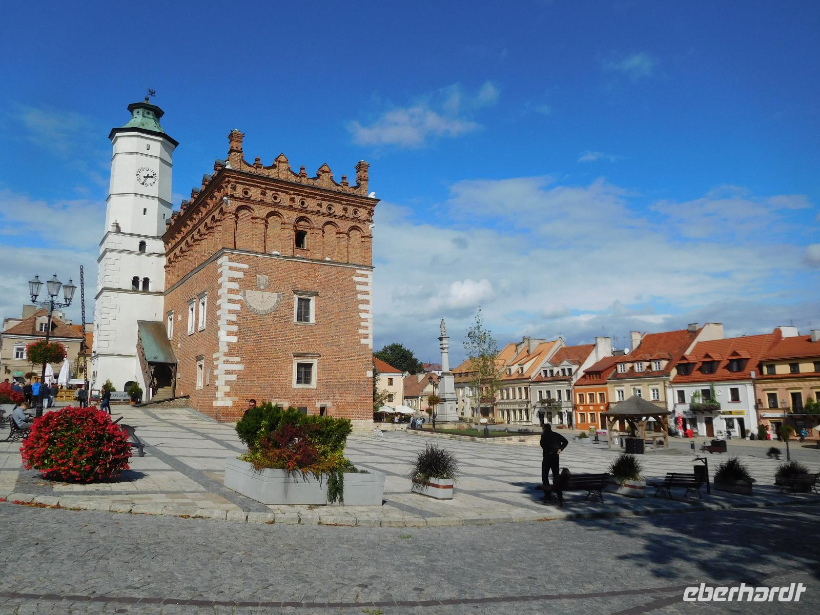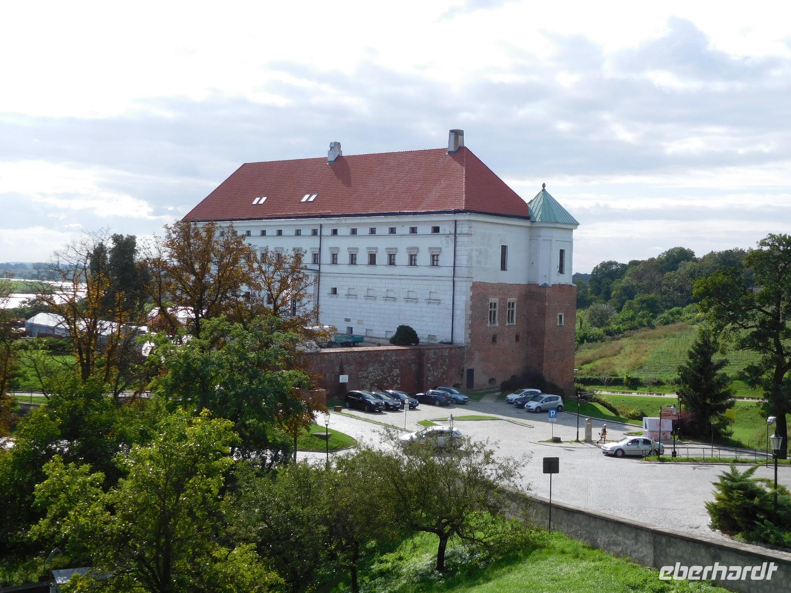 Nach dem Frühstück fuhren wir parallel zur Weichsel in das malerisch über dem Fluß gelegene Sandomierz, wo wir im Restaurant Sarmacka zu Mittag speisten. Anschließend zeigte uns Stadtführerin Dorota die im 16. Jahrhundert durch den Getreidehandel reich gewordene Stadt, die mit einem unterirdisch gelegenen mittelalterlichen Kellersystem wirbt. Seit einigen Jahren ermittelt hier der populäre Fernsehpater Matthäus, sozusagen ein polnischer Pater Brown. Vom Opatowtor nahe beim Benediktinerinnenkloster gingen wir über den Markt mit seinem Renaissancerathaus zur mächtigen gotischen Kathedrale und von da über da hinunter zur Weichsel, wo unser Bus wartete, um den Rest der Strecke nach Krakau zu bewältigen. Dort angekommen konnten wir umgehend die Hotelzimmer beziehen und der Reiseleiter brachte einige Gäste in die Altstadt zu einem Chopinkonzert eines vielfach ausgezeichneten Pianisten.