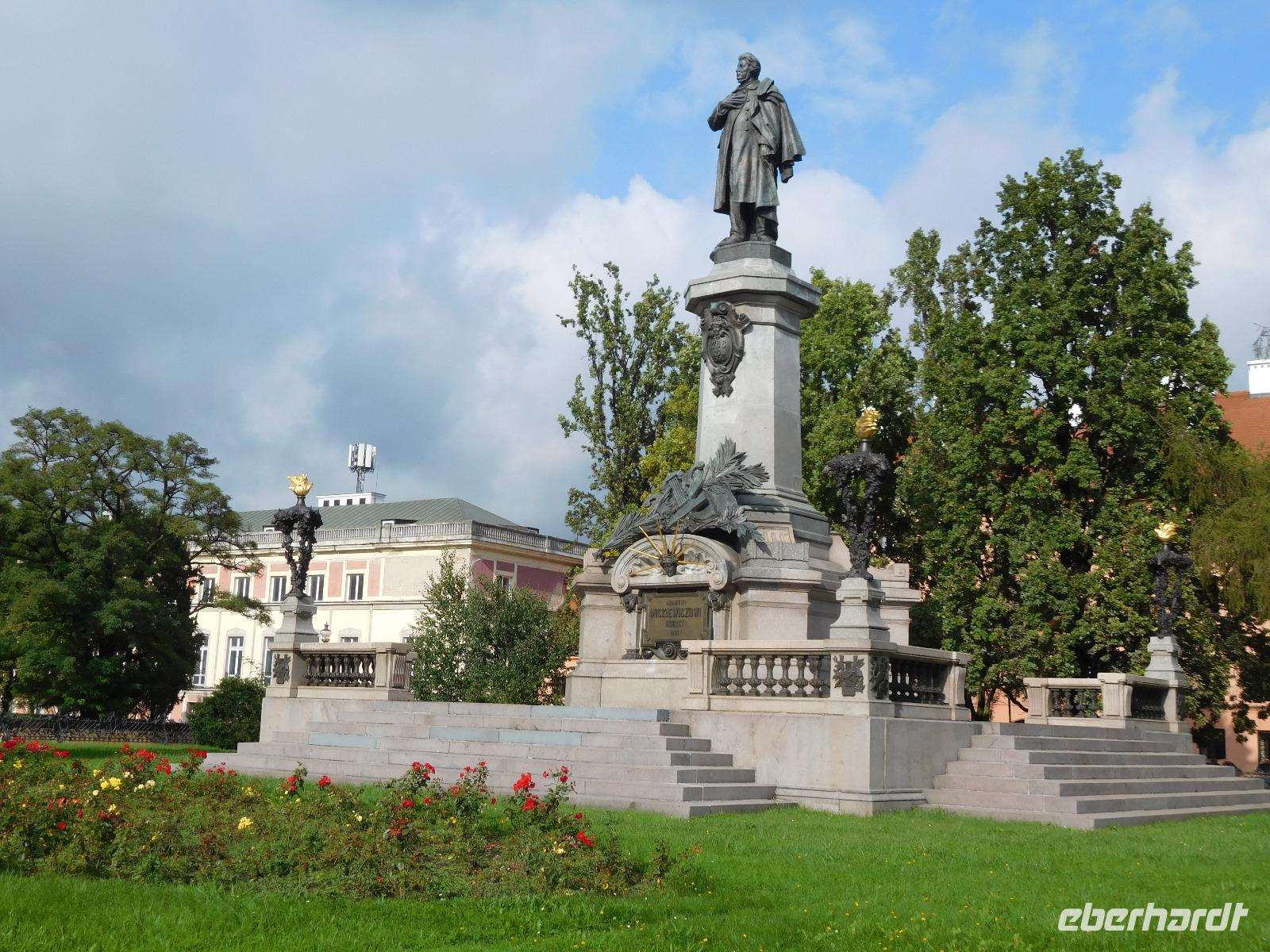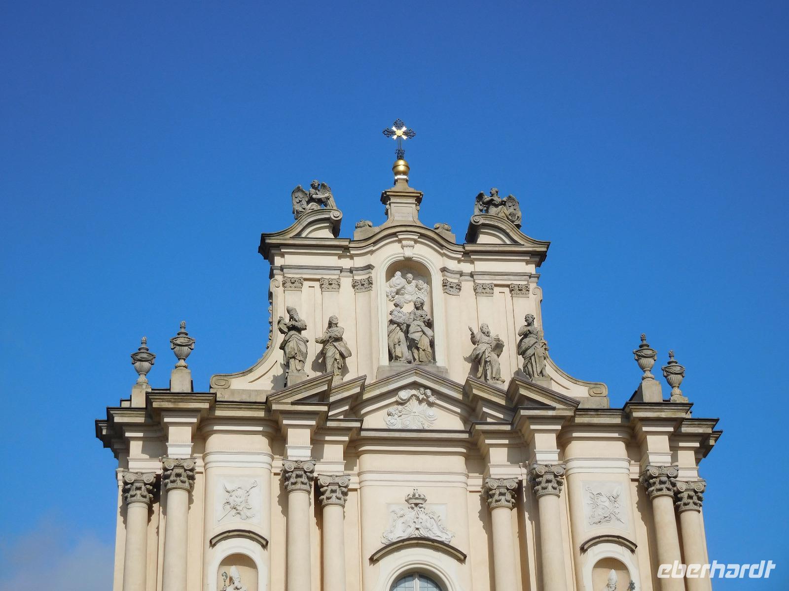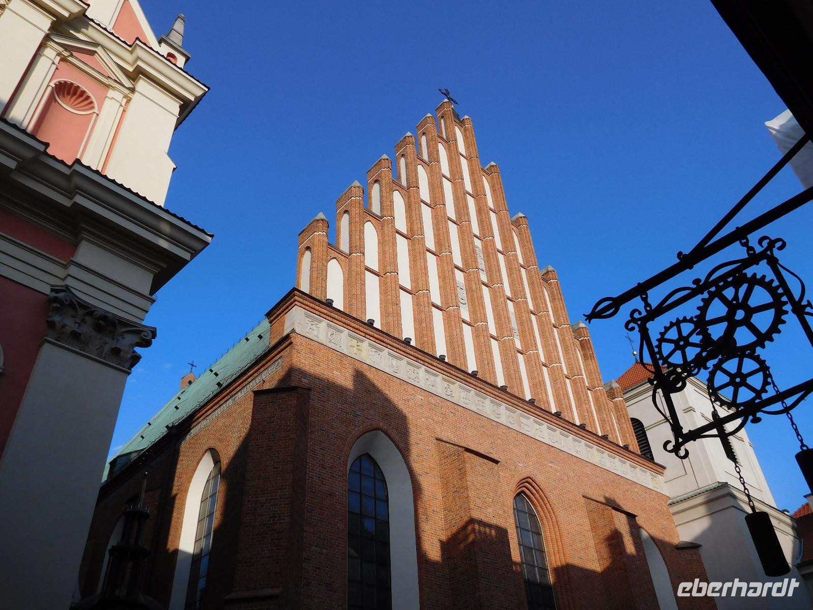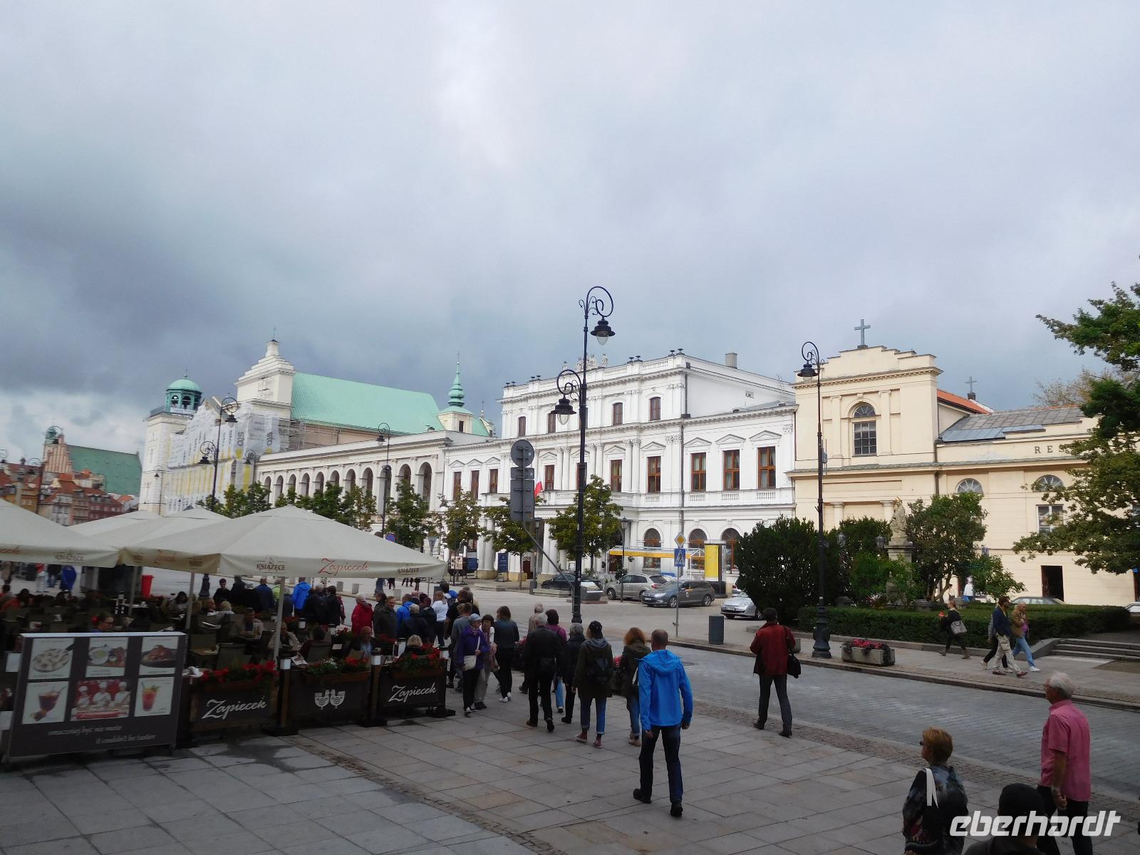 250 Kilometer waren bis Warschau zu fahren, wo wir gleich in unserem fünf Sterne aufweisenden Hotel zwischen sächsischem Park und Altstadt einchecken konnten. Unsere Führerin Malgorzata wartete bereits und mit ihr gingen wir die alte Krönungsstraße entlang zur Altstadt. Gleich beim Hotel steht die klassizistische Kirche der Lutheraner, die mit ihrer hohen Kuppel an französischen Vorbildern lehnt. Dann sahen wir zunächst die Kirche der Schwestern der Heimsuchung Mariä, die als die schönste von Warschau gilt. Wunderbarerweise blieb sie im Krieg unzerstört. In der Nähe dann die Kreuzkirche mit dem Herz von Frederyk Chopin und schon ist man am Rand der Altstadt, die nach dem Zweiten Weltkrieg komplett neu aufgebaut werden musste. Vor dem Schloss steht wieder die Sigismundsäule aus dem Jahr 1633, das erste singuläre Denkmal Polens zu Ehren König Sigmund III. Wasa. Im Schloss kann man wieder die 23 Veduten von Canaletto bewundern. Die Kathedrale ist eine schlichte Backsteinhalle, während die daneben stehende Jesuitenkirche barocke Pracht verkörpert. Über den altstädtischen Markt mit seinen doppelt abgetreppten Dächern, die das rückwärtig angesetzte Treppenhaus beleuchten, ging es durch neu aufgebaute Wehrmauern und Barbakane in die Neustadt. Hier ist gerade das Geburtshaus der Maria Sklodowska, besser bekannt als Madame Curie, restauriert worden. Der Dichter E.T.A. Hoffmann war zu Beginn des 19. Jahrhunderts preußischer Beamter in Warschau und lebte im Haus „Zum Samson". Auf dem neustädtischen Markt verabschiedete sich unsere Führerin und individuell verbrachte man die Stunden bis zum gemeinsamen Abendessen im Hotel.