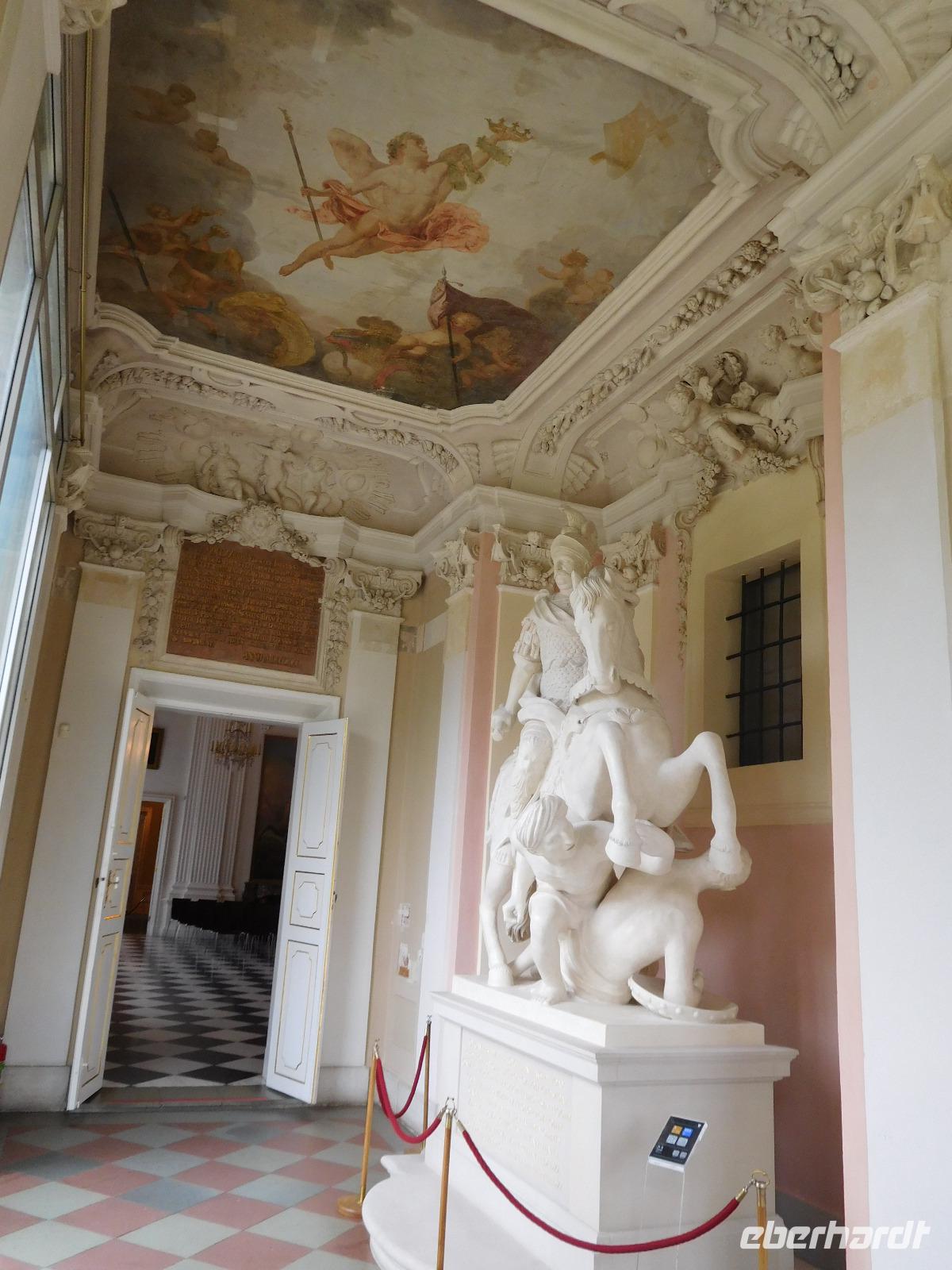 Malgorzata holte uns zeitig ab und per Bus ging es rund um die Altstadt vorbei am Kulturpalast durch das diplomatische Viertel. Abschließend stiegen wir am Lazienskipark aus und besichtigten das Sommerschloß des letzten polnischen Königs Stanislaw August II. Poniatowski, das inmitten idyllisch angelegter Teiche aus einem ehemaligen Badehaus entstand. Für den Neffen und designierten König Josef Poniatowski wurde bis 1784 im noch spätbarockem Stil das Mysliwiecki- Schlösschen errichtet. Leider fiel dieser hoffnungsvolle Fürst in der Völkerschlacht. Weiter fuhren wir ein Stückchen nach außerhalb zum Schloß Wilanow, der Sommerresidenz König Jan III. Sobieski, des Helden von Wien, der dort 1683 vernichtend ein Türkenheer schlug. Inmitten eines barocken Gartenreichs steht das von Italienern gebaute Schloß, dessen Ausmalung eine Huldigung an die aus Frankreich stammende Königin darstellt. Nach Sobieski residierten hier die beiden Wettiner, von denen denn auch sehr gute Porträts den Ballsaal schmücken. Am Nachmittag ging jeder seinen Neigungen nach und ein Teil der Gruppe ging mit dem Reiseleiter in das Nationalmuseum, wo neben den berühmten nubischen Fresken von Faras die herausragenden sakralen Kunstschätze aus Schlesien und den ehemals preußischen Provinzen zu bewundern sind.