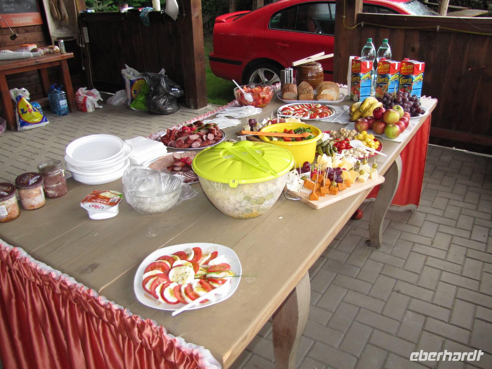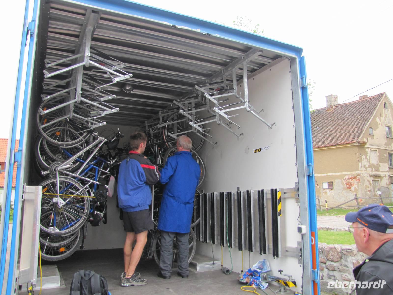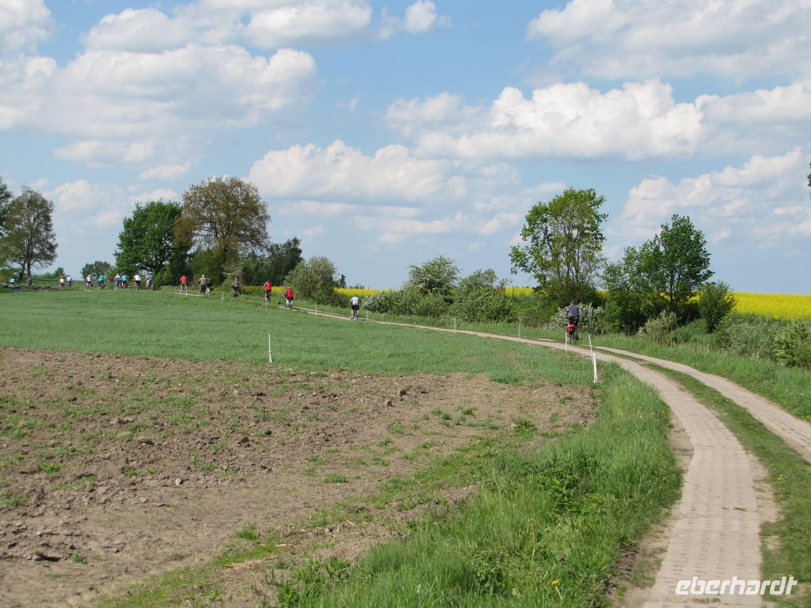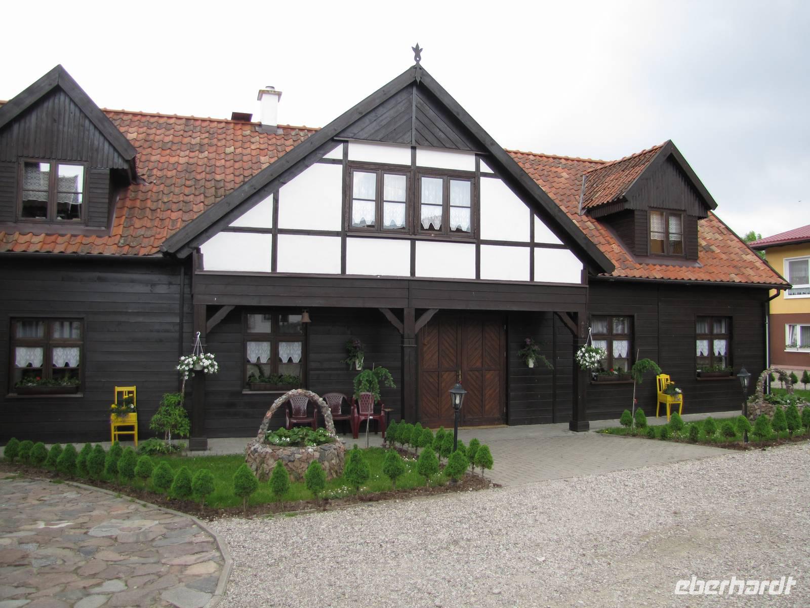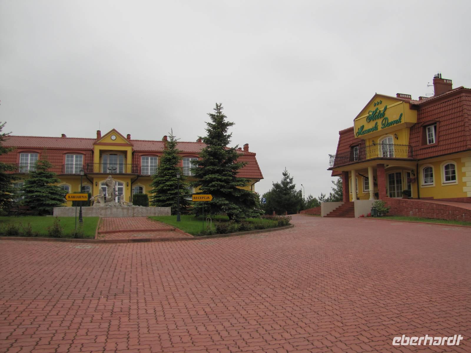 Heute hieß es Abschied nehmen von unserem schönen Hotel in Sensburg. Wir fuhren mit den Rädern vom Hotel aus, über Seehesten nach Zondern. Unterwegs meinte es das Wetter noch gut mit uns. Wieder ging es vorbei an blühenden Rapsfeldern und einsamen verträumten Ortschaften. In Zondern angekommen besichtigten wir ein Bauernmuseum und trafen eine waschechte Ostpreußin, auch Christel genannt. Sie erzählte alte Geschichten von früher auf Ihre eigene Art du Weiße. Es war ein großer Spaß! Als es dann nach dem Museumsrundgang auch noch ein Überraschungspicknick gab, sah man die Freude bei jedem im Gesicht geschrieben. Leckere Salate, Wurst, Käse, Obst wurde uns aufgetaffelt. Es war einfach klasse! Mit vollem Magen fuhren wir weiter in Richtung Nikolaiken. Kurz vor unserem Zielpunkt, dem Hotel Mazurski Dworek kam plötzlich ein heftiger Regenschauer. Zum Glück konnten wir uns auf einer Baustelle unterstellen und 3 Bauarbeitern etwas Gesellschaft leisten. Nach einer halben Stunde Dauerregen war wieder alles vorbei und wir konnten die letzten 2Kilometer zum Hotel weiter fahren. Im Hotel angekommen spritzten wir noch unsere Räder vom Dreck ab und freuten uns auf die heiße Dusche und das Abendessen. Unser Gepäck und Radanhänger wurde aufgrund der Buspanne mit einem Transporter transportiert.